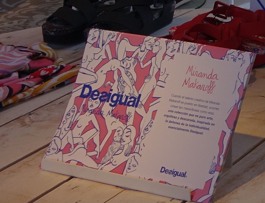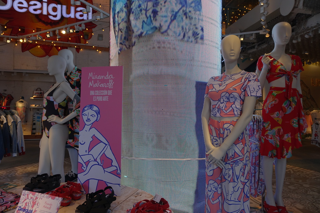 Работы Миранды Макарофф в модном испанском магазине Desigual на площади Каталонии в центре Барселоны. Июнь 2018.