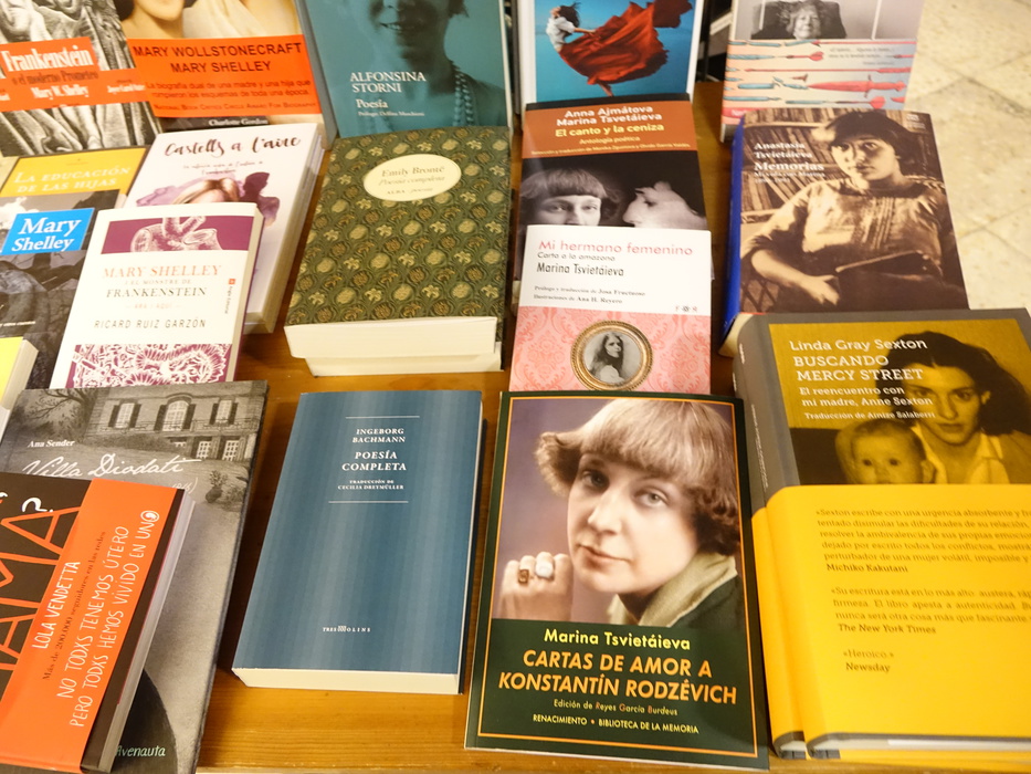 Сфотографировала книги, которые сейчас продаются в магазине. Цветаева в Барселоне больше известна как лесбиянка, чем как поэтесса.