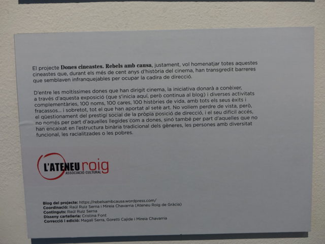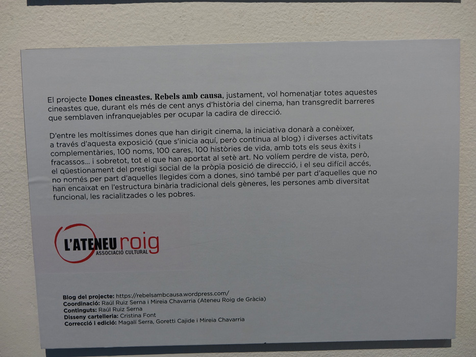 С 15 марта по 5 апреля 2019 года в барселонском Centre Cívic Sagrada Família проходила выставка о 100 женщинах-кинематографистках «Dones cineastes. Rebels amb causa.»
