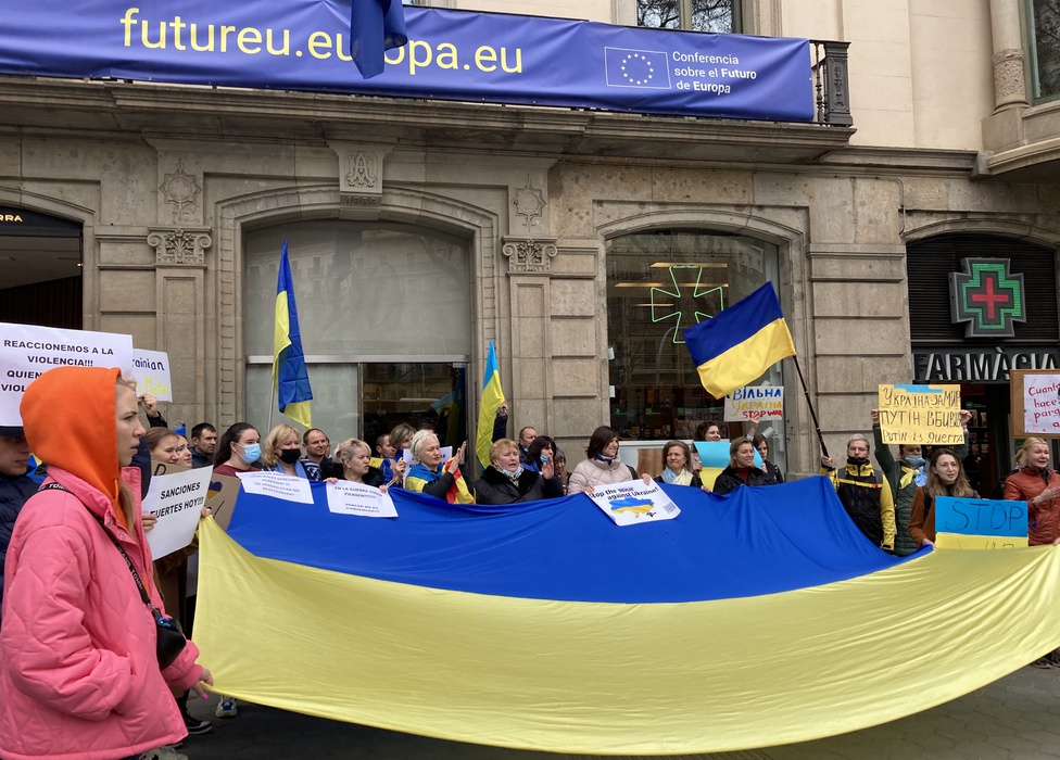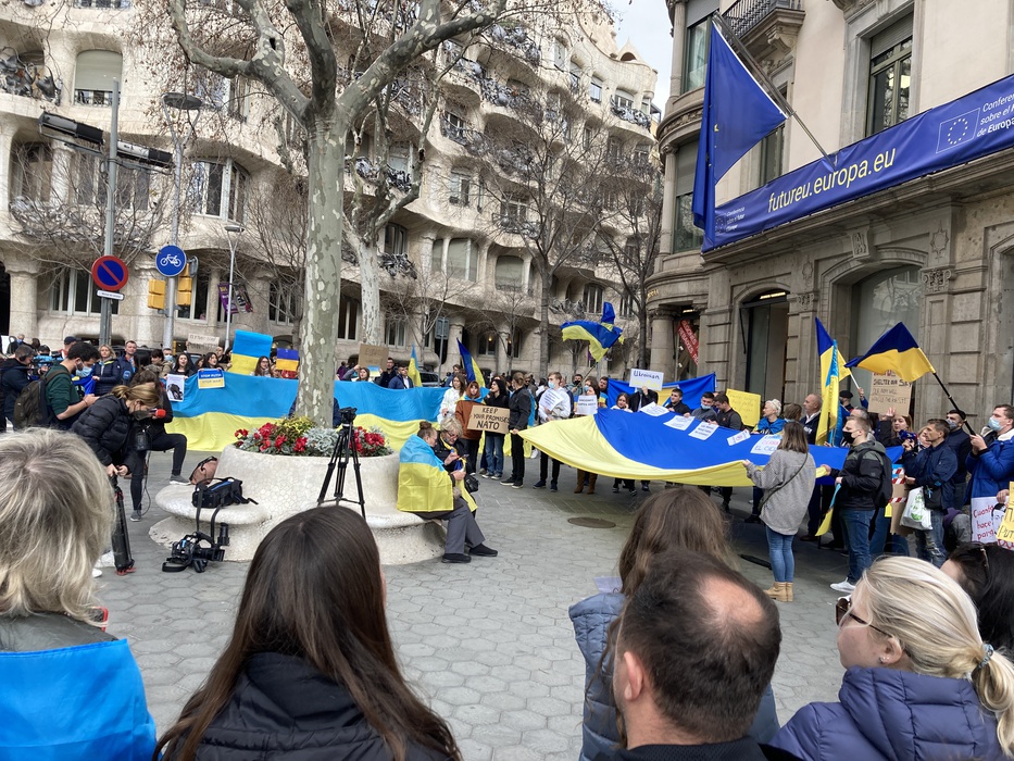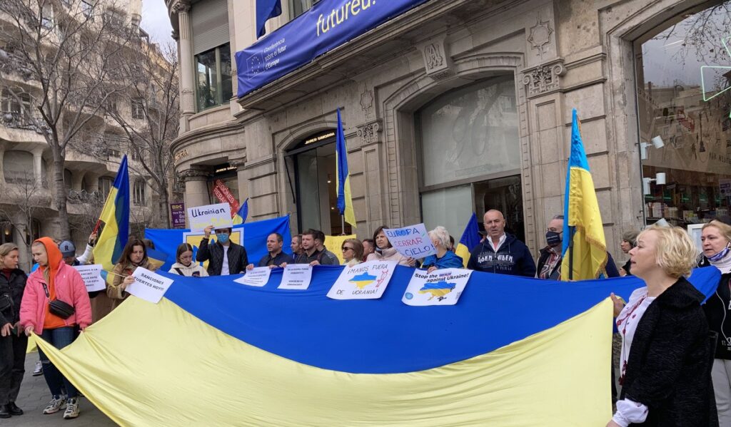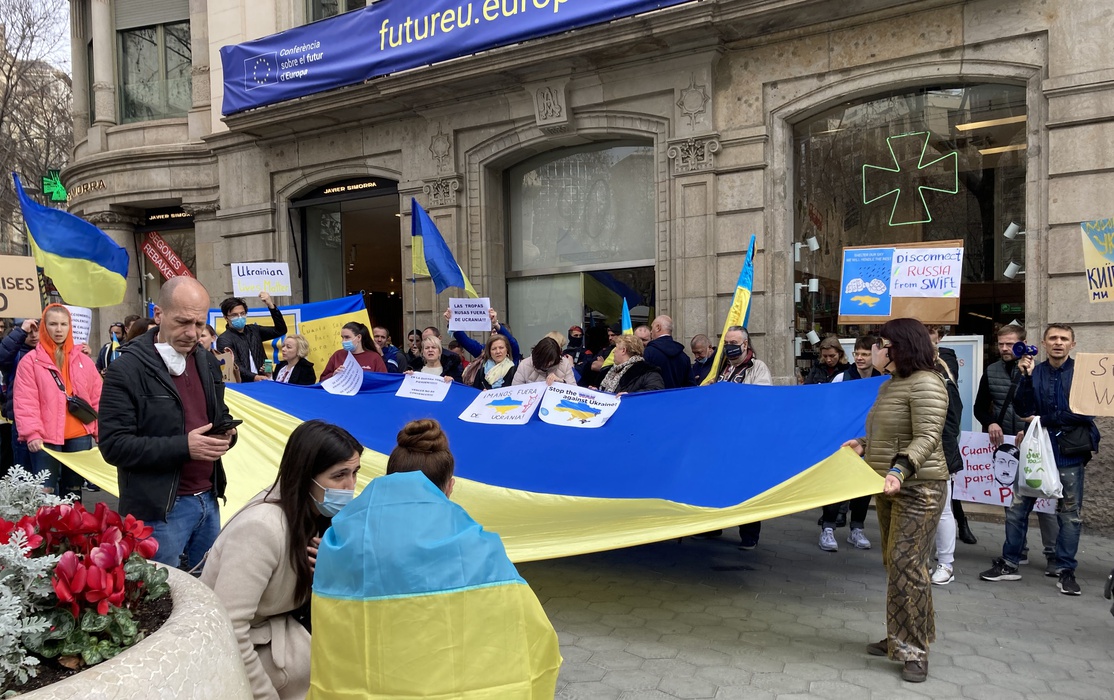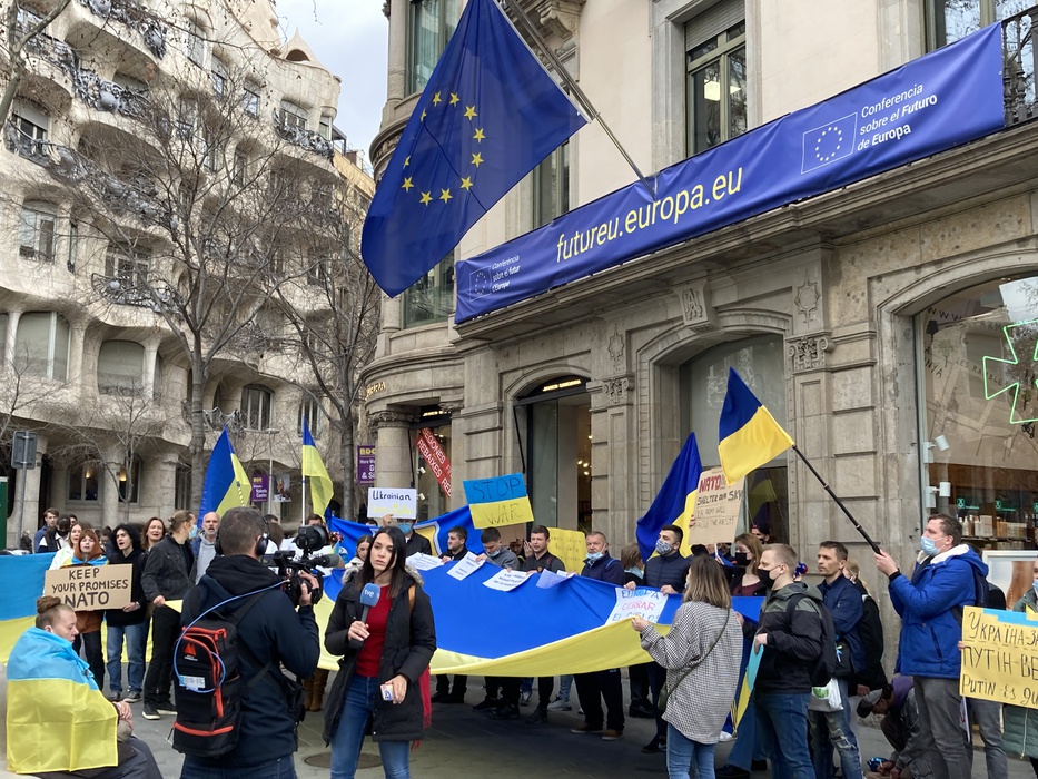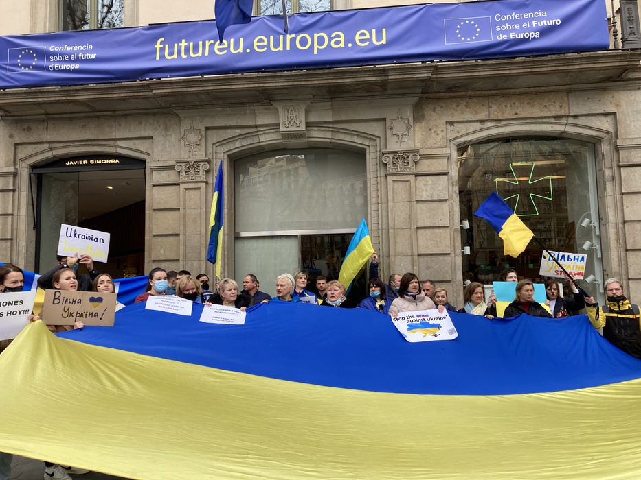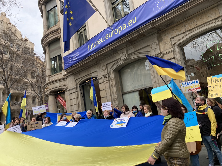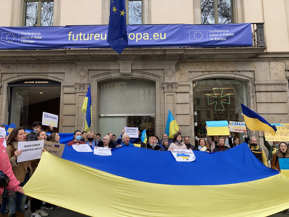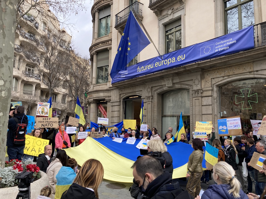 Остановить российскую агрессию против Украины – митинг около офиса Европейского парламента в Барселоне 25.02.2022