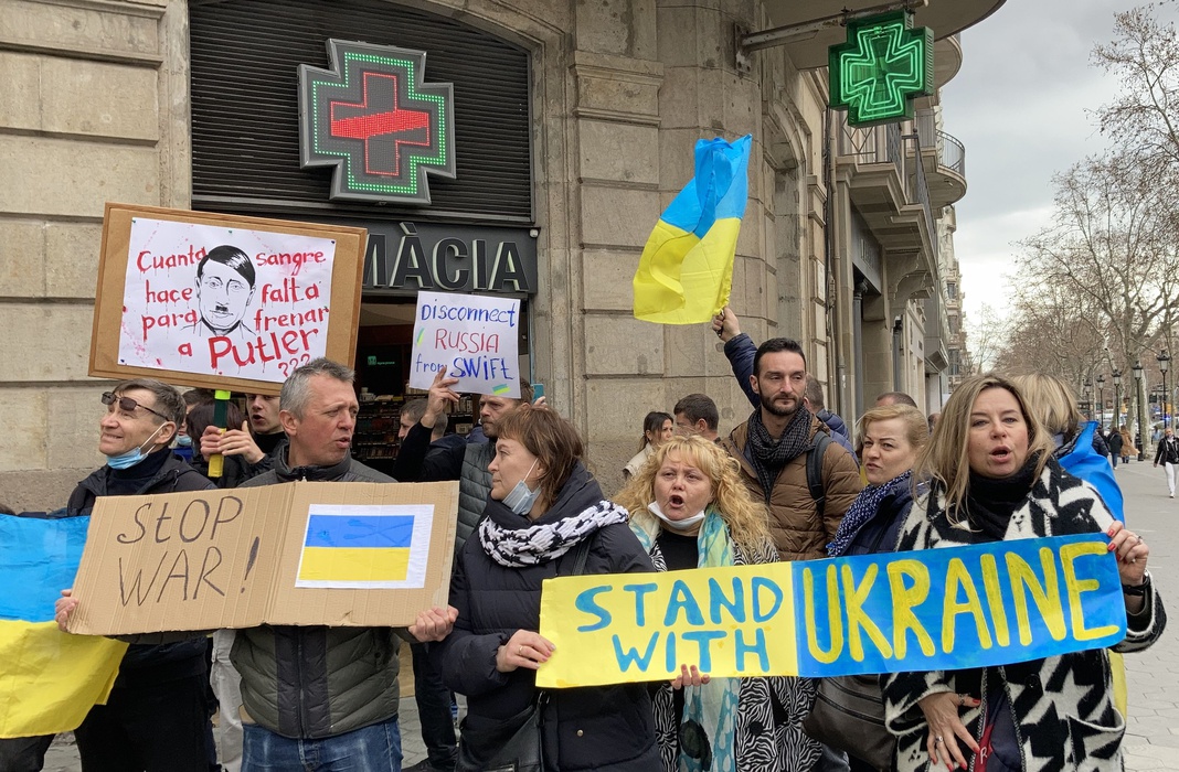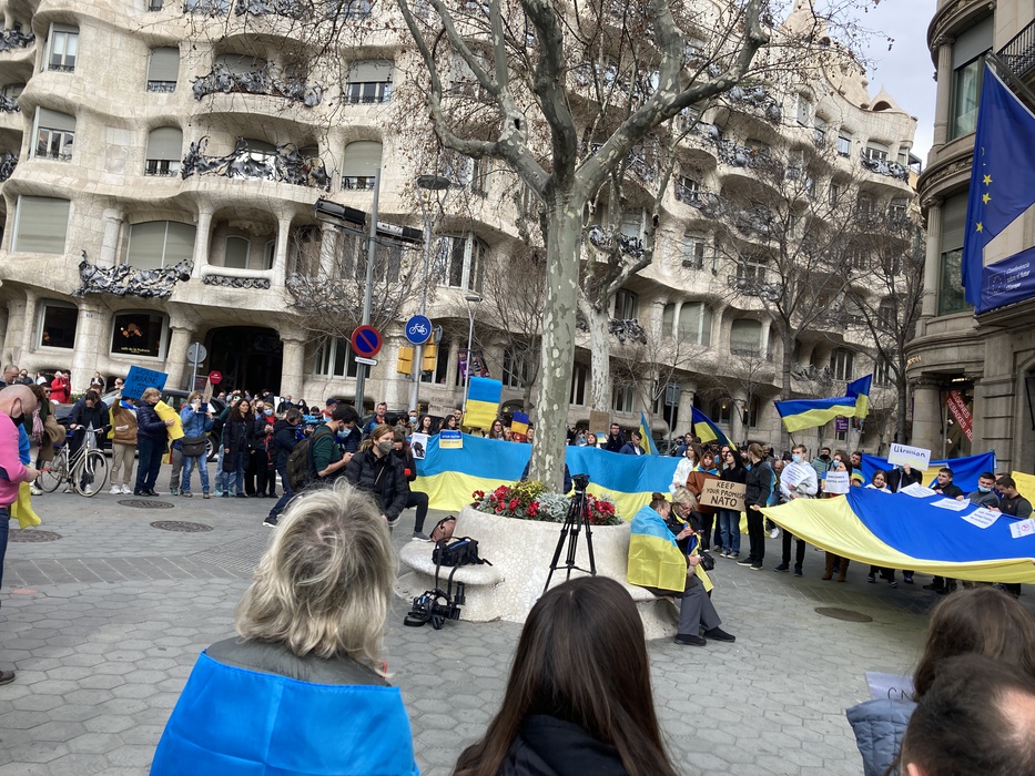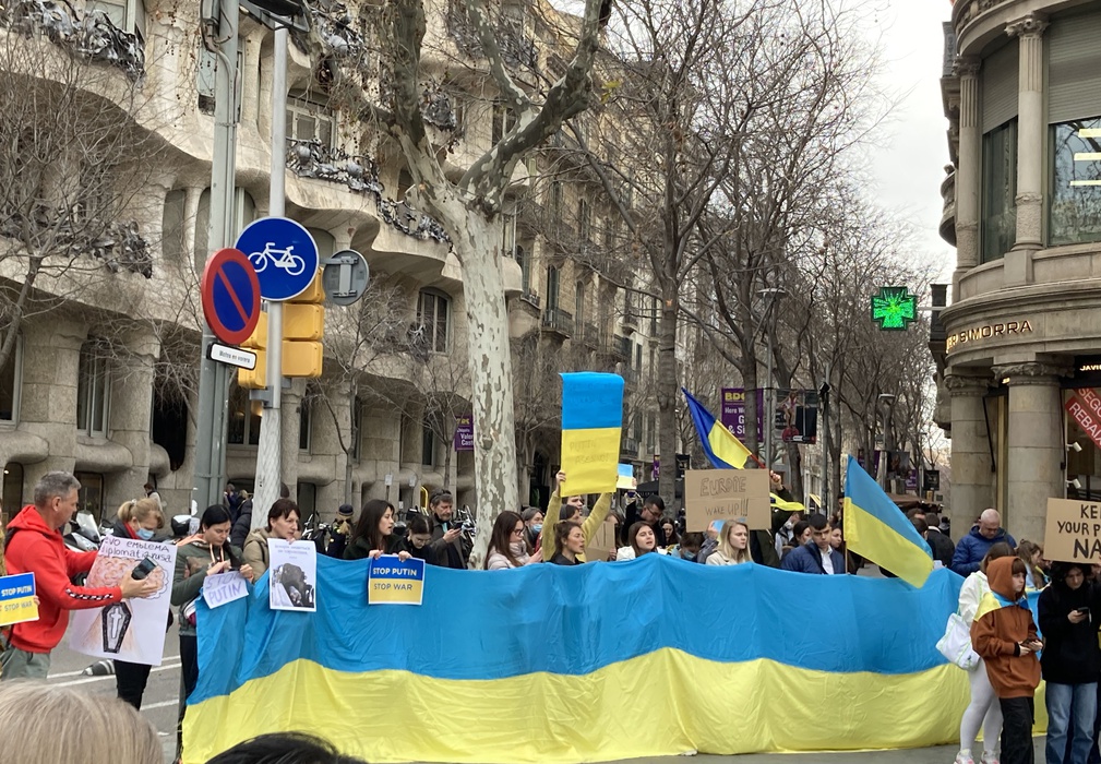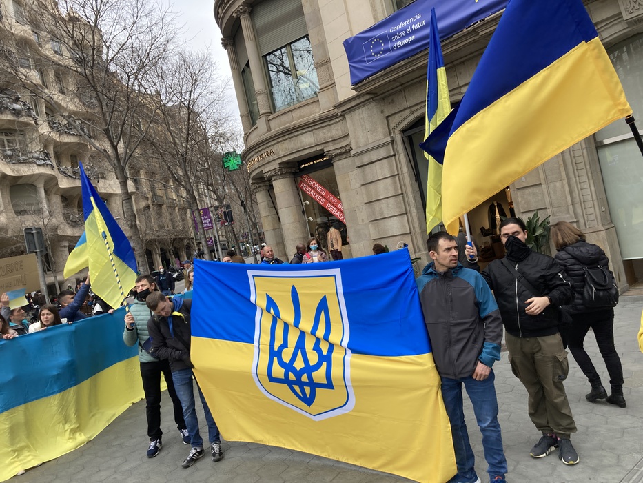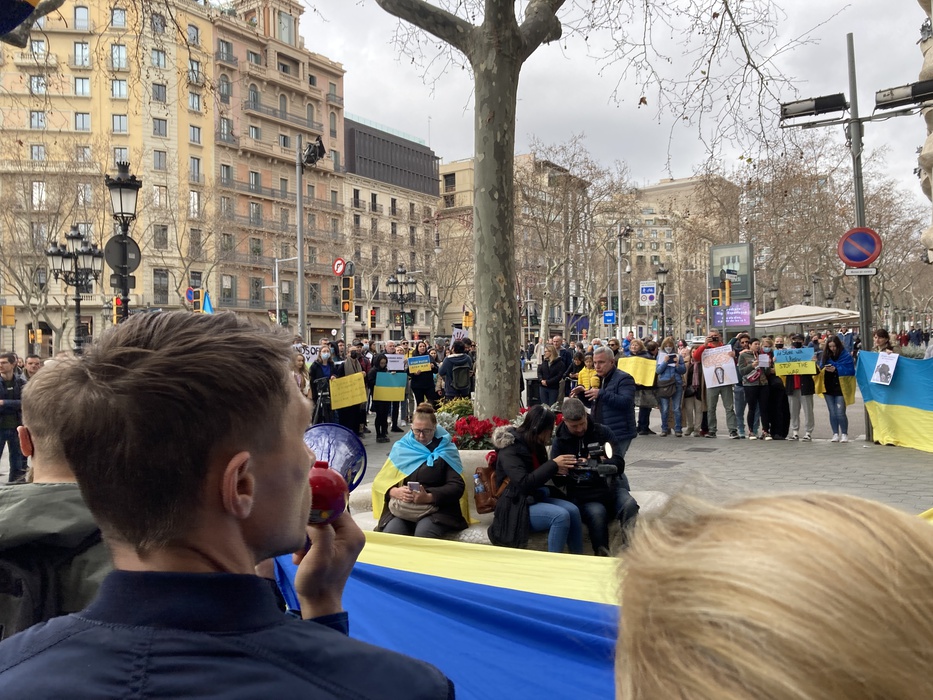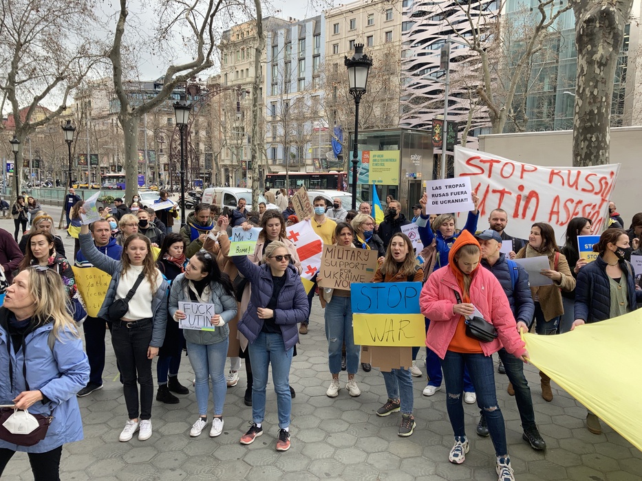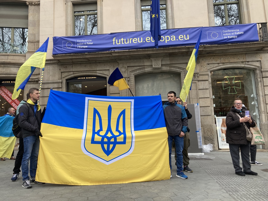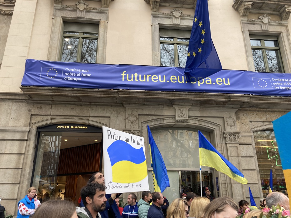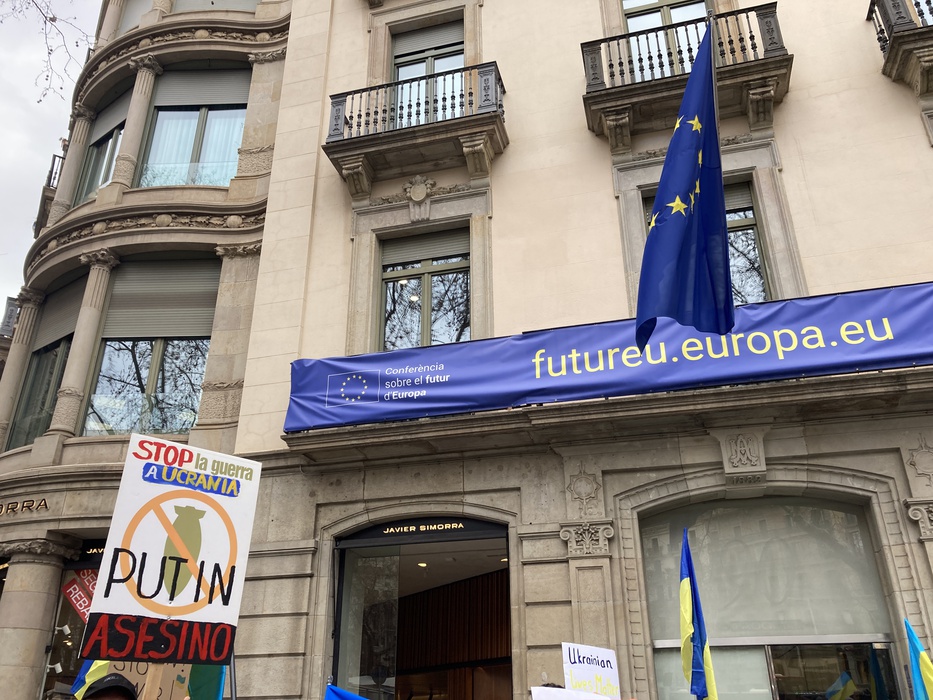 Остановить российскую агрессию против Украины – митинг около офиса Европейского парламента в Барселоне 25.02.2022