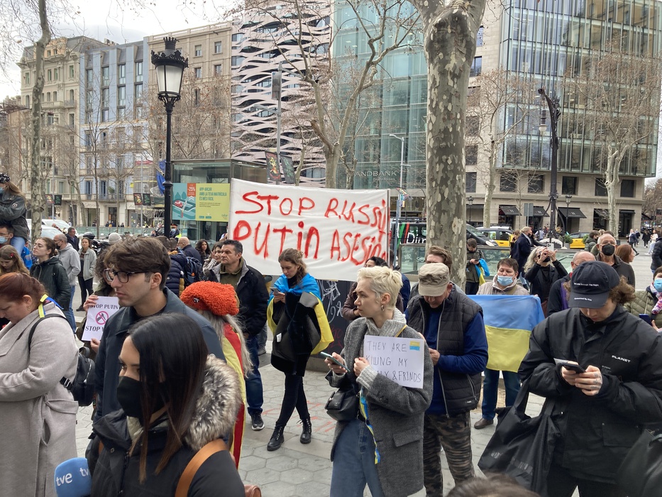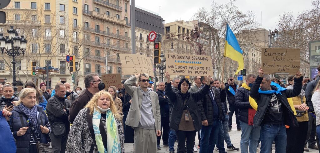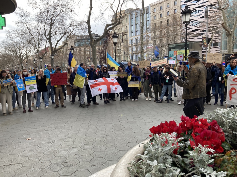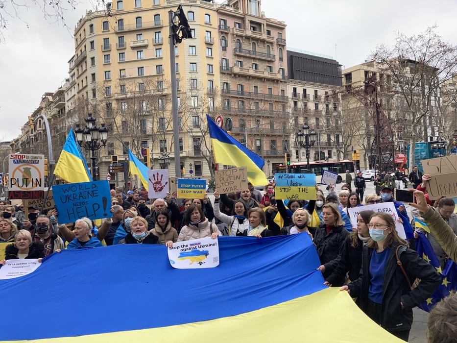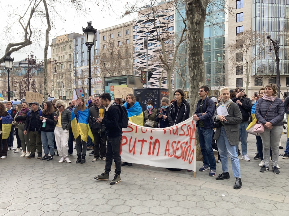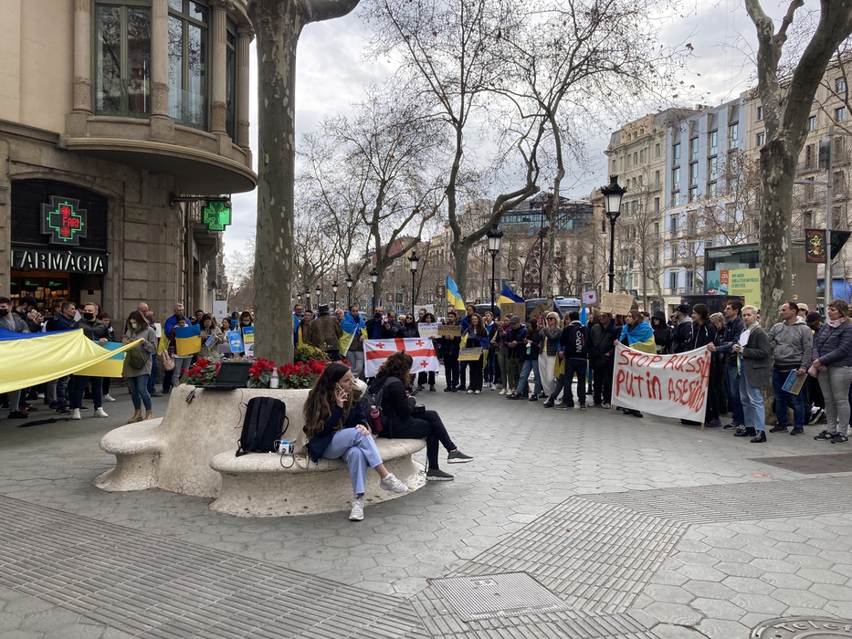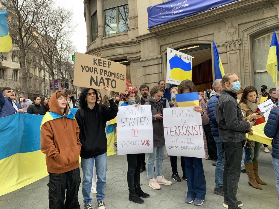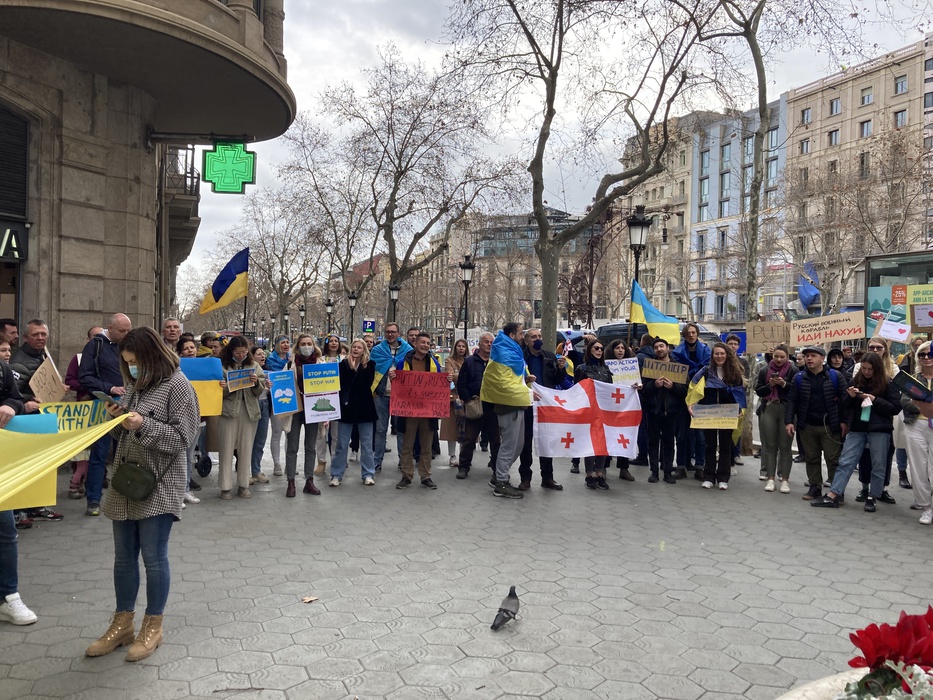 Остановить российскую агрессию против Украины – митинг около офиса Европейского парламента в Барселоне 25.02.2022