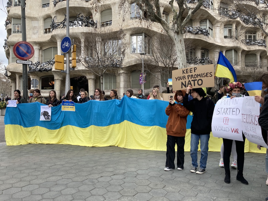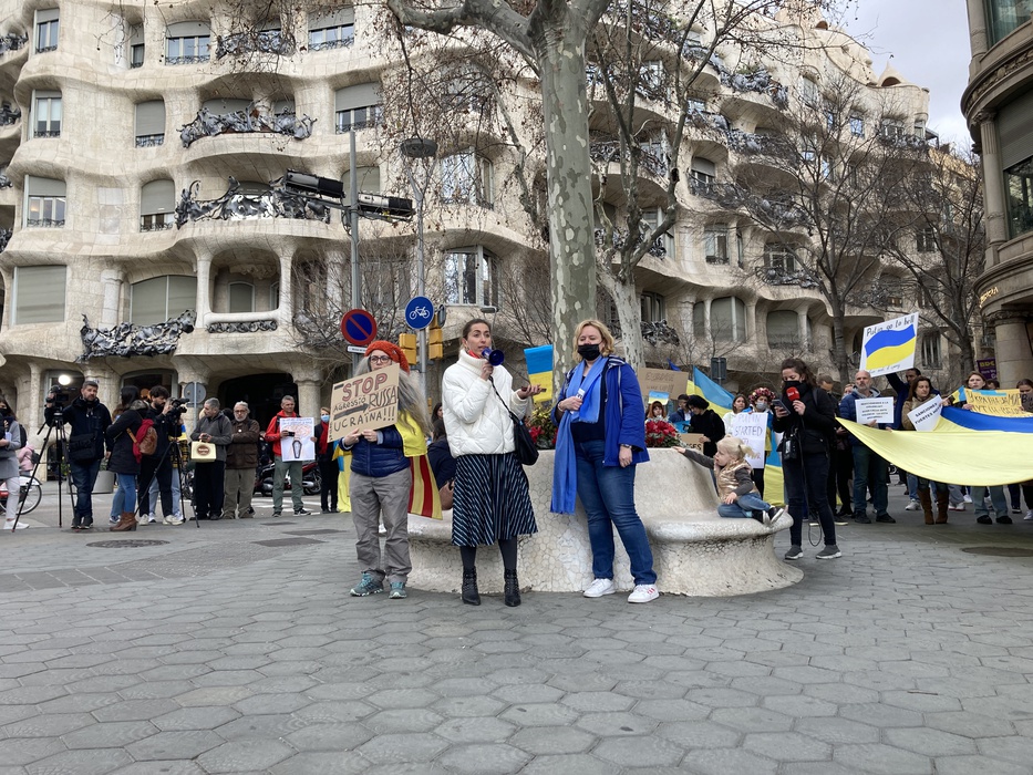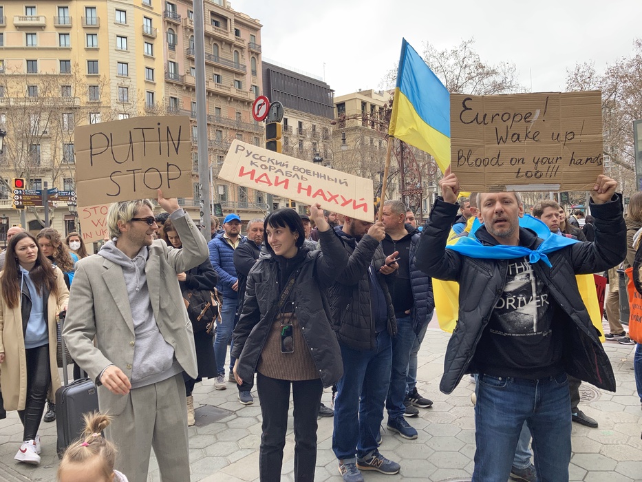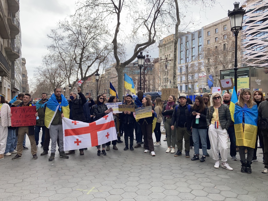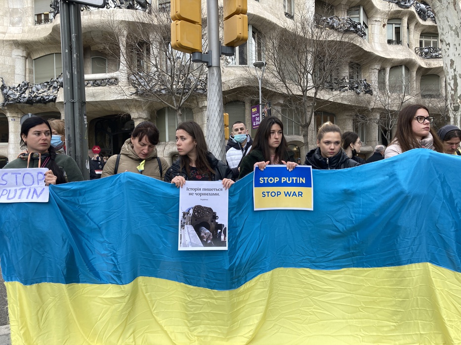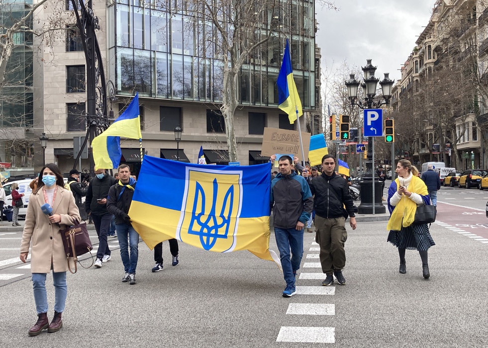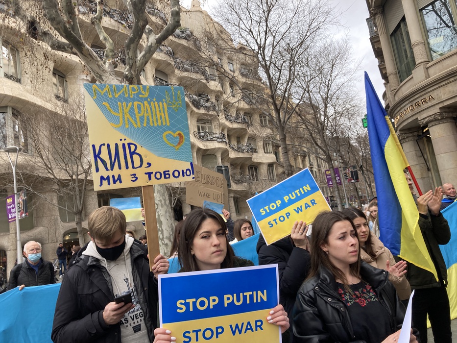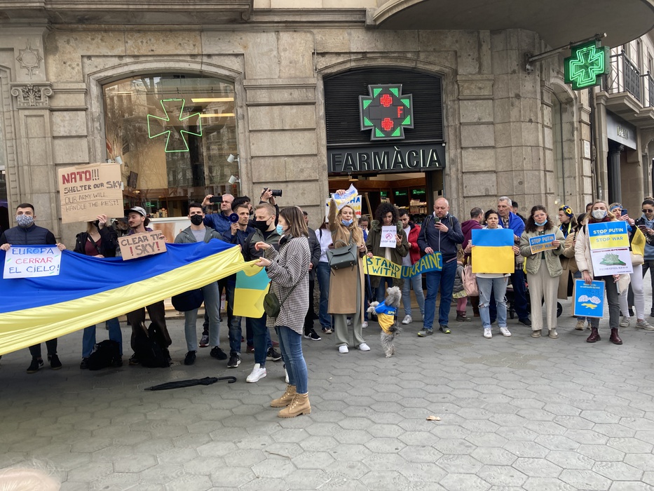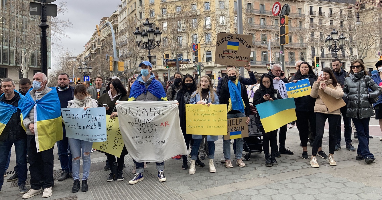 Остановить российскую агрессию против Украины – митинг около офиса Европейского парламента в Барселоне 25.02.2022