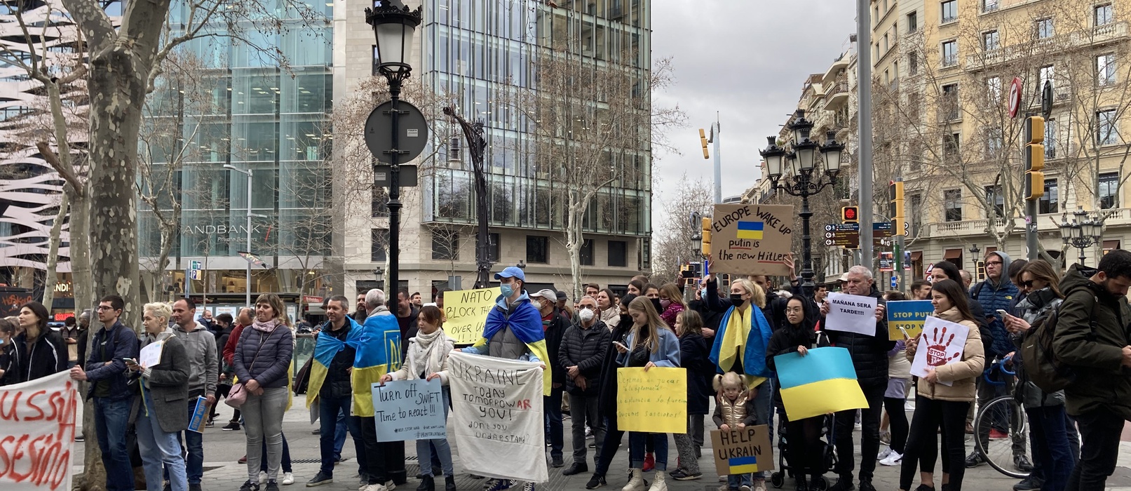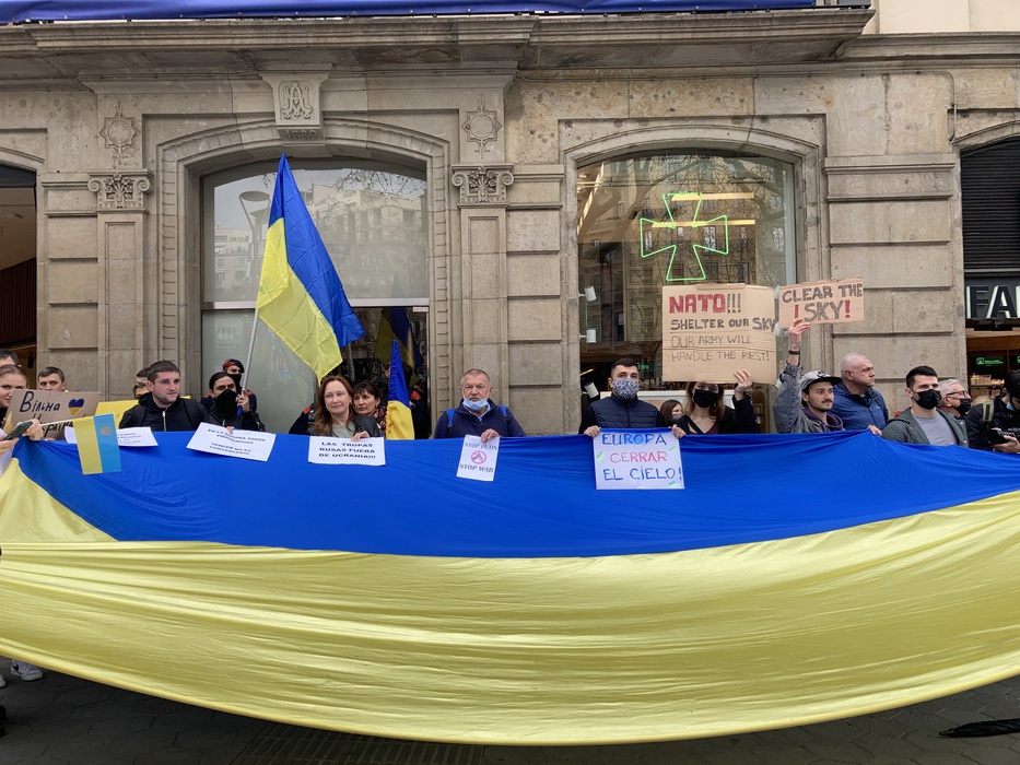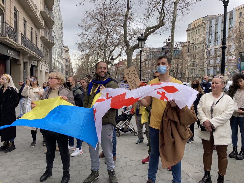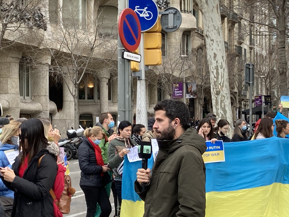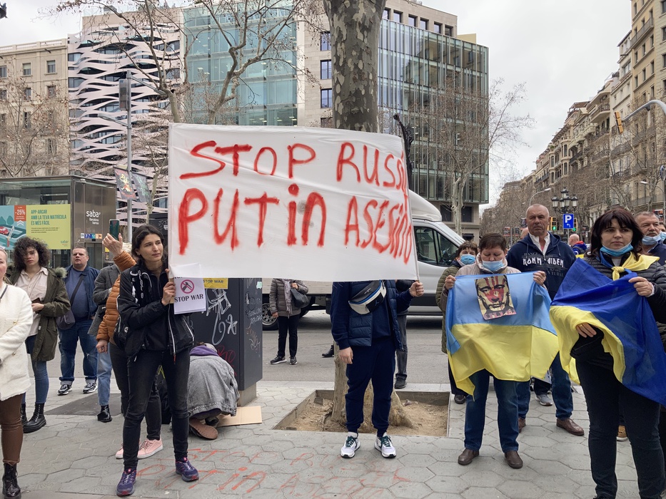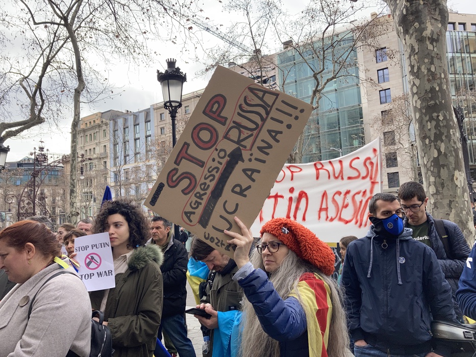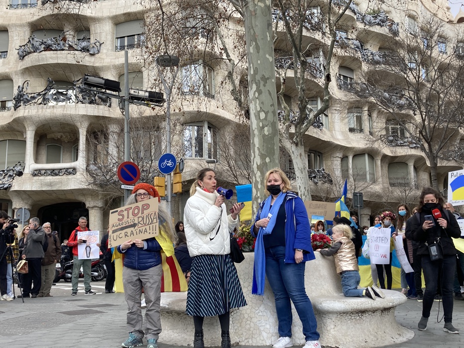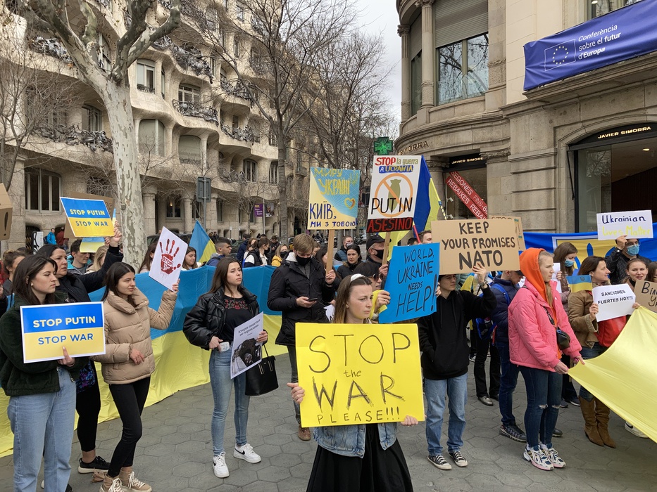 Остановить российскую агрессию против Украины – митинг около офиса Европейского парламента в Барселоне 25.02.2022