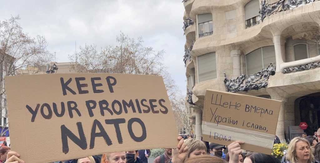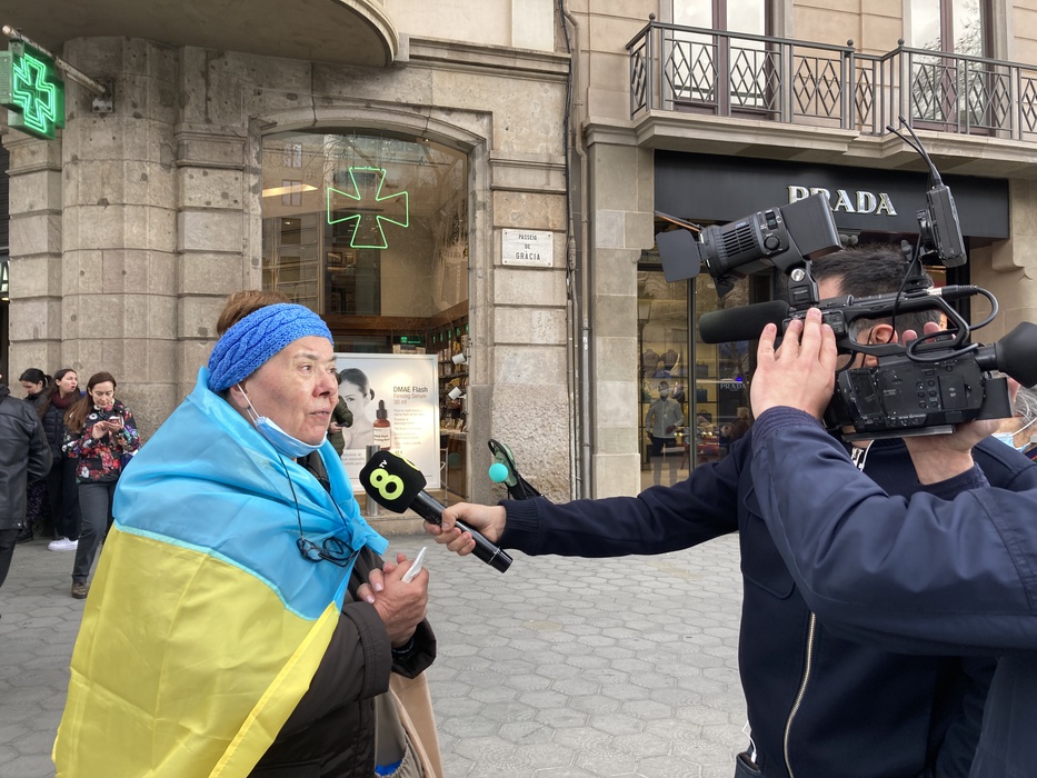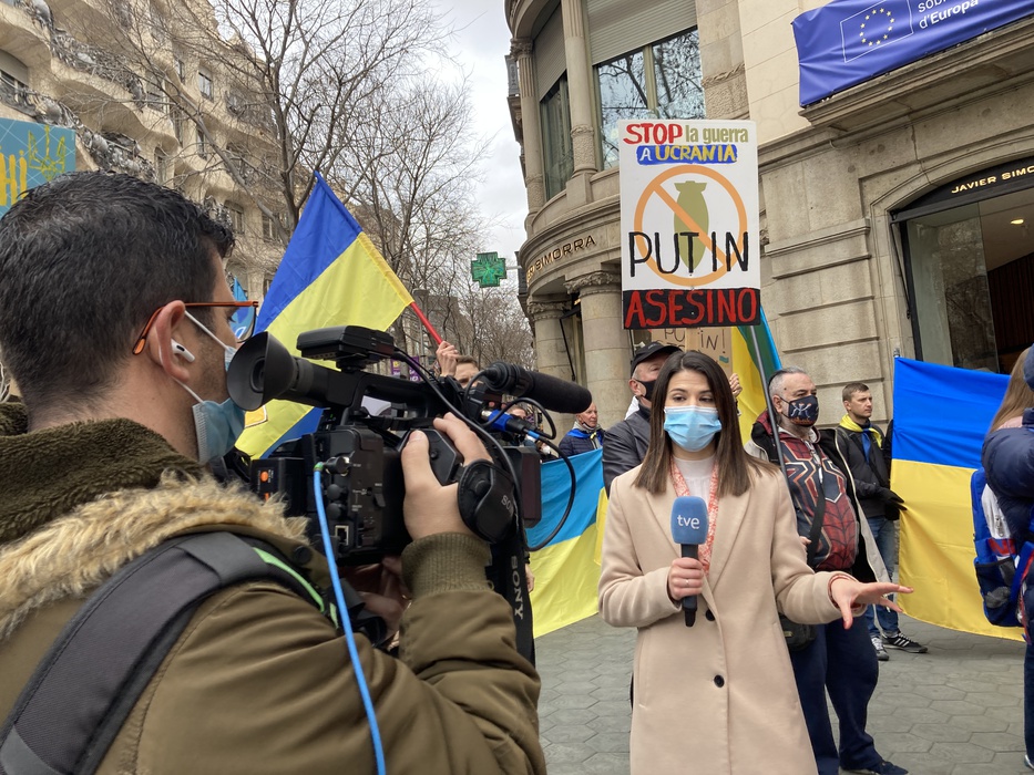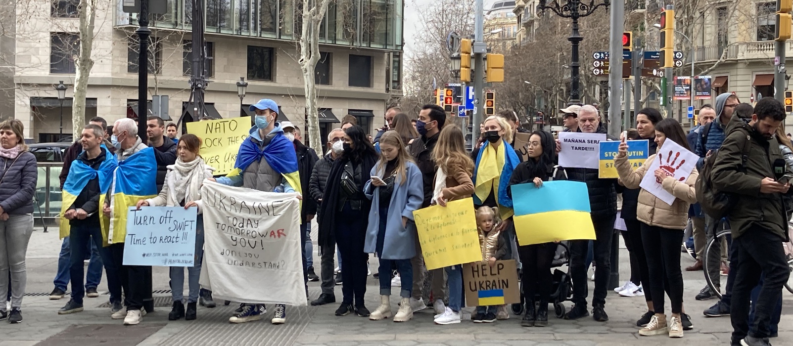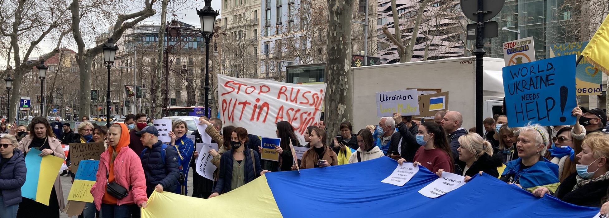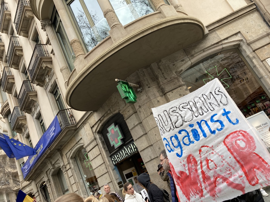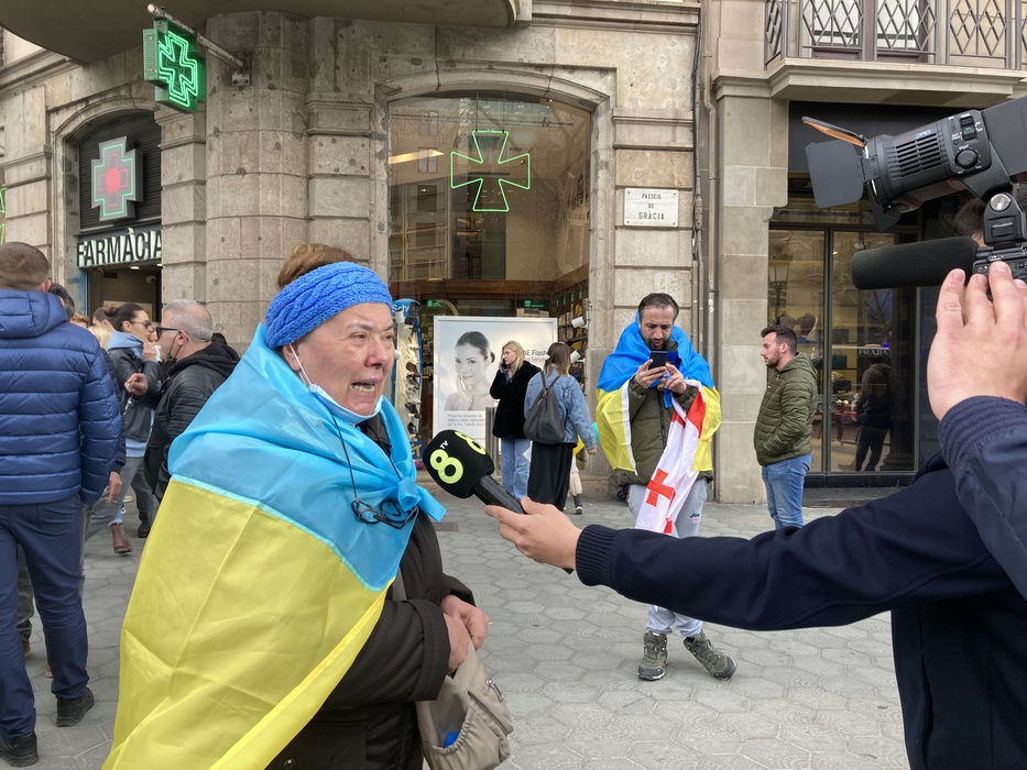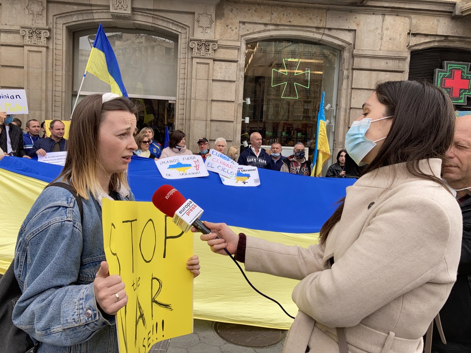 Остановить российскую агрессию против Украины – митинг около офиса Европейского парламента в Барселоне 25.02.2022