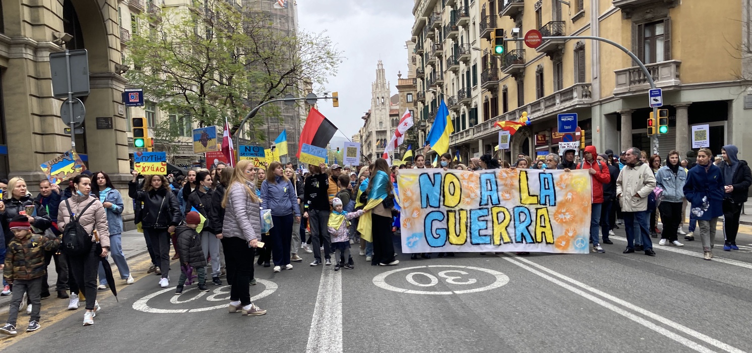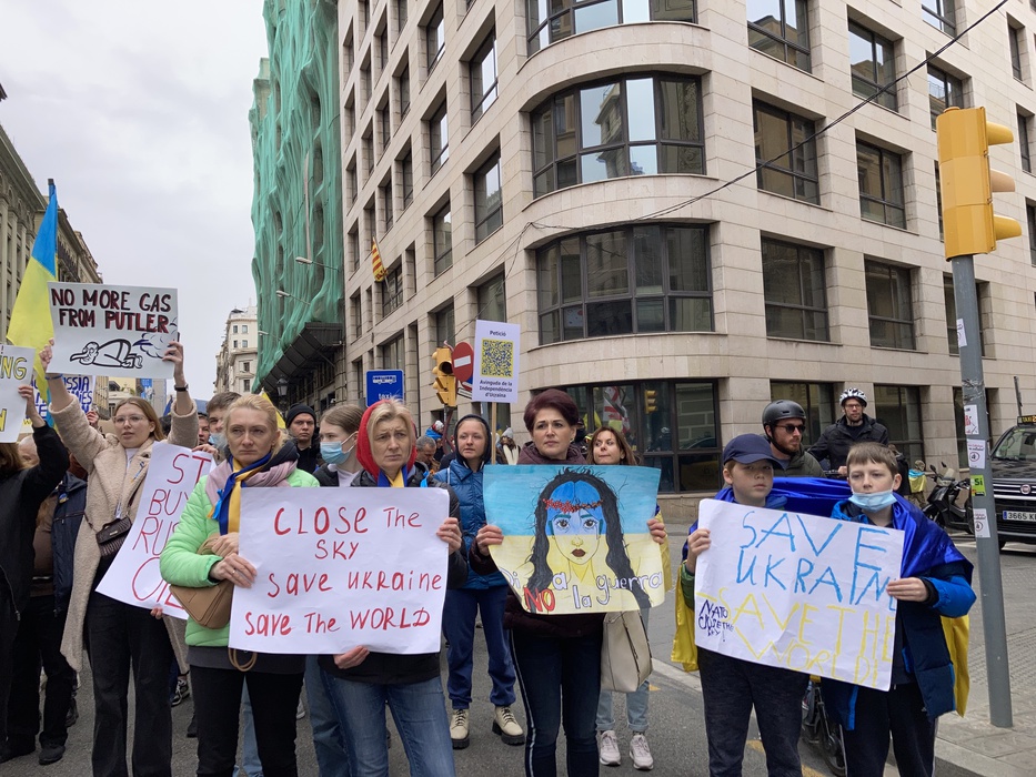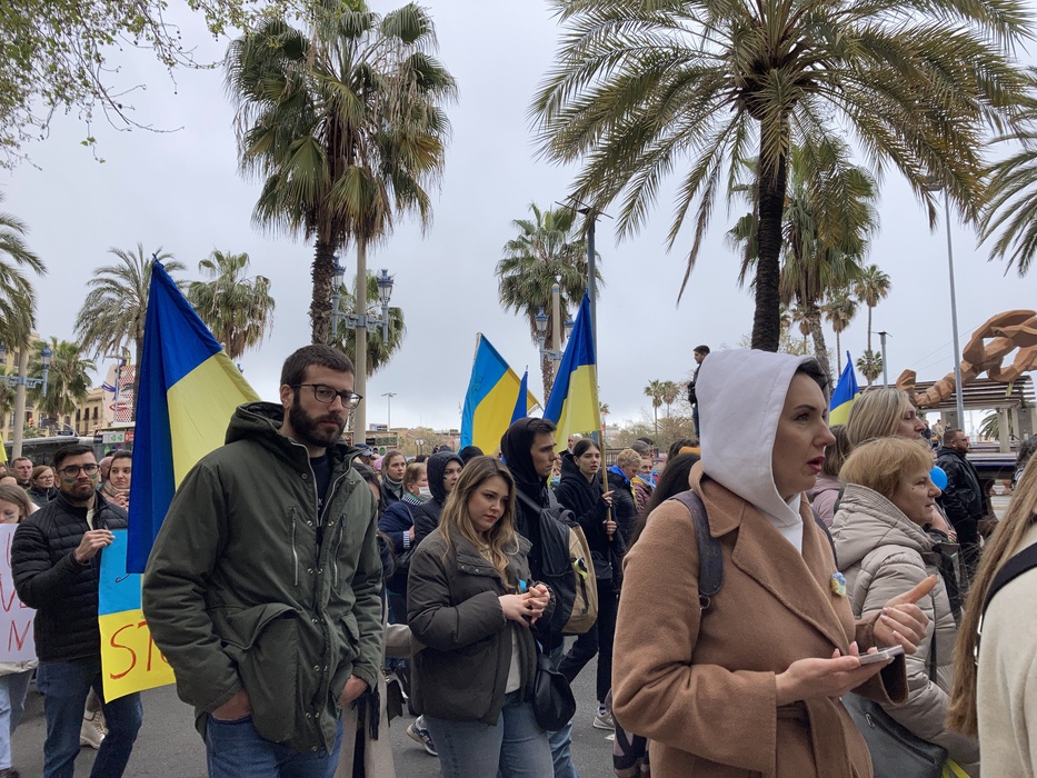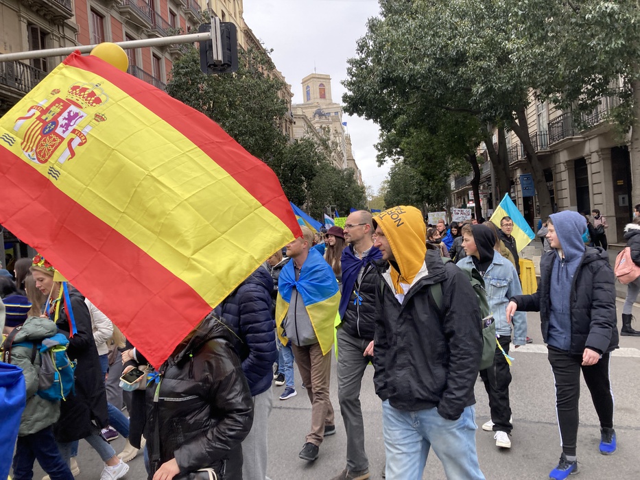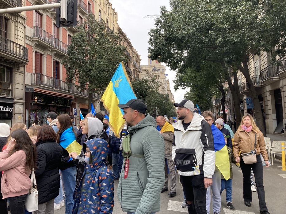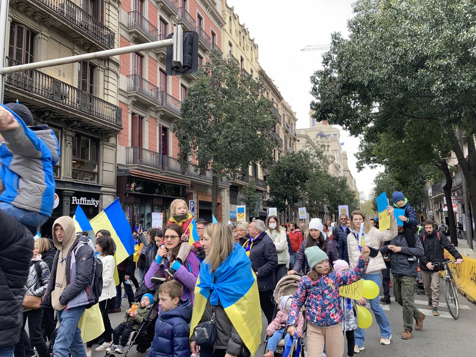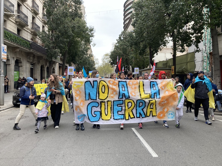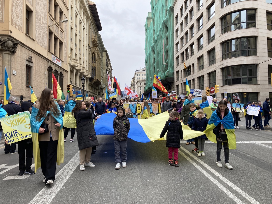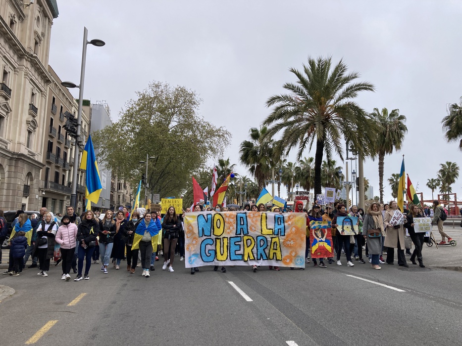 31.4.2022 в Барселоне около 300 человек участвовали в протесте против войны в Украине. Люди стали собираться около 11 часов на площади Каталонии, шествие началось после 12 часов. На Via Laetana шествие возглавили дети, которые несли украинский флаг. Были плакаты и листовки о петиции — о переименовании проспекта, на котором располагается российское консульство в Барселоне, в проспект имени Независимости Украины.