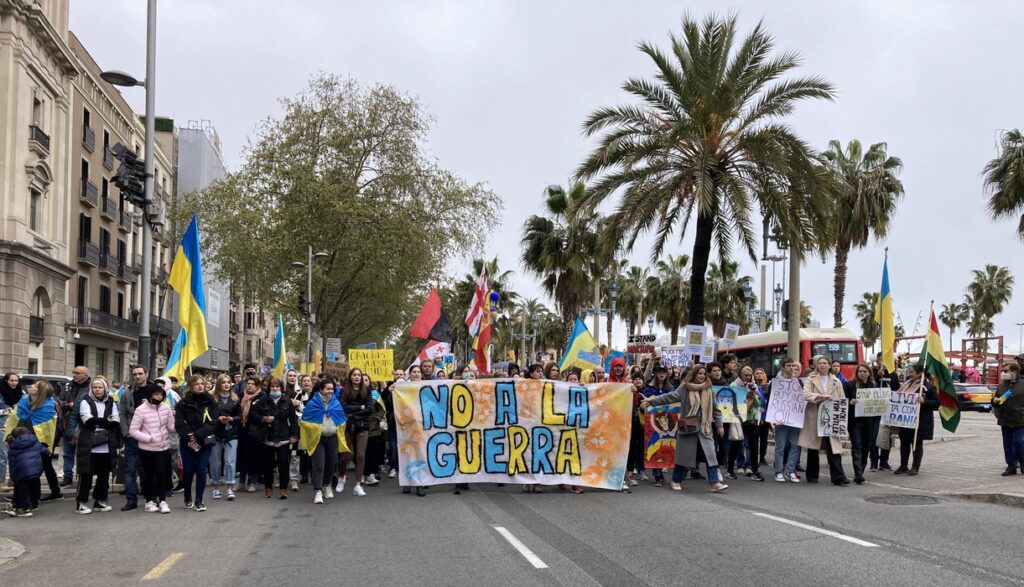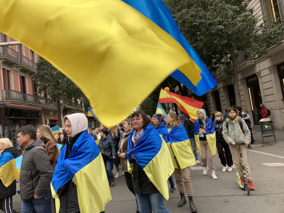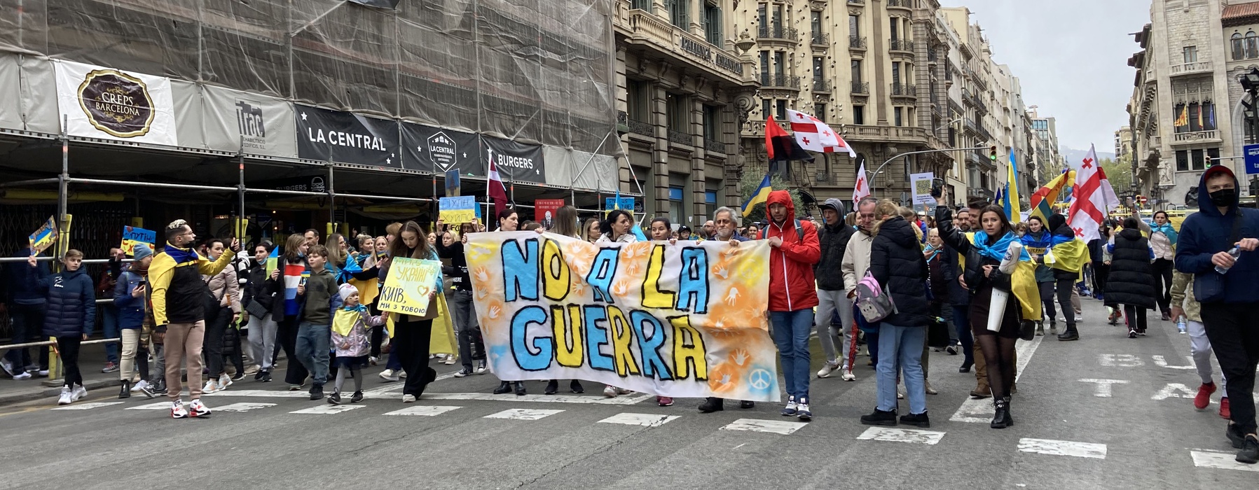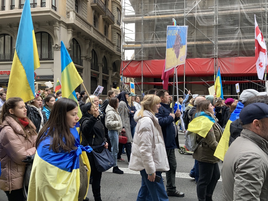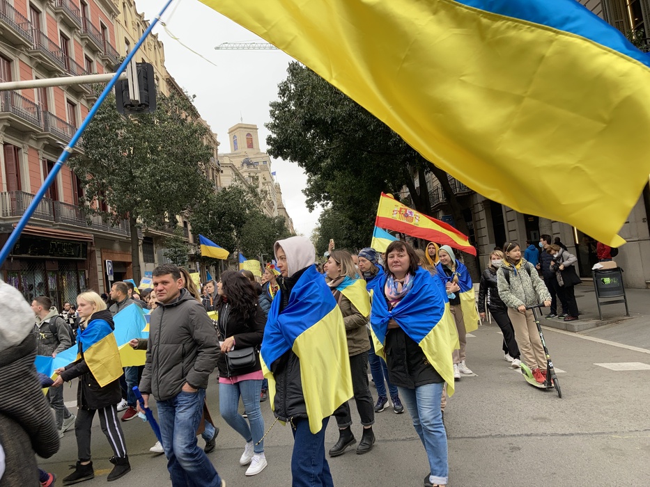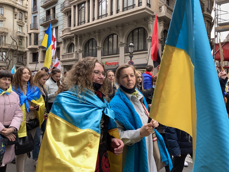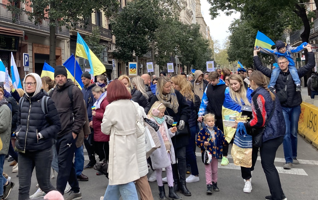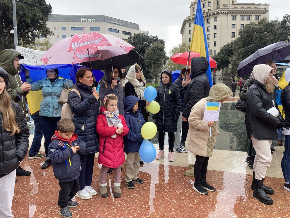 31.4.2022 в Барселоне около 300 человек участвовали в протесте против войны в Украине. Люди стали собираться около 11 часов на площади Каталонии, шествие началось после 12 часов. На Via Laetana шествие возглавили дети, которые несли украинский флаг. Были плакаты и листовки о петиции — о переименовании проспекта, на котором располагается российское консульство в Барселоне, в проспект имени Независимости Украины.