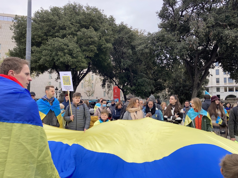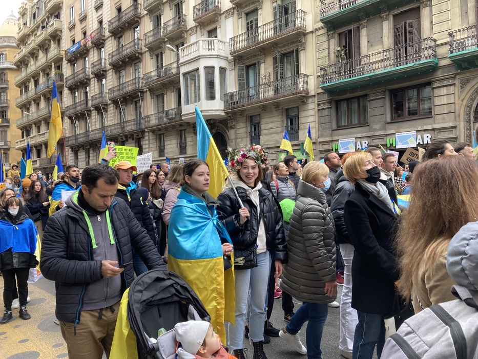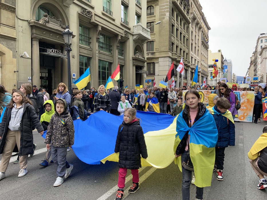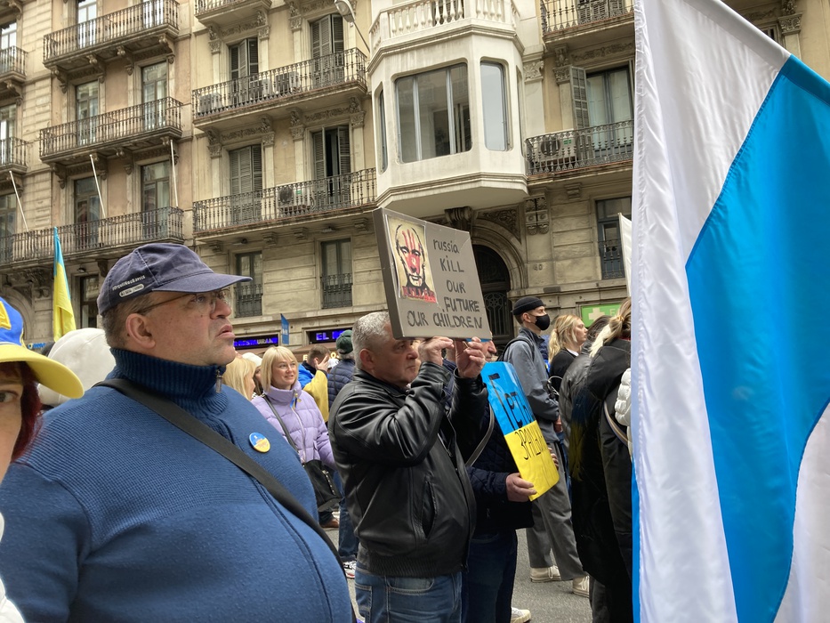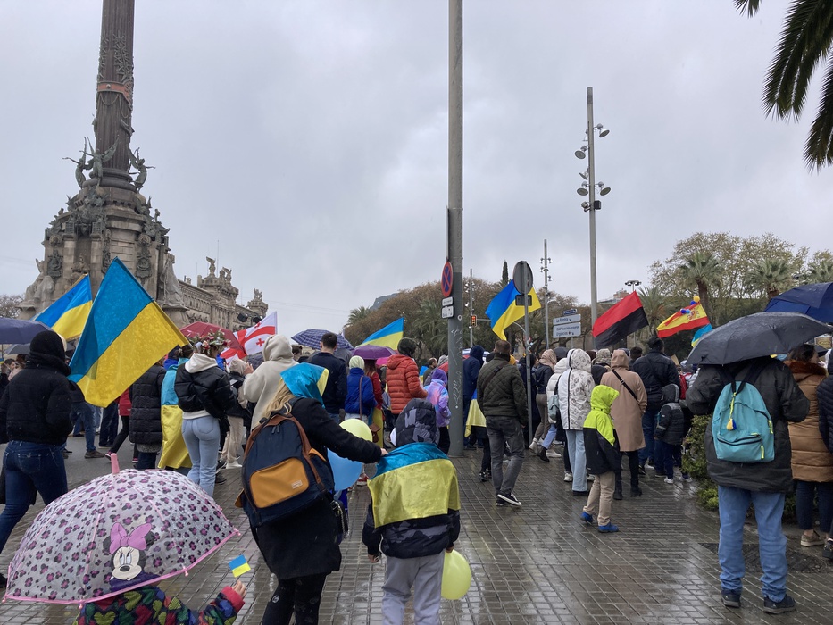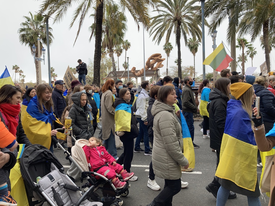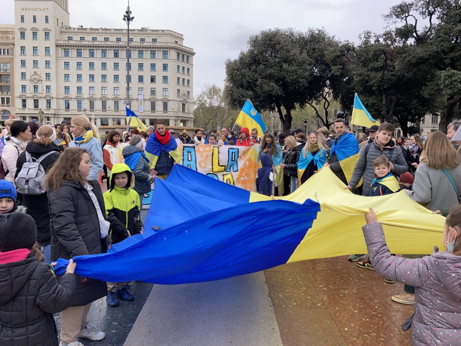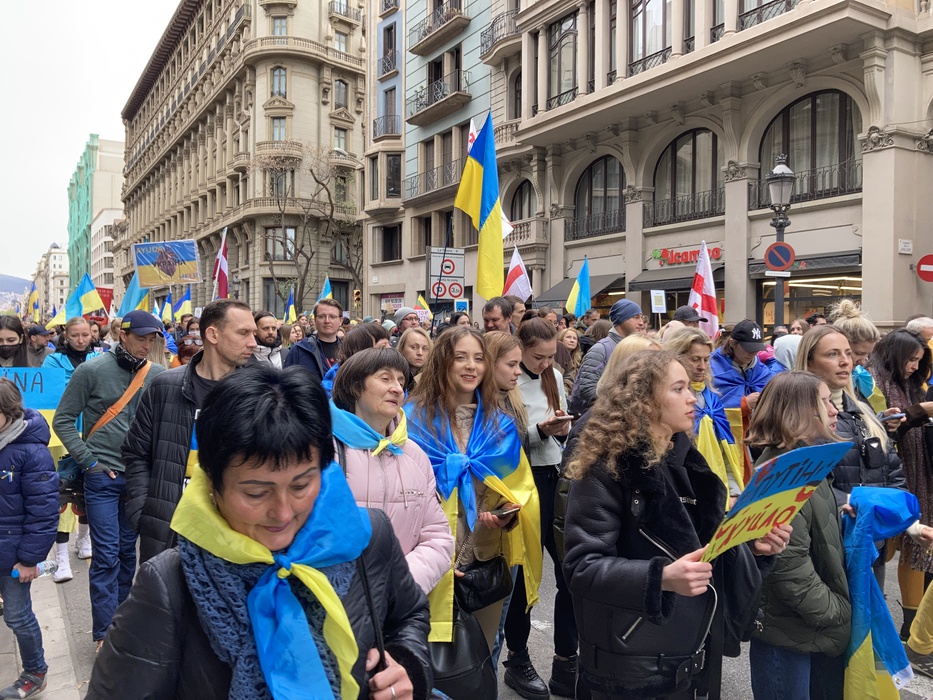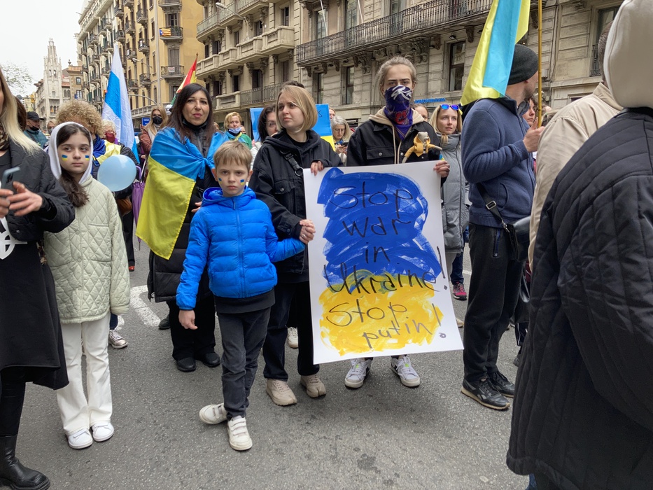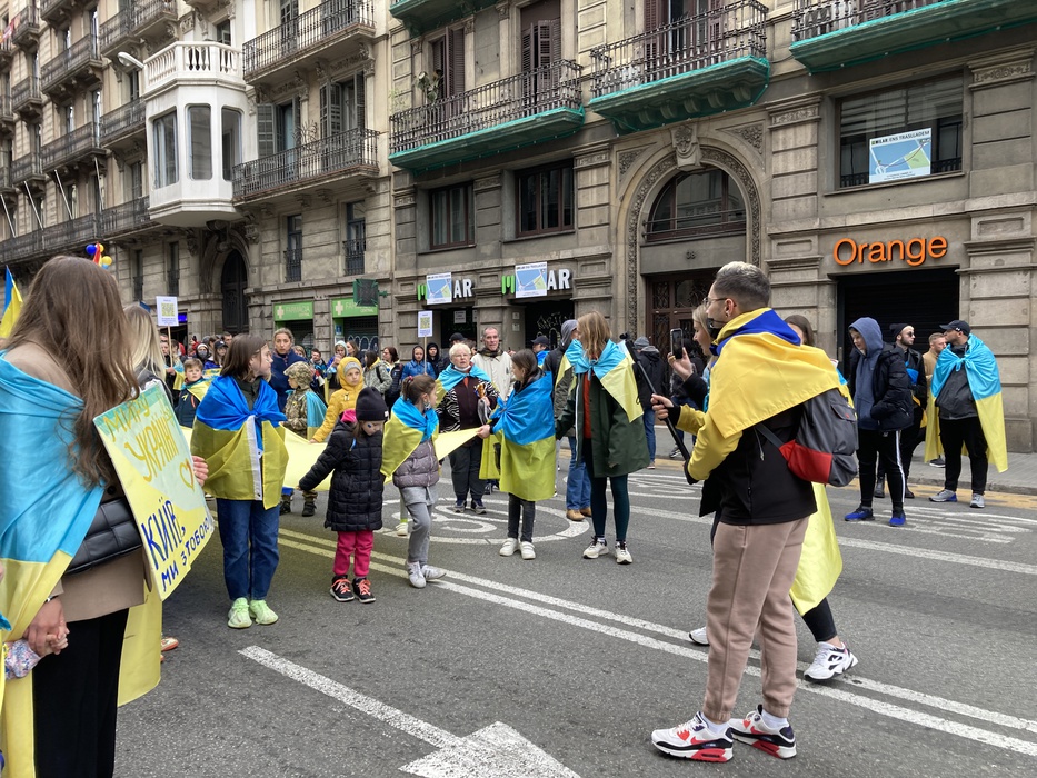 31.4.2022 в Барселоне около 300 человек участвовали в протесте против войны в Украине. Люди стали собираться около 11 часов на площади Каталонии, шествие началось после 12 часов. На Via Laetana шествие возглавили дети, которые несли украинский флаг. Были плакаты и листовки о петиции — о переименовании проспекта, на котором располагается российское консульство в Барселоне, в проспект имени Независимости Украины.