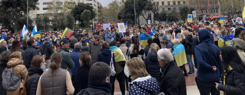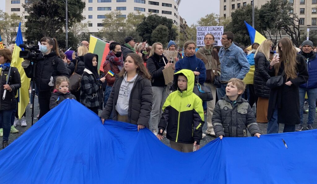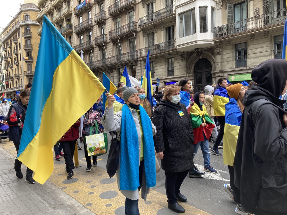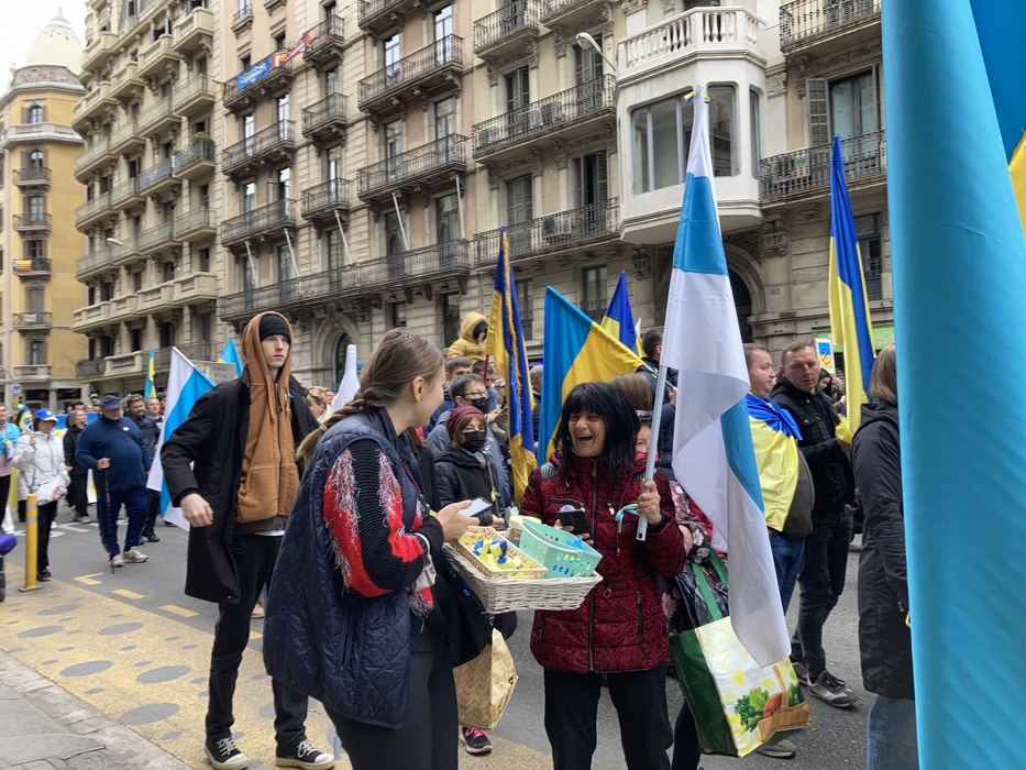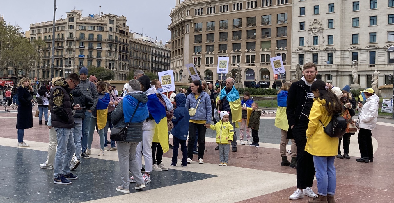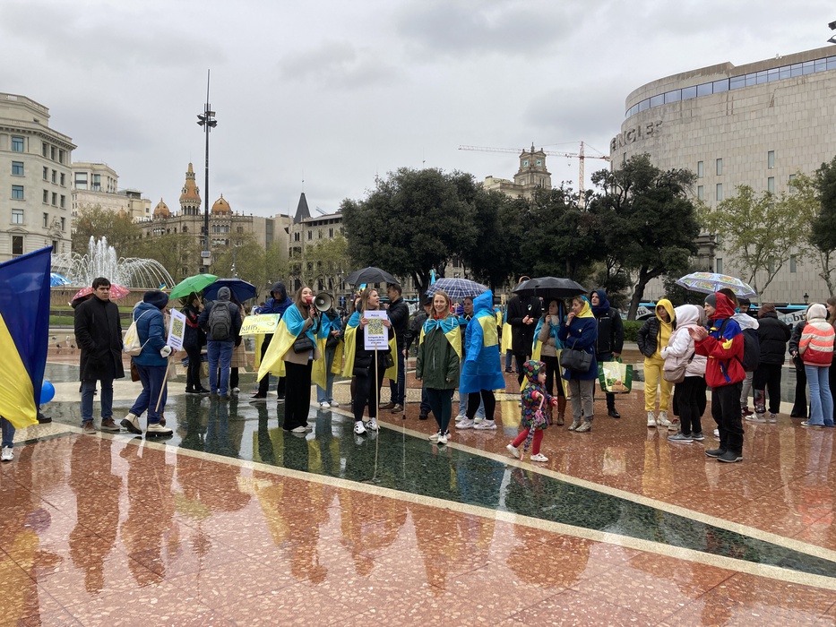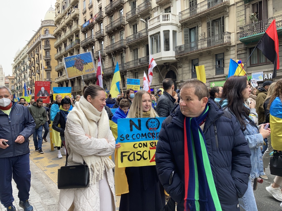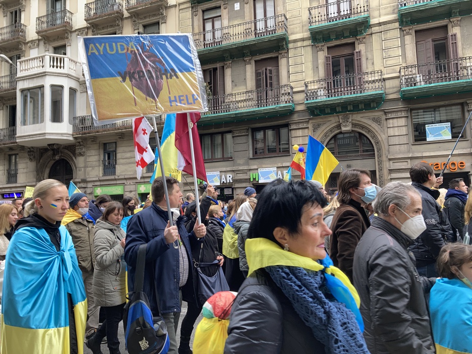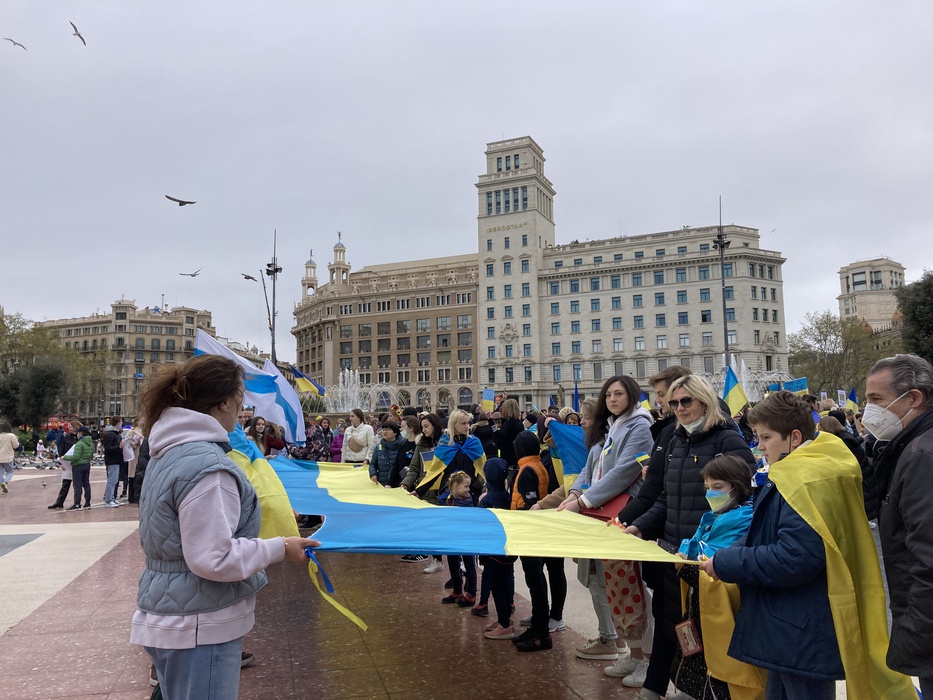 31.4.2022 в Барселоне около 300 человек участвовали в протесте против войны в Украине. Люди стали собираться около 11 часов на площади Каталонии, шествие началось после 12 часов. На Via Laetana шествие возглавили дети, которые несли украинский флаг. Были плакаты и листовки о петиции — о переименовании проспекта, на котором располагается российское консульство в Барселоне, в проспект имени Независимости Украины.