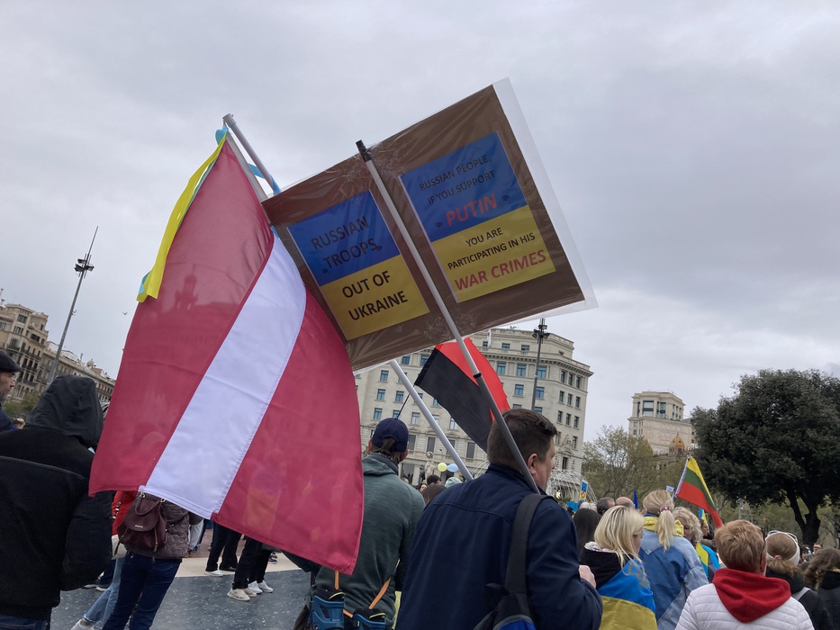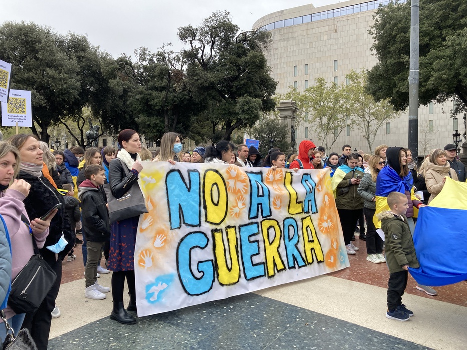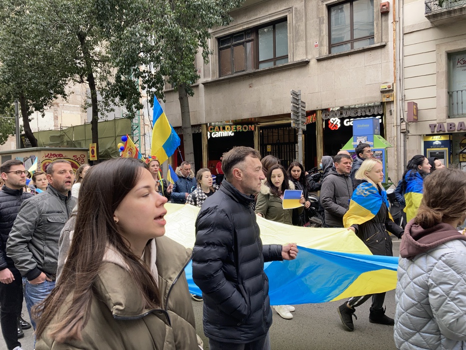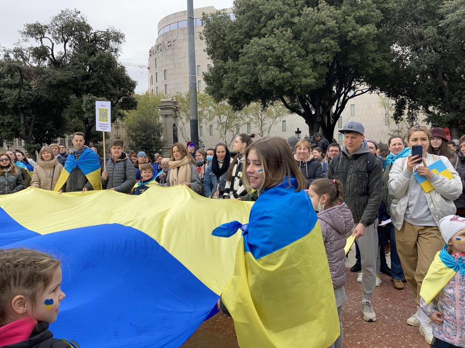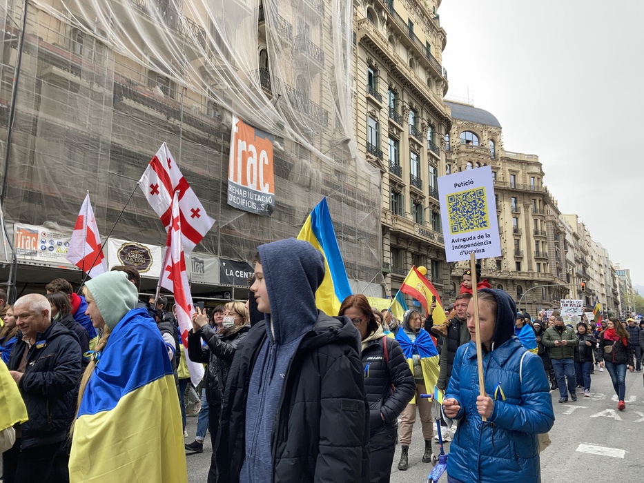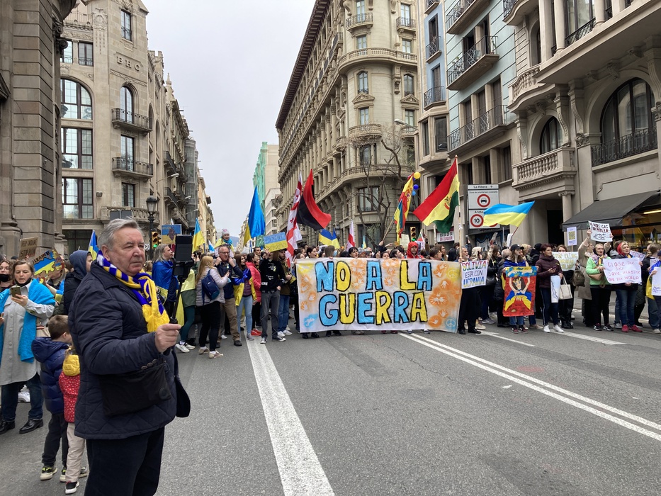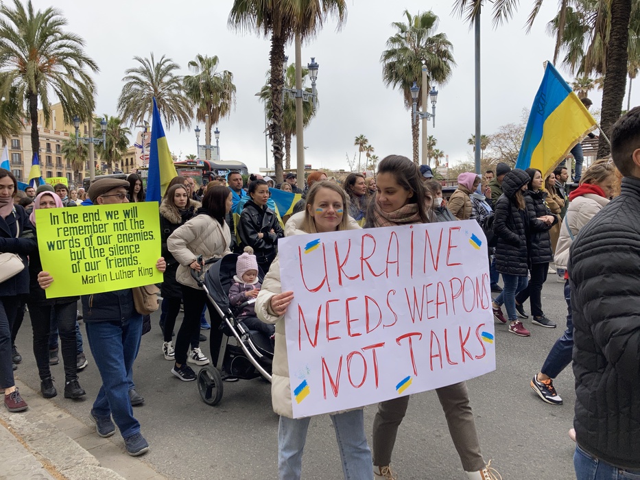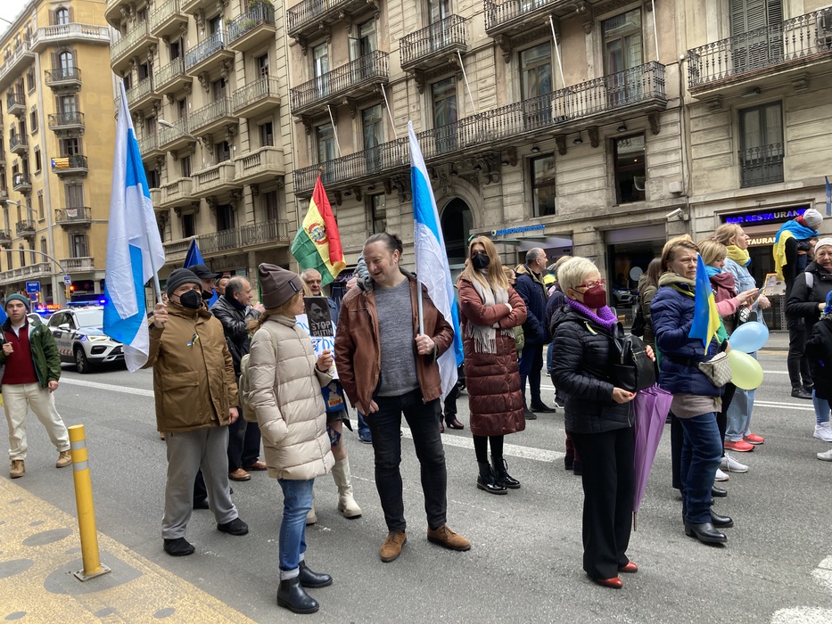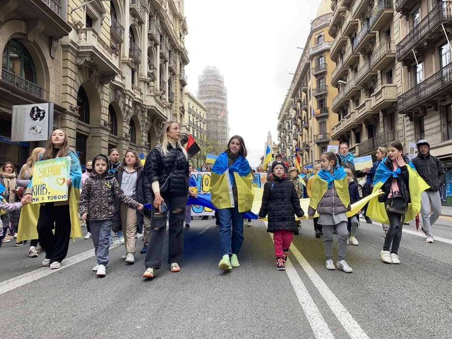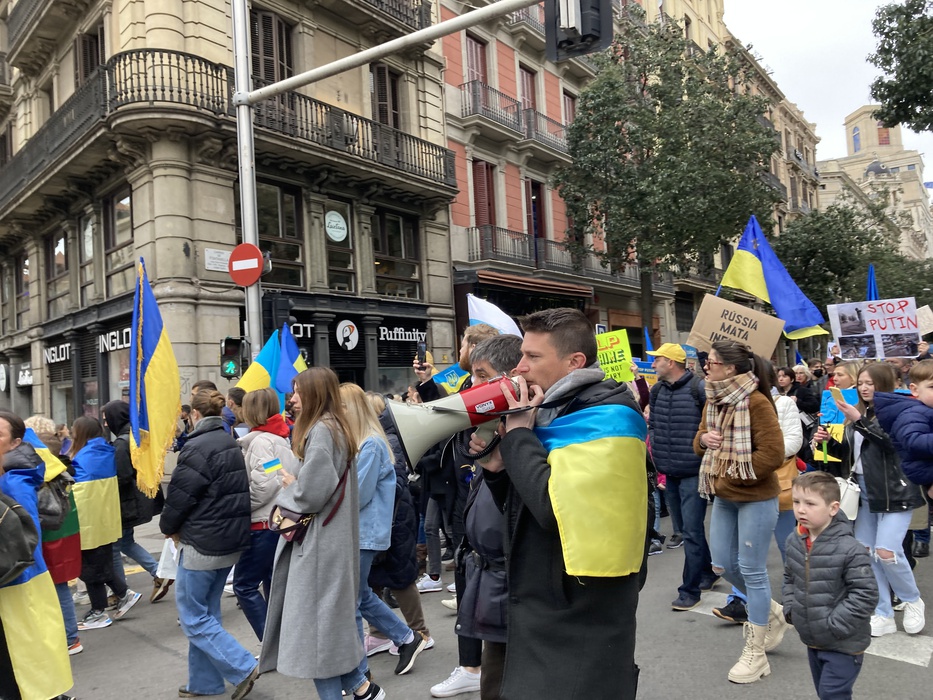 31.4.2022 в Барселоне около 300 человек участвовали в протесте против войны в Украине. Люди стали собираться около 11 часов на площади Каталонии, шествие началось после 12 часов. На Via Laetana шествие возглавили дети, которые несли украинский флаг. Были плакаты и листовки о петиции — о переименовании проспекта, на котором располагается российское консульство в Барселоне, в проспект имени Независимости Украины.