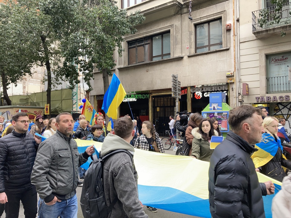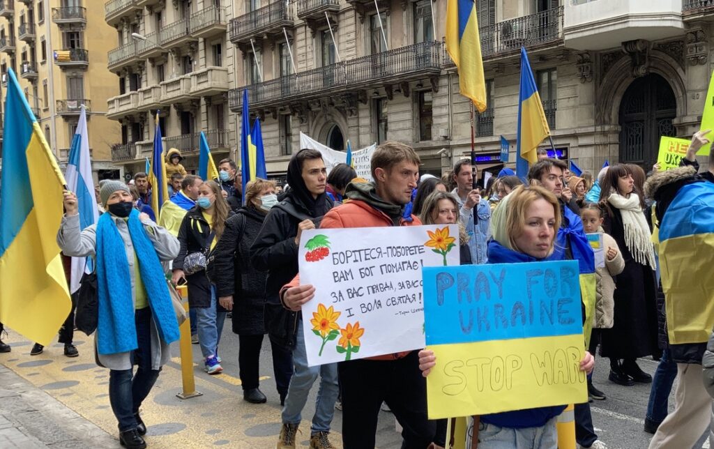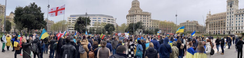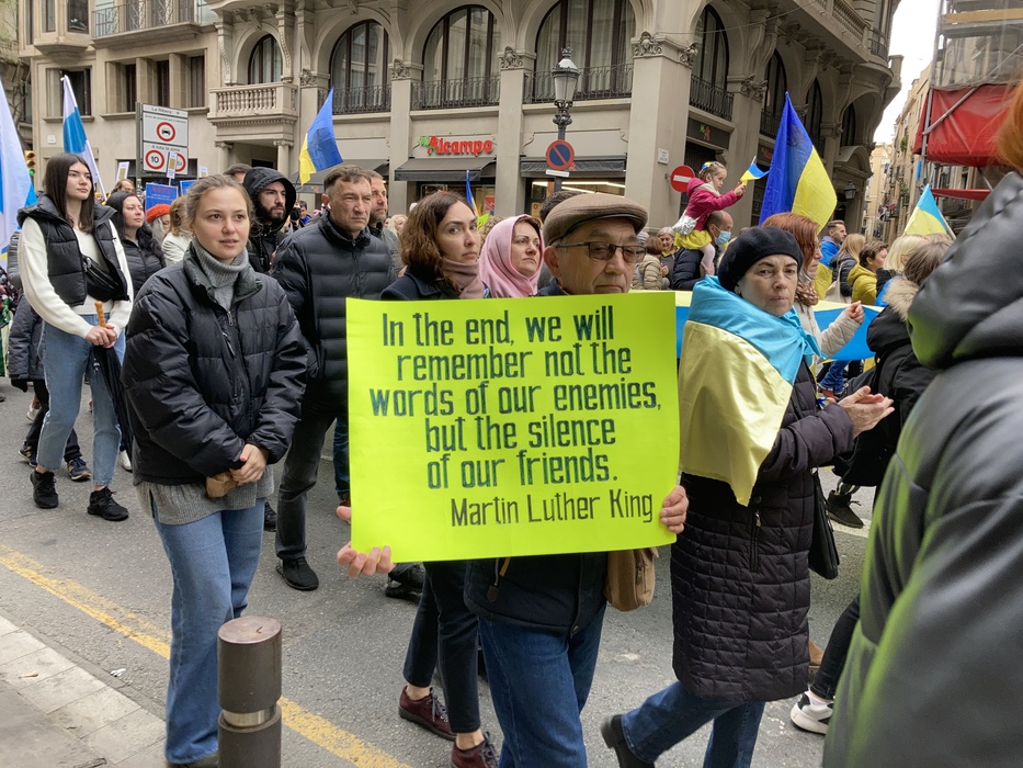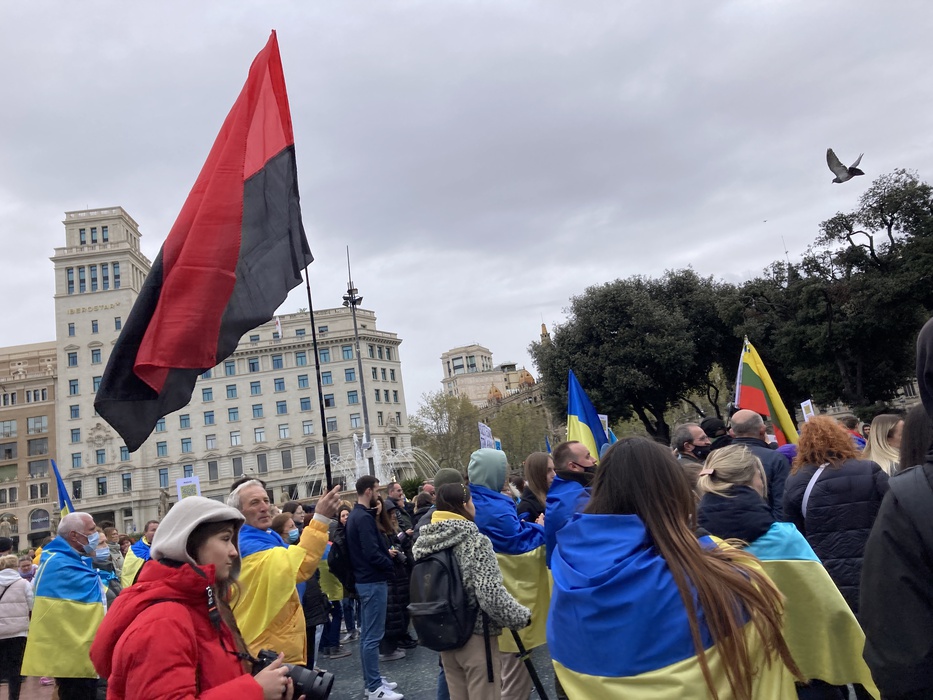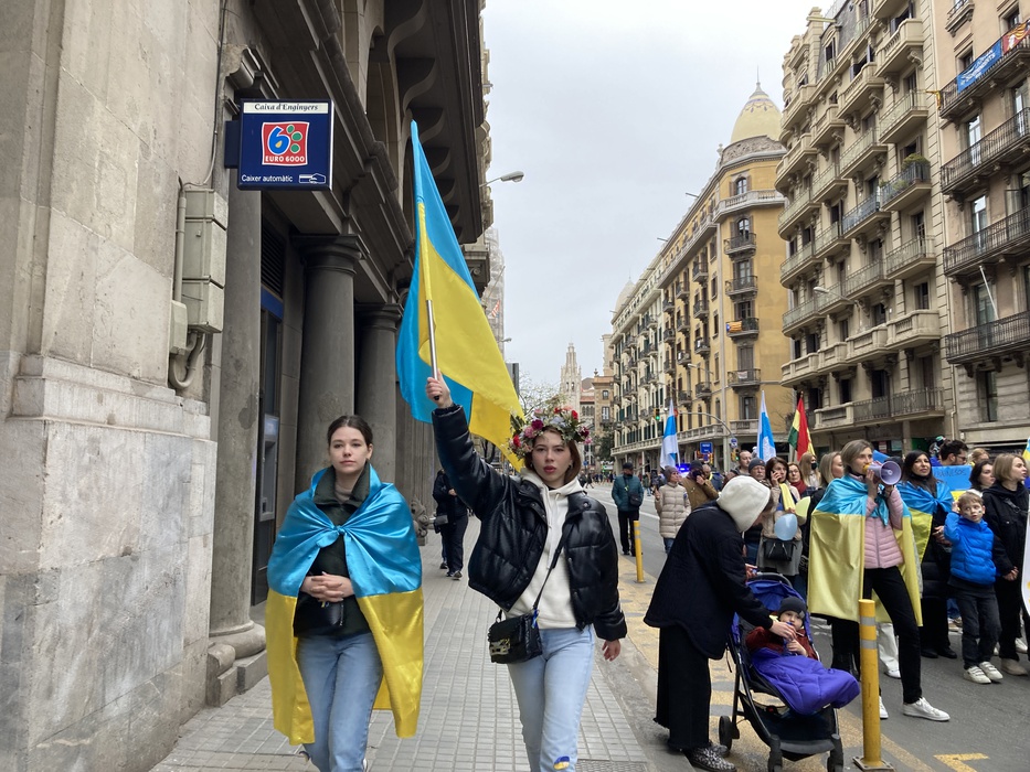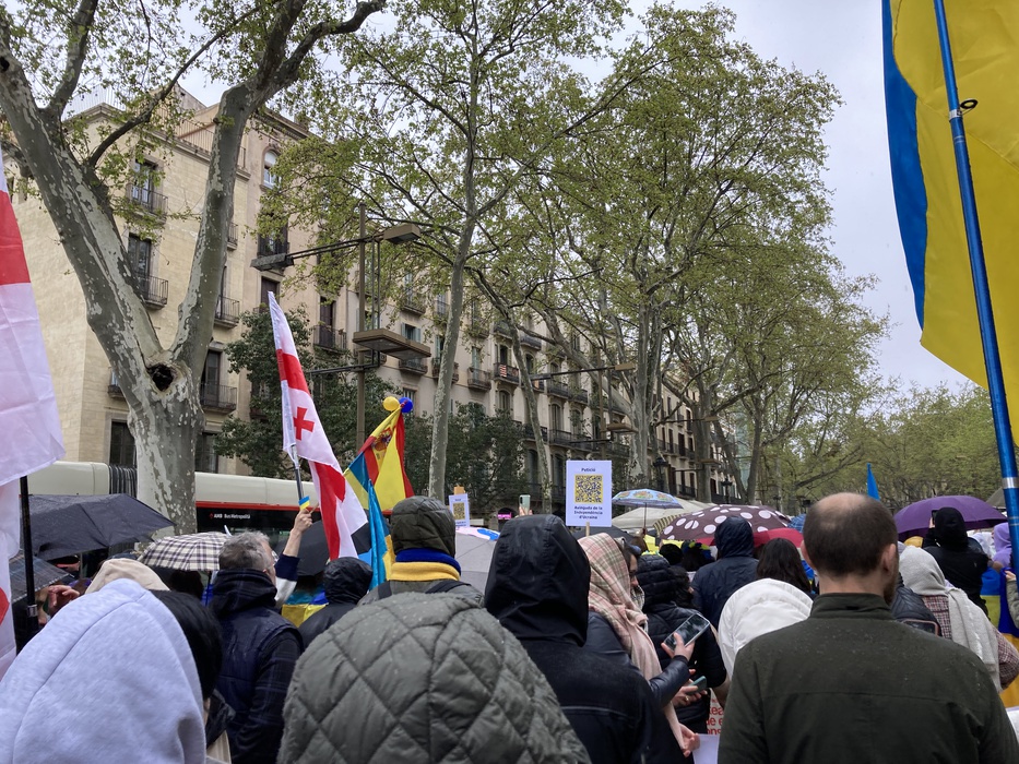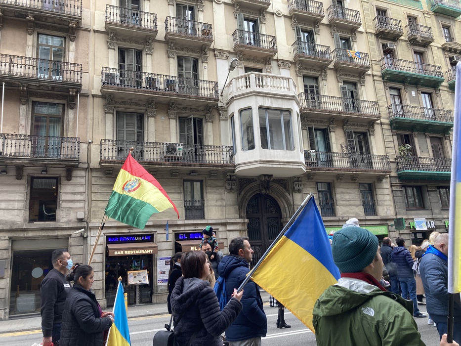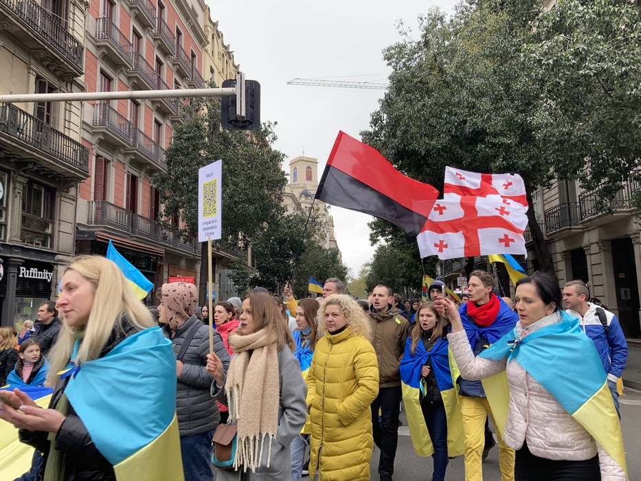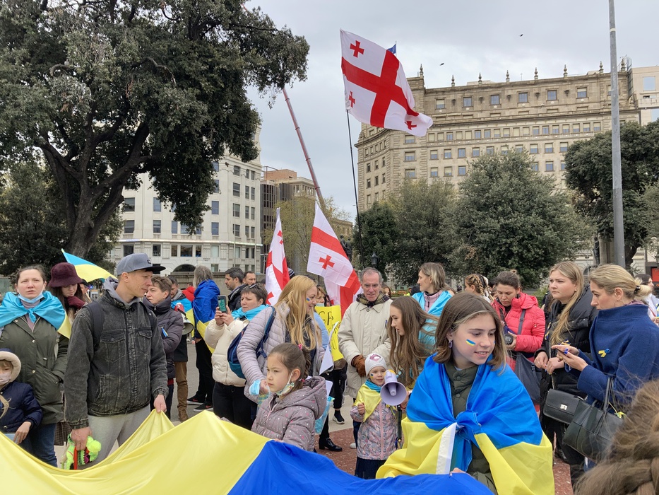 31.4.2022 в Барселоне около 300 человек участвовали в протесте против войны в Украине. Люди стали собираться около 11 часов на площади Каталонии, шествие началось после 12 часов. На Via Laetana шествие возглавили дети, которые несли украинский флаг. Были плакаты и листовки о петиции — о переименовании проспекта, на котором располагается российское консульство в Барселоне, в проспект имени Независимости Украины.