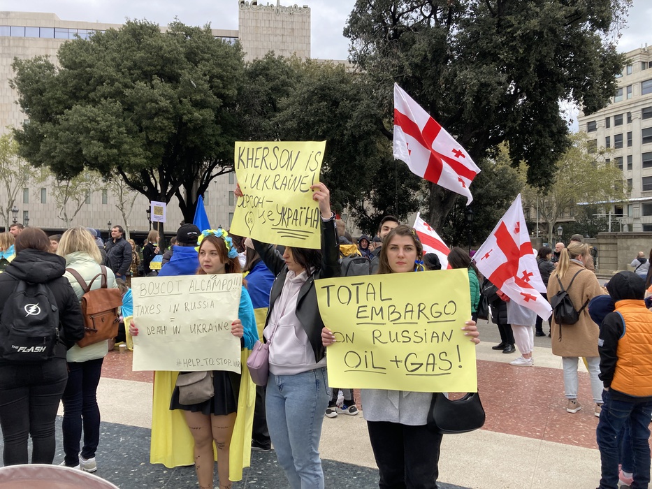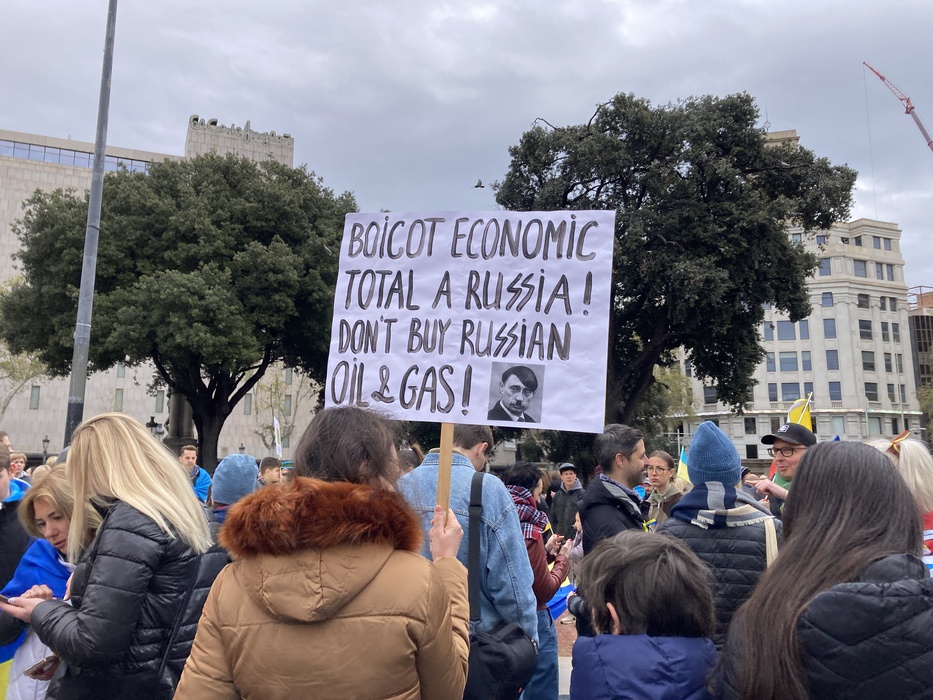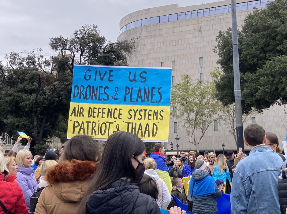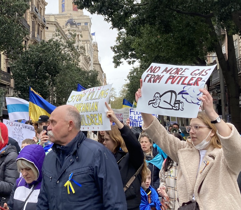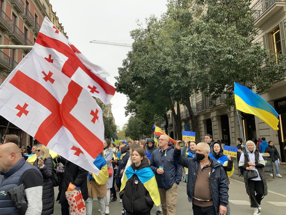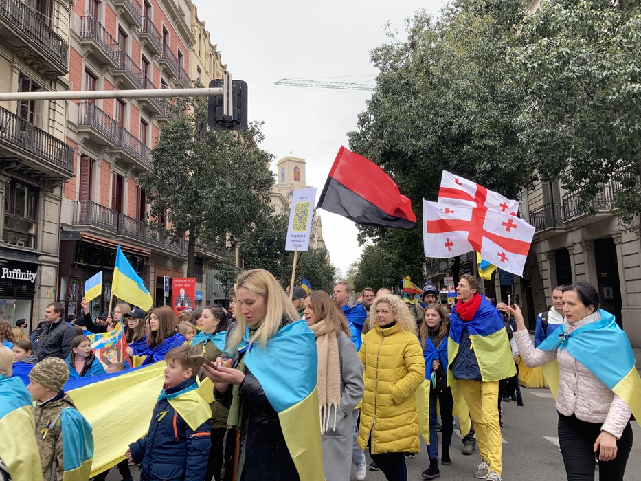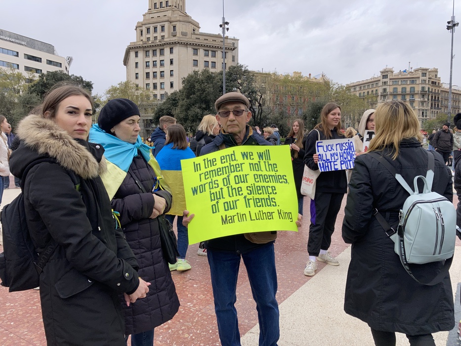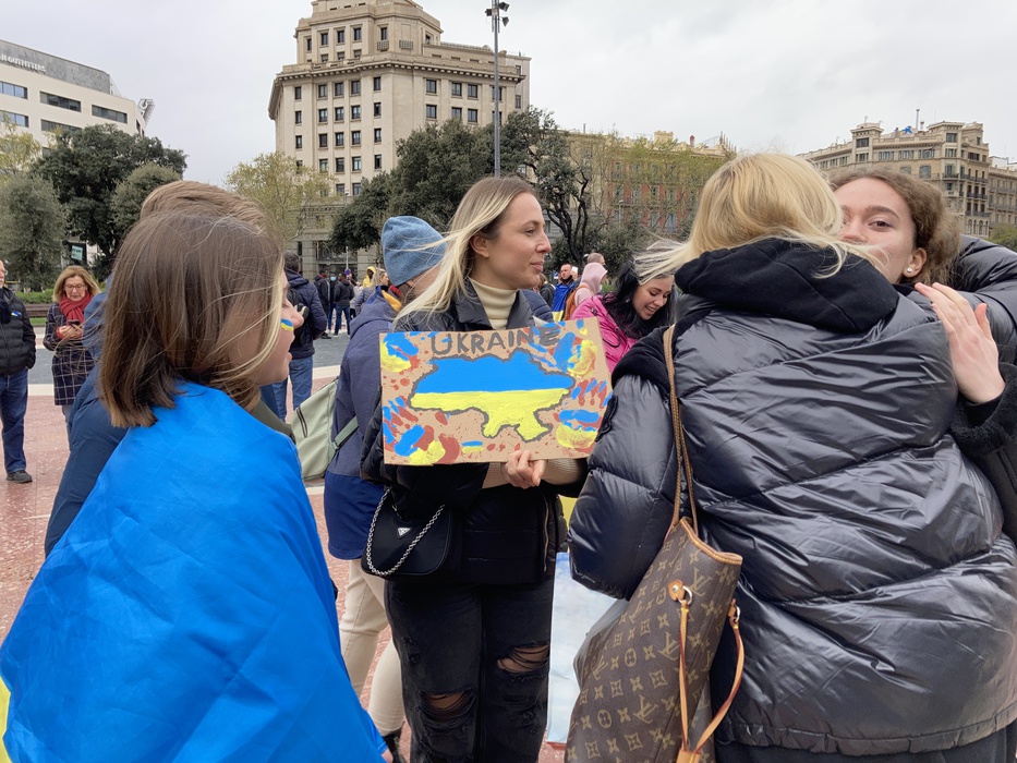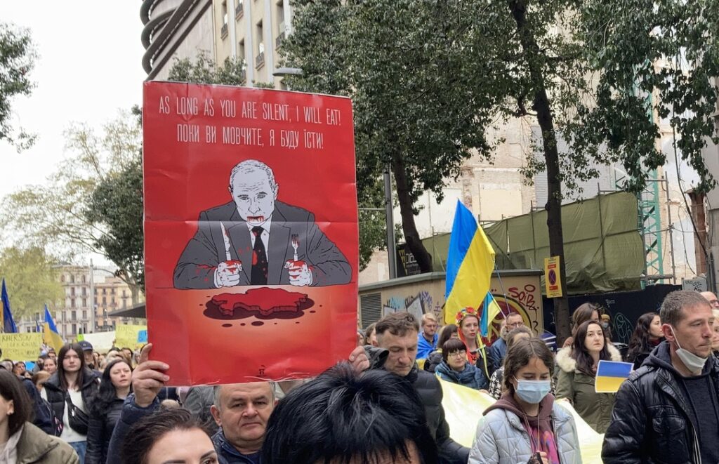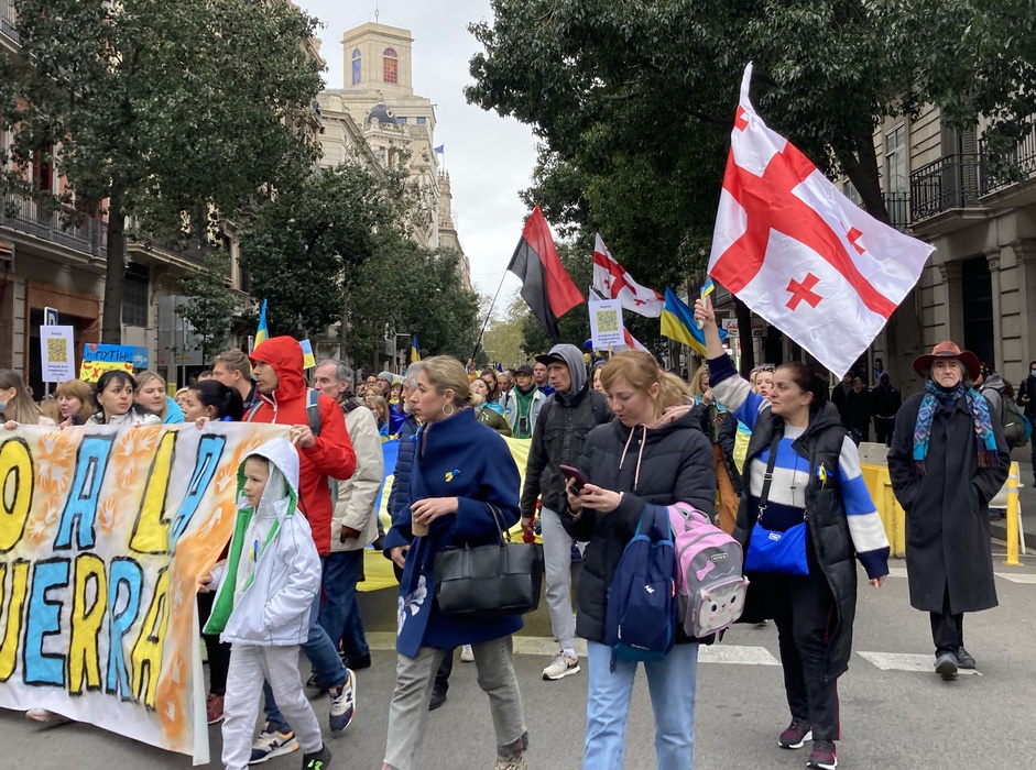 31.4.2022 в Барселоне около 300 человек участвовали в протесте против войны в Украине. Люди стали собираться около 11 часов на площади Каталонии, шествие началось после 12 часов. На Via Laetana шествие возглавили дети, которые несли украинский флаг. Были плакаты и листовки о петиции — о переименовании проспекта, на котором располагается российское консульство в Барселоне, в проспект имени Независимости Украины.