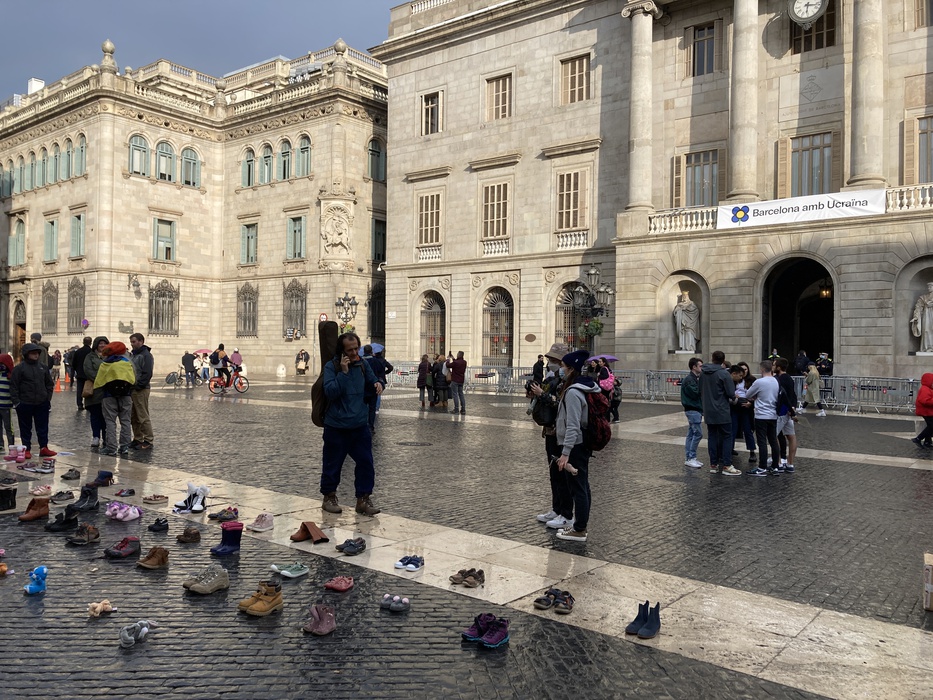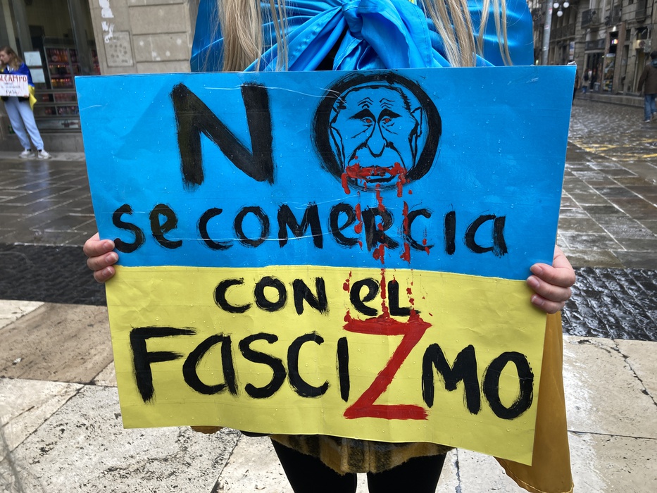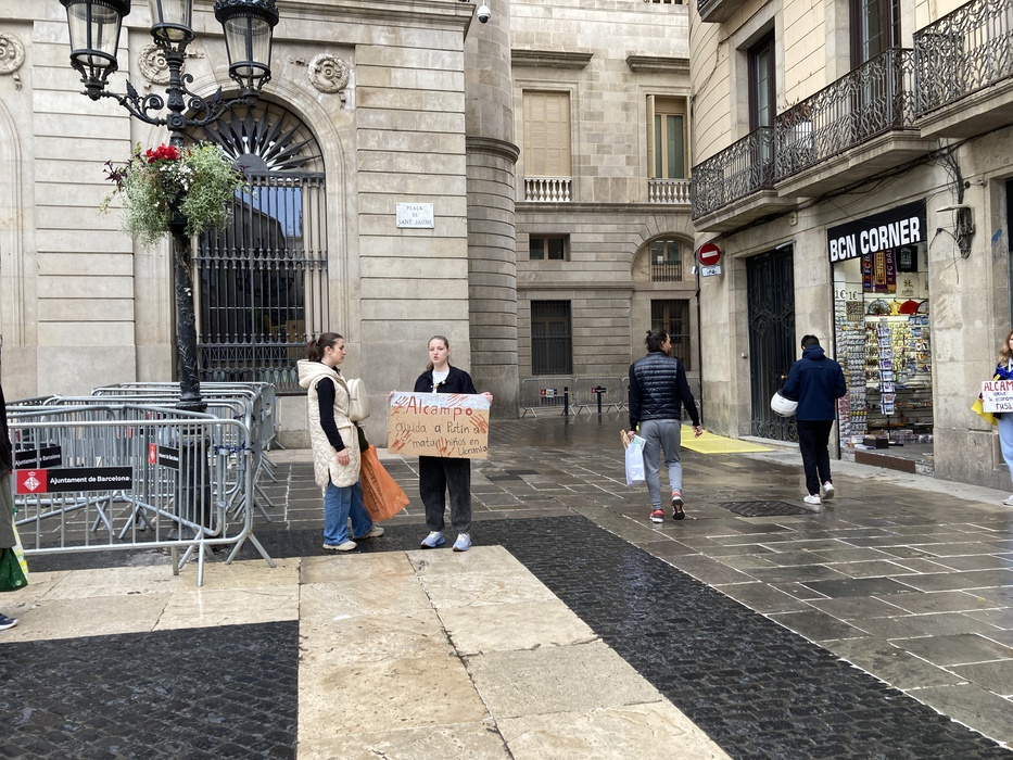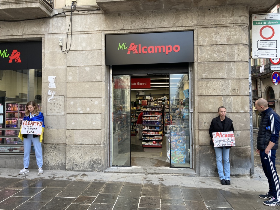 ¡Se llevó a cabo una acción en Barcelona pidiendo a Alcampo, Leroy Merlin y Nestlé que dejen de financiar la guerra en Ucrania!