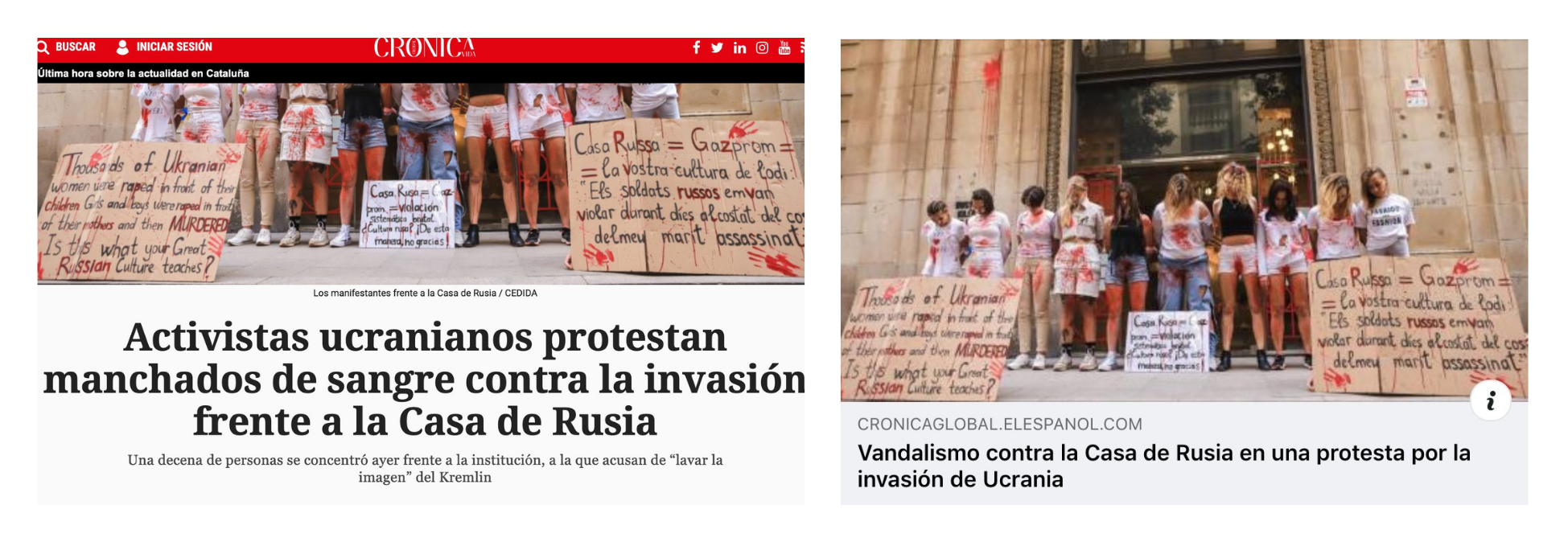 Безнадежна ли ситуация? Проживающей в Испании украинке Oksana Byblyk удалось одного из редакторов поменять заголовок над статьёй, где акиция о против фемицида в Украине называлась вандализмом против Русского дома: «Взорвать соседнюю страну — норма, протестовать против фемицида, инфантицида и геноцида — вандализм?». Эти аргументы сработали, статья получила название, соответствующее действительности, вместо «Вандализм против Русского дома во время протеста против вторжения в Украину» она стала называться «Украинские активистки протестуют окровавленными против вторжения перед Русским домом».