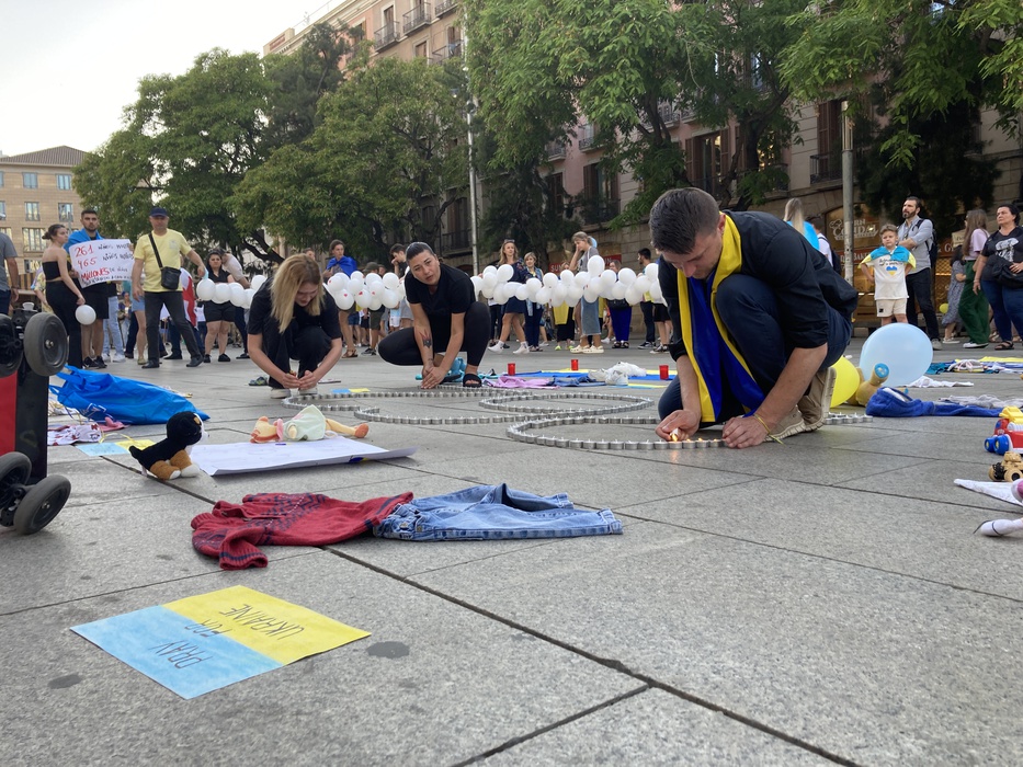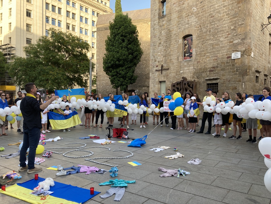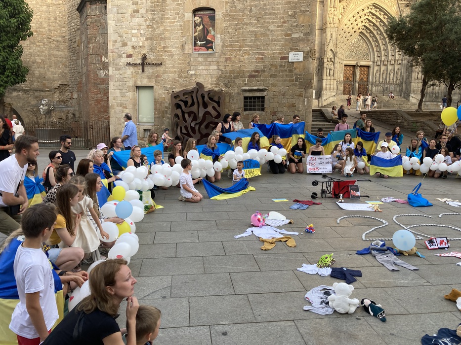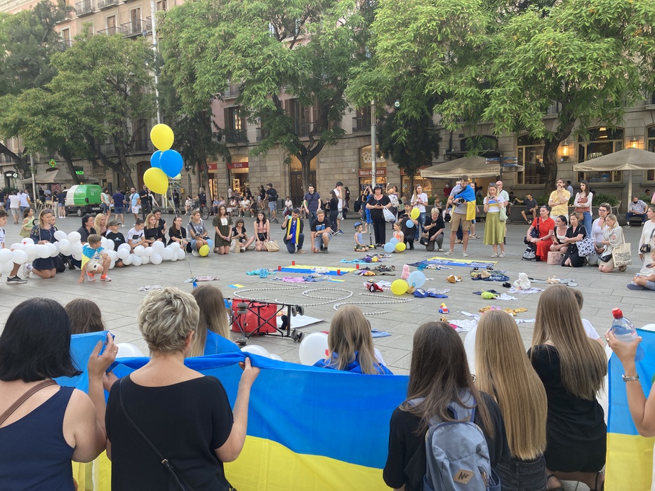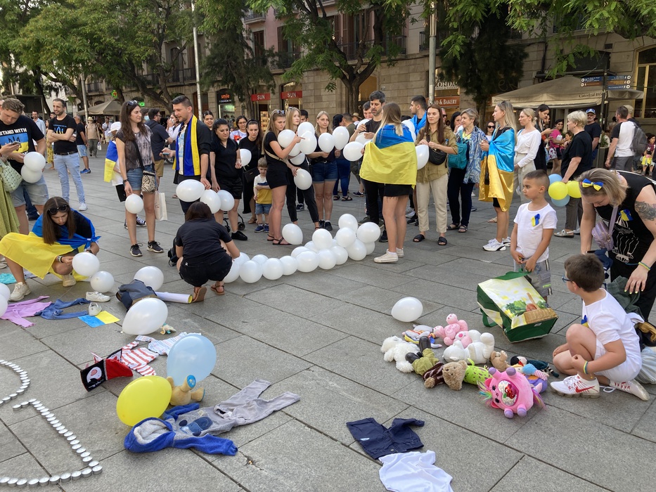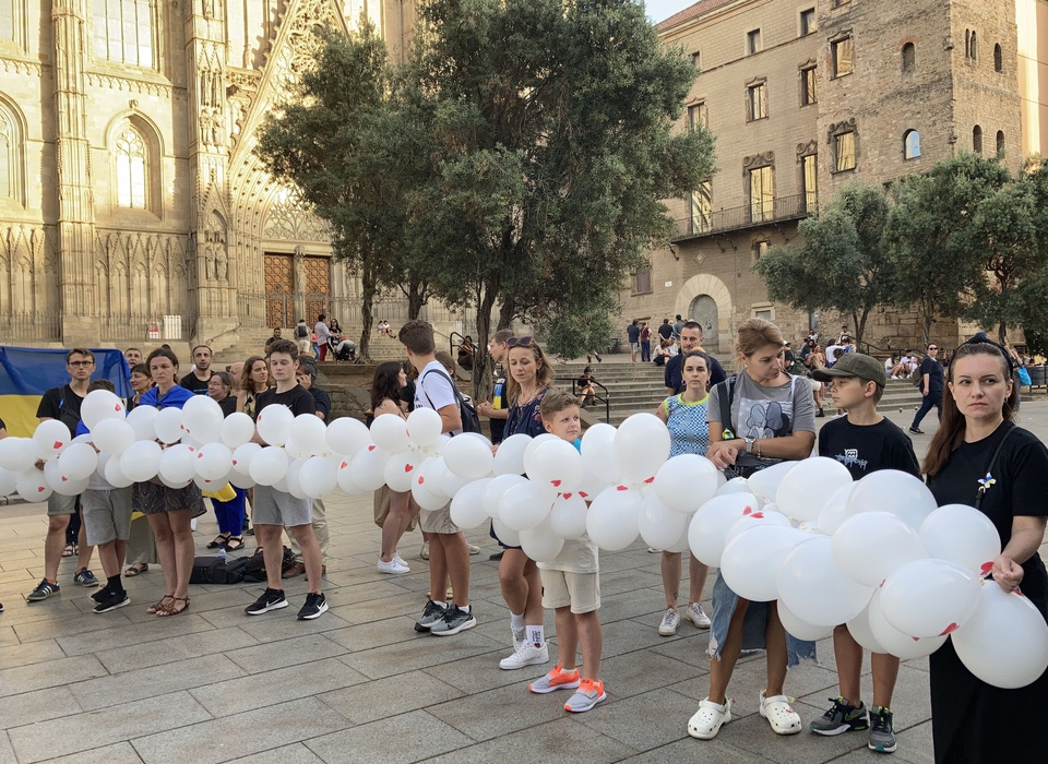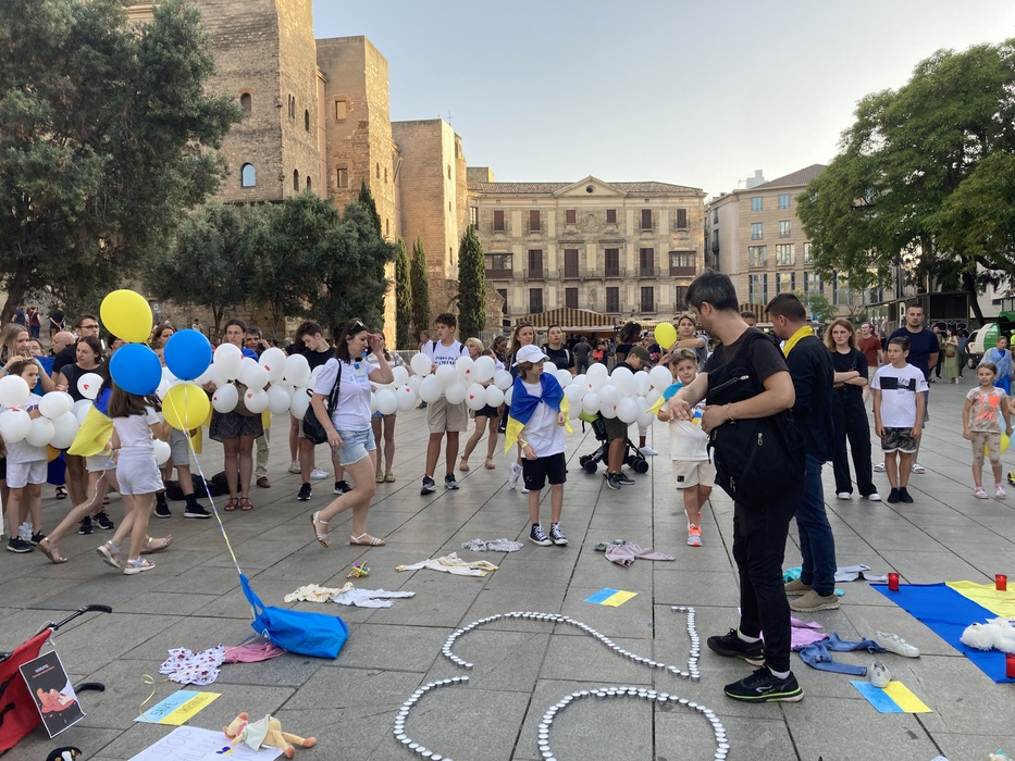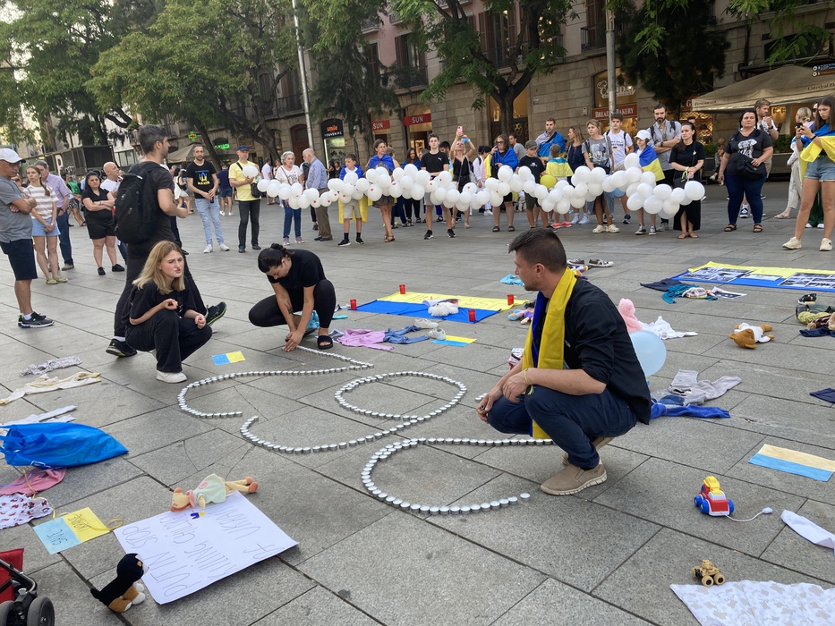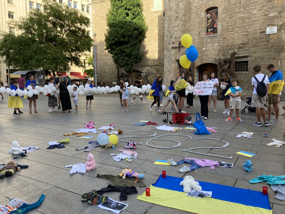 4.6.2022 на Plaça Nova в Барселоне состоялась акция памяти. Украинцы просили прохожих надувать белые шарики и затем нанизывали шарики на нитку. Каждый белый шарик символизировал убитого россиянами украинского ребенка, 262 официальных жертв войны. Эту цифру выложили из зажженных свечей. На площади были разложены детские игрушки, детская одежда, коляски, фотографии убитых детей. Люди пели песню Стефания, Гимн Украины. Ведущий мероприятие Остап Петрущак сказал: «Попрошу хвилину мовчання. За усі життя, які забрали. Особливо за 262 офіційні жертв дітей. Це наше майбутнє, і вони у нас його забирають. Кожна кулька представляє життя дитини.»