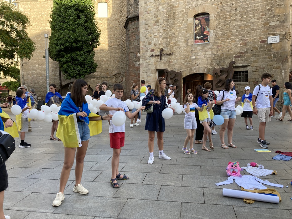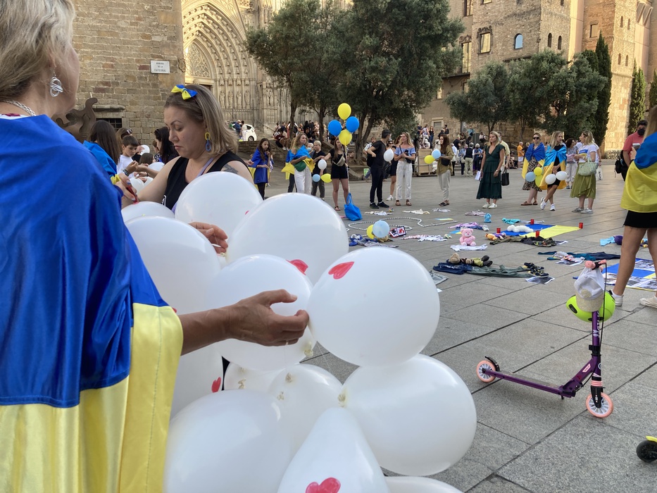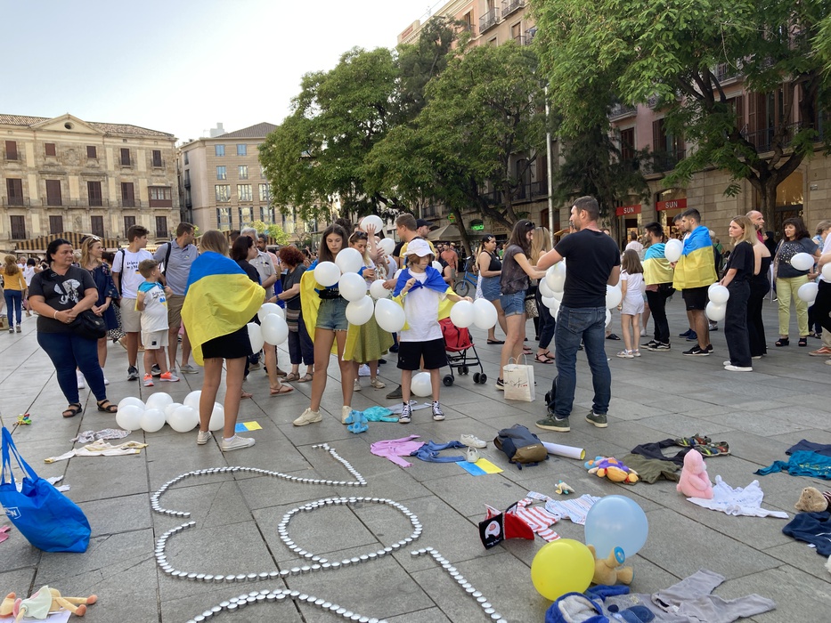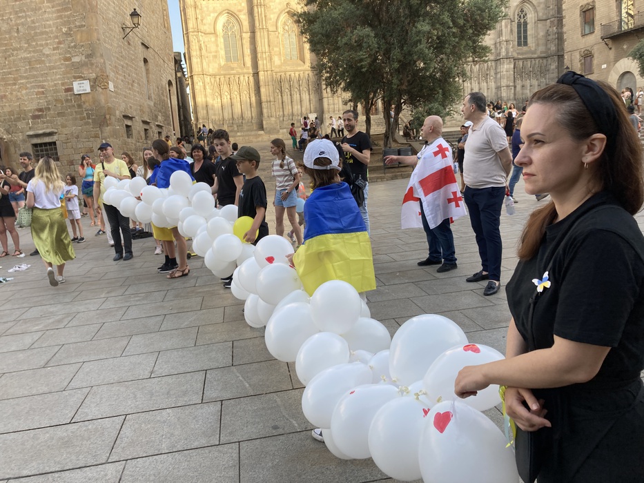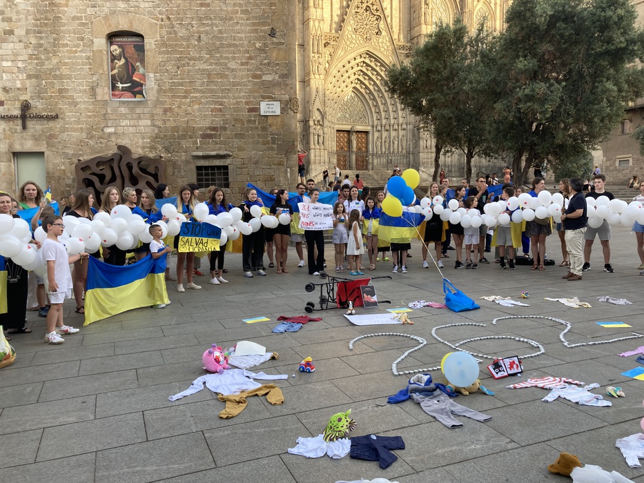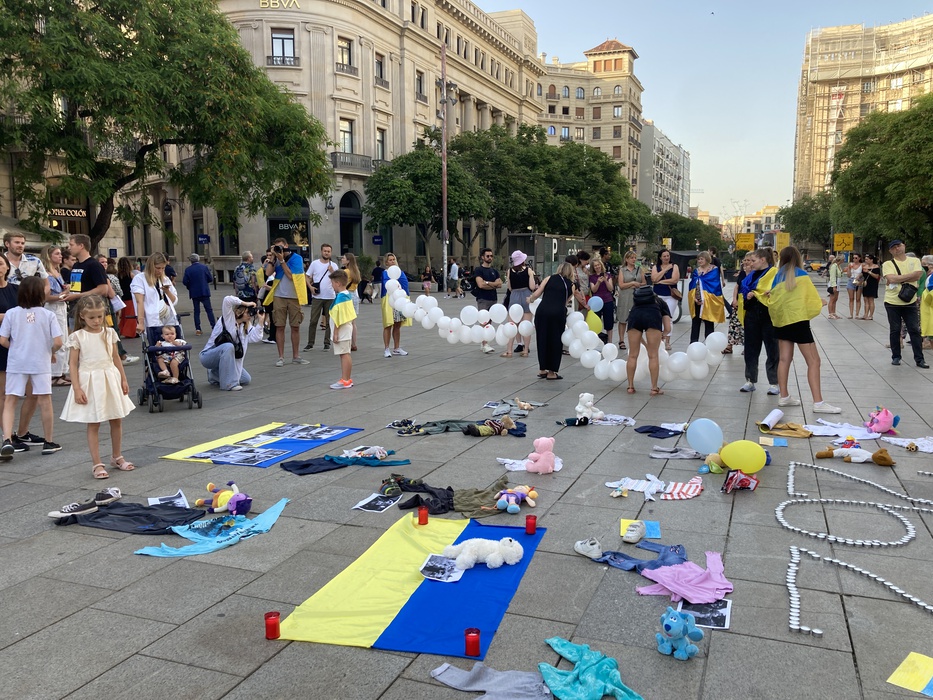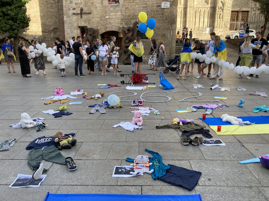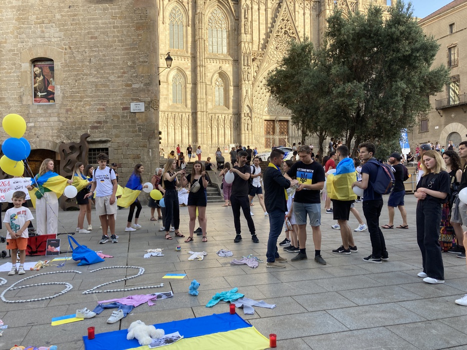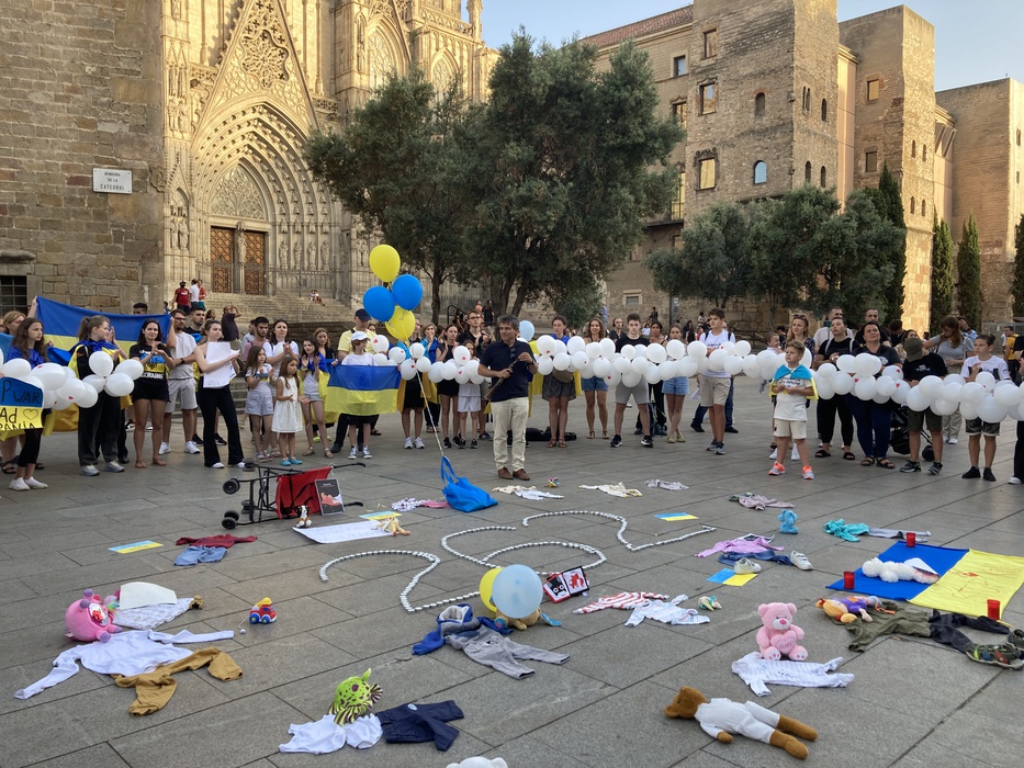 4.6.2022 на Plaça Nova в Барселоне состоялась акция памяти. Украинцы просили прохожих надувать белые шарики и затем нанизывали шарики на нитку. Каждый белый шарик символизировал убитого россиянами украинского ребенка, 262 официальных жертв войны. Эту цифру выложили из зажженных свечей. На площади были разложены детские игрушки, детская одежда, коляски, фотографии убитых детей. Люди пели песню Стефания, Гимн Украины. Ведущий мероприятие Остап Петрущак сказал: «Попрошу хвилину мовчання. За усі життя, які забрали. Особливо за 262 офіційні жертв дітей. Це наше майбутнє, і вони у нас його забирають. Кожна кулька представляє життя дитини.»