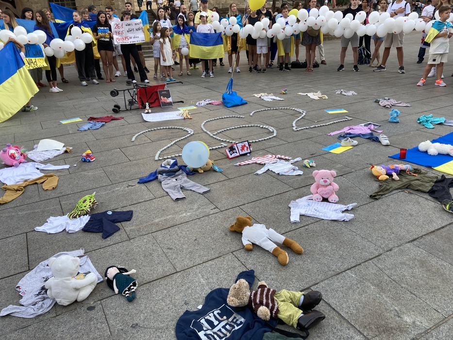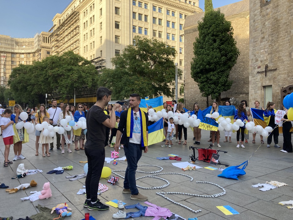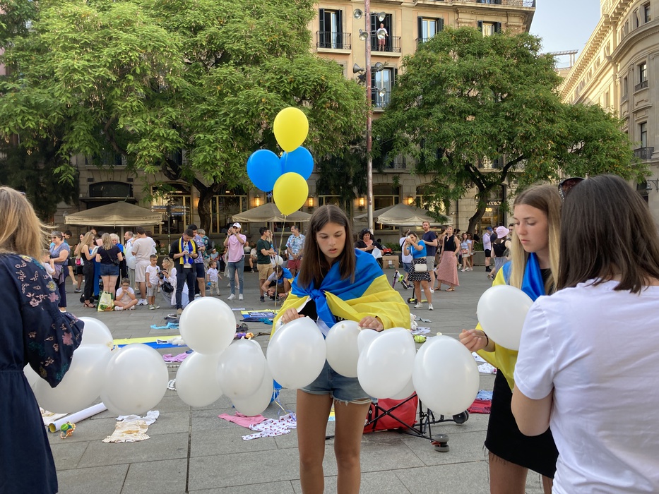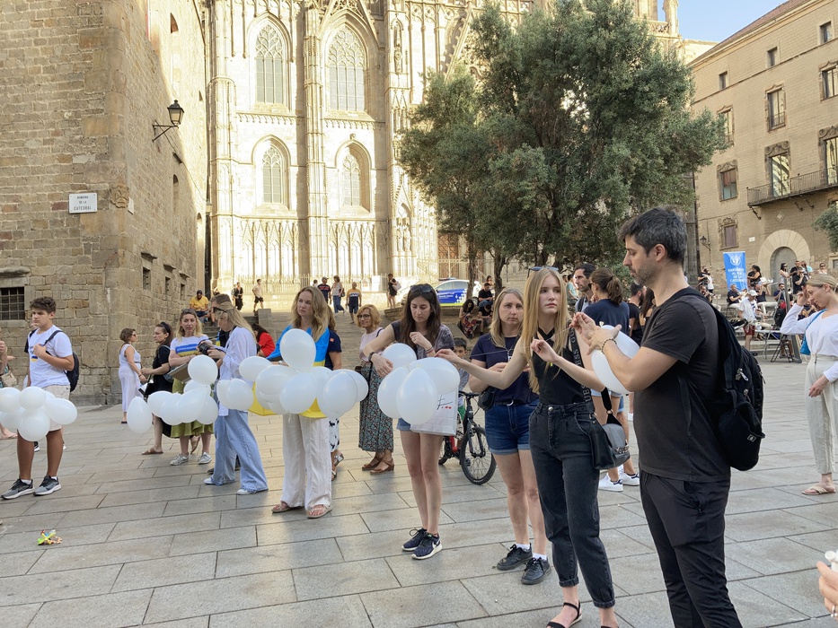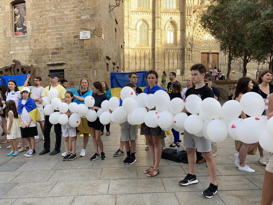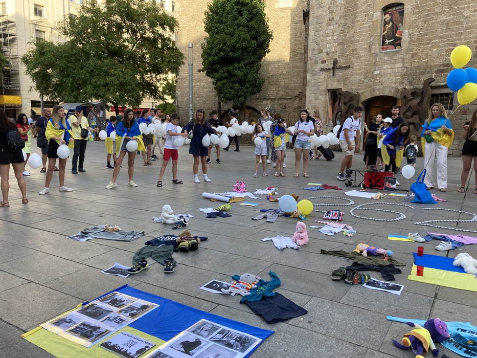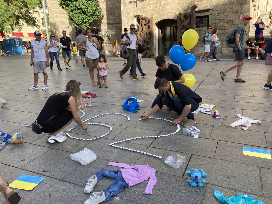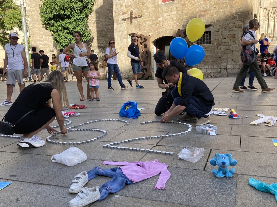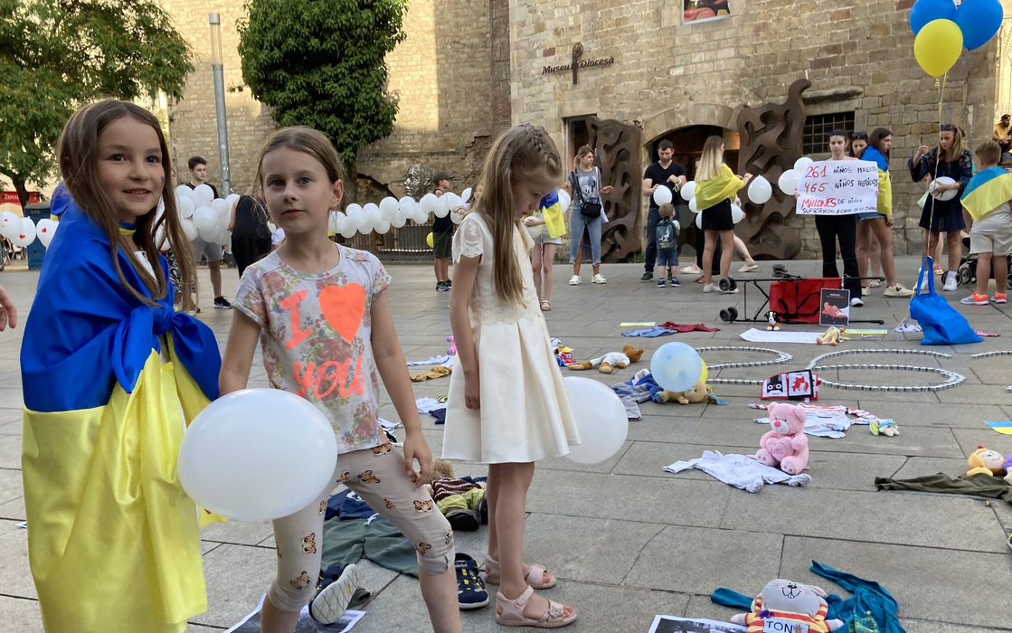 4.6.2022 на Plaça Nova в Барселоне состоялась акция памяти. Украинцы просили прохожих надувать белые шарики и затем нанизывали шарики на нитку. Каждый белый шарик символизировал убитого россиянами украинского ребенка, 262 официальных жертв войны. Эту цифру выложили из зажженных свечей. На площади были разложены детские игрушки, детская одежда, коляски, фотографии убитых детей. Люди пели песню Стефания, Гимн Украины. Ведущий мероприятие Остап Петрущак сказал: «Попрошу хвилину мовчання. За усі життя, які забрали. Особливо за 262 офіційні жертв дітей. Це наше майбутнє, і вони у нас його забирають. Кожна кулька представляє життя дитини.»