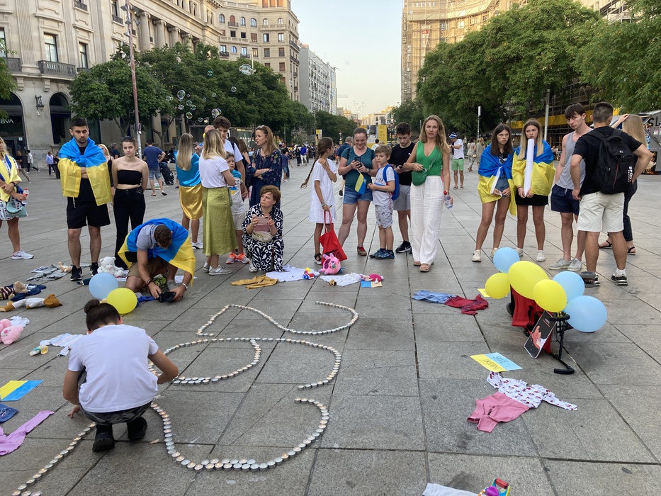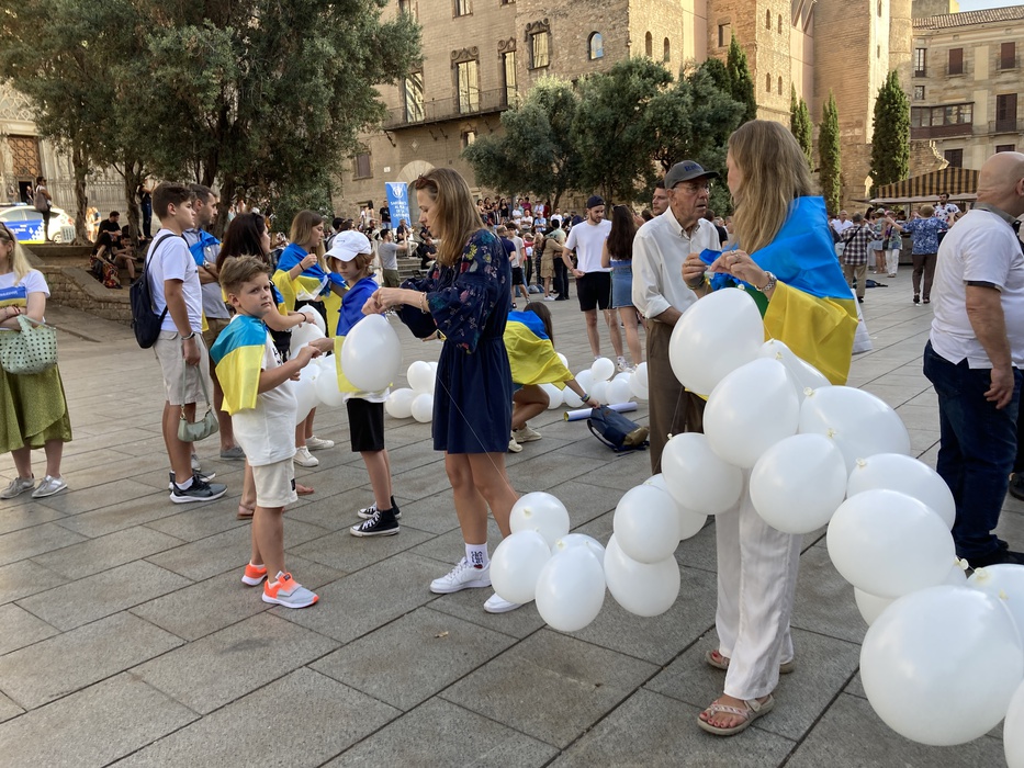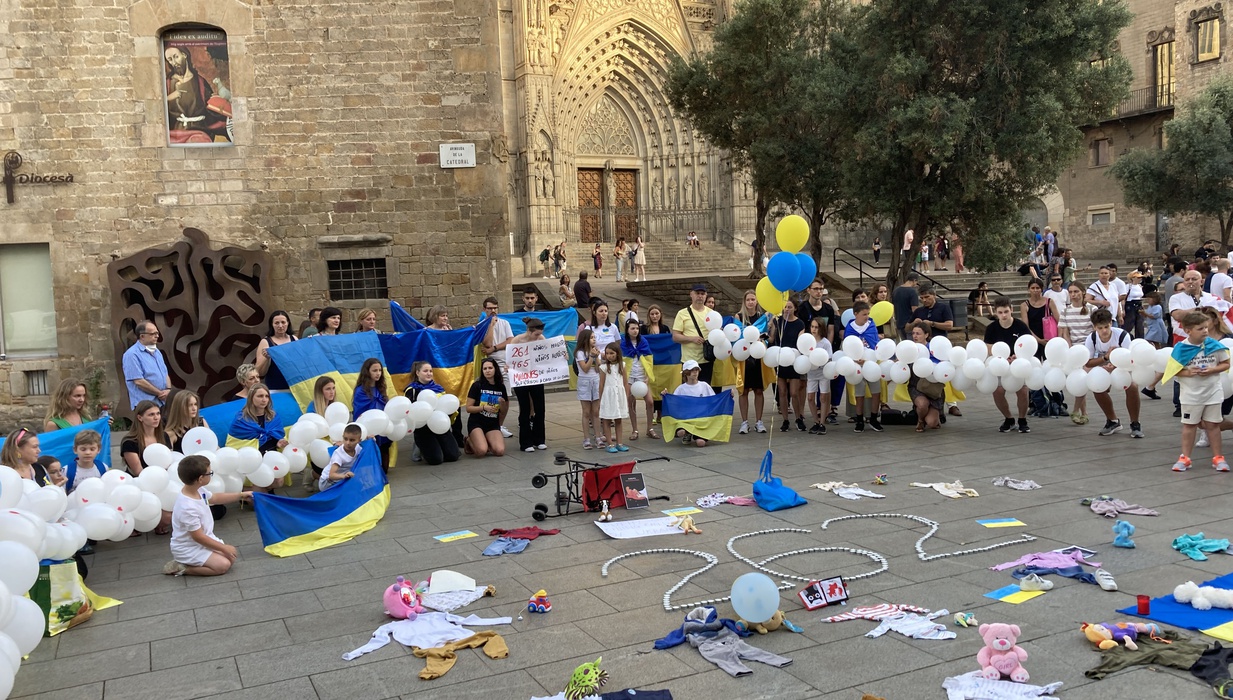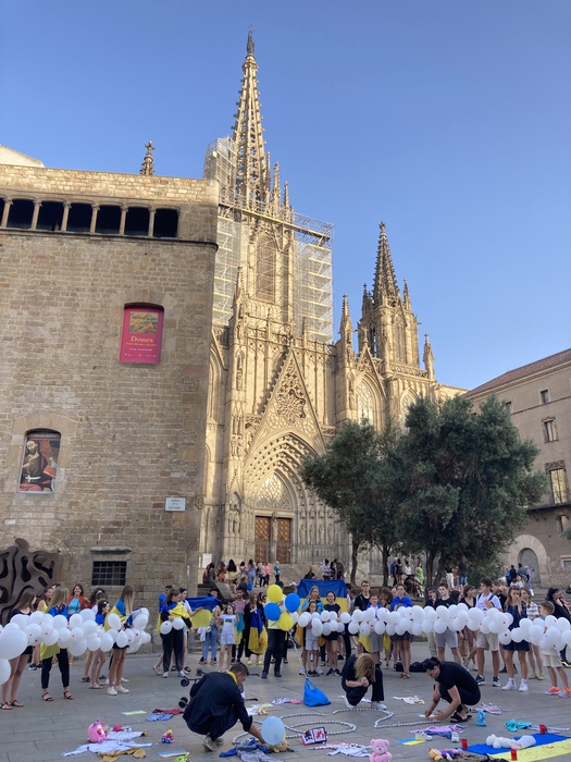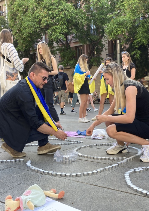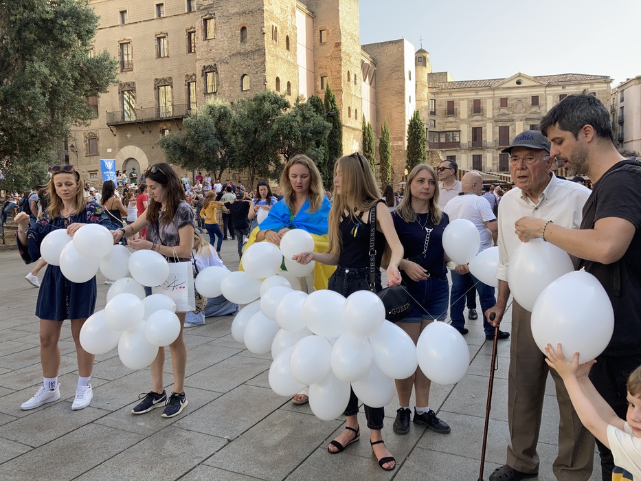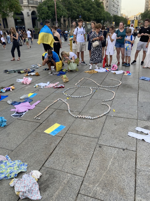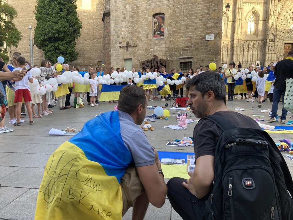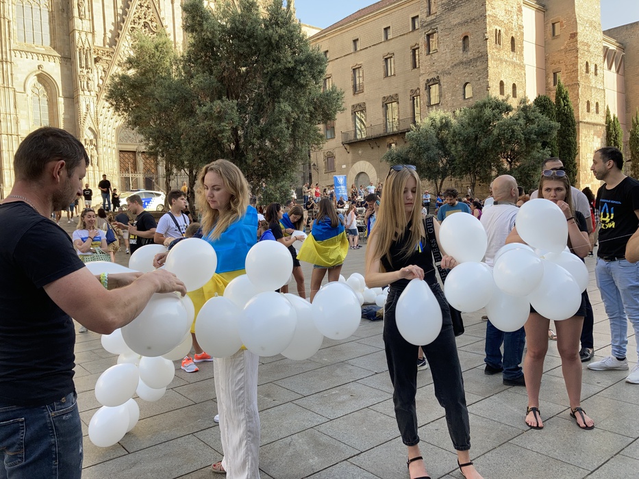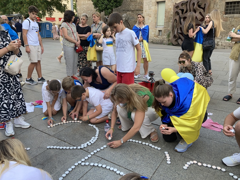 4.6.2022 на Plaça Nova в Барселоне состоялась акция памяти. Украинцы просили прохожих надувать белые шарики и затем нанизывали шарики на нитку. Каждый белый шарик символизировал убитого россиянами украинского ребенка, 262 официальных жертв войны. Эту цифру выложили из зажженных свечей. На площади были разложены детские игрушки, детская одежда, коляски, фотографии убитых детей. Люди пели песню Стефания, Гимн Украины. Ведущий мероприятие Остап Петрущак сказал: «Попрошу хвилину мовчання. За усі життя, які забрали. Особливо за 262 офіційні жертв дітей. Це наше майбутнє, і вони у нас його забирають. Кожна кулька представляє життя дитини.»