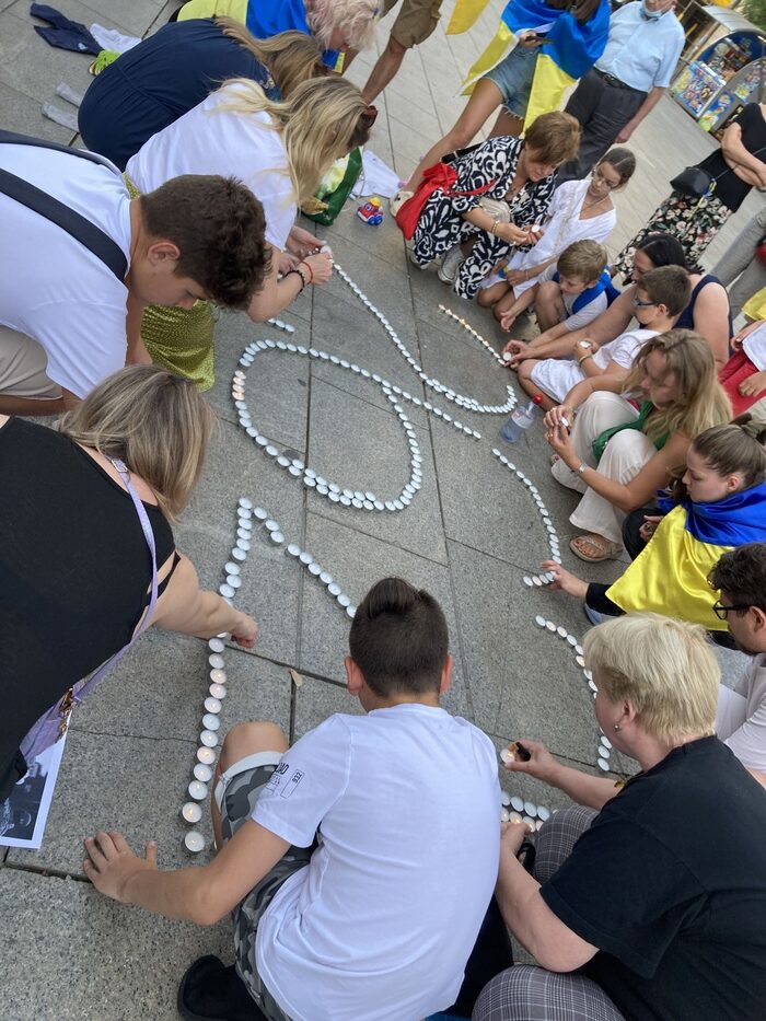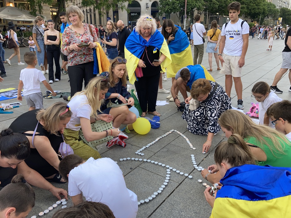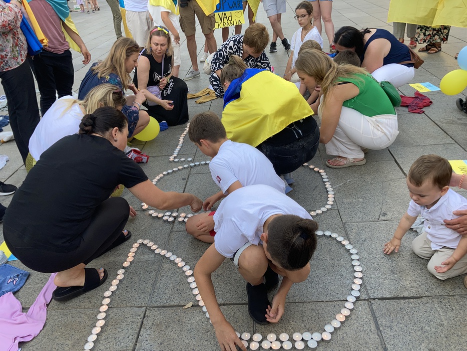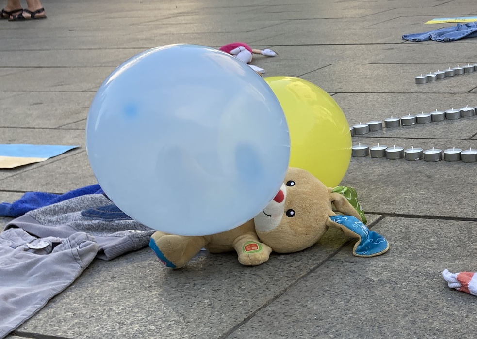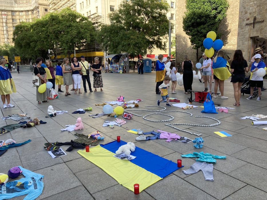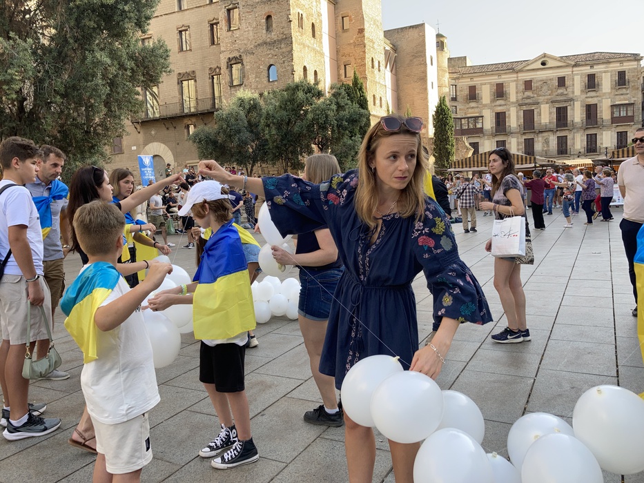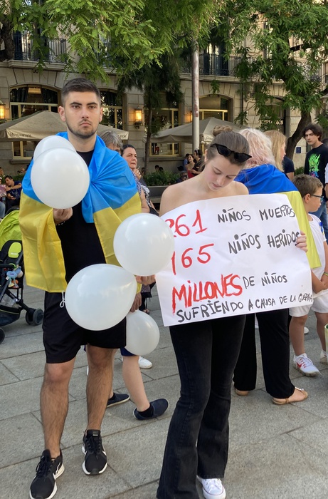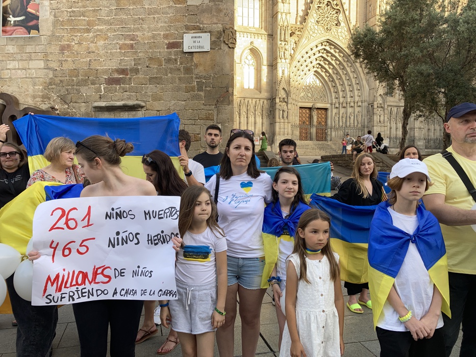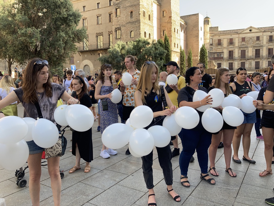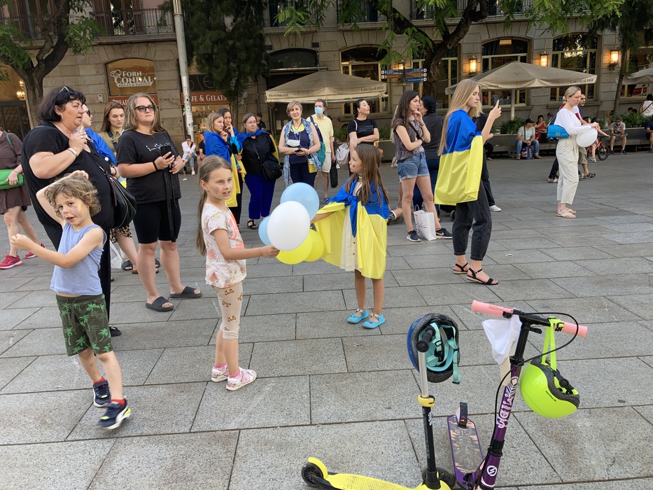4.6.2022 на Plaça Nova в Барселоне состоялась акция памяти. Украинцы просили прохожих надувать белые шарики и затем нанизывали шарики на нитку. Каждый белый шарик символизировал убитого россиянами украинского ребенка, 262 официальных жертв войны. Эту цифру выложили из зажженных свечей. На площади были разложены детские игрушки, детская одежда, коляски, фотографии убитых детей. Люди пели песню Стефания, Гимн Украины. Ведущий мероприятие Остап Петрущак сказал: «Попрошу хвилину мовчання. За усі життя, які забрали. Особливо за 262 офіційні жертв дітей. Це наше майбутнє, і вони у нас його забирають. Кожна кулька представляє життя дитини.»