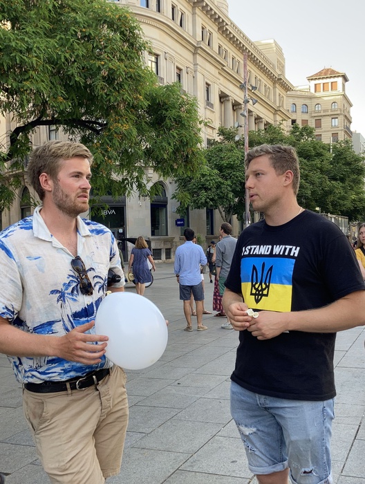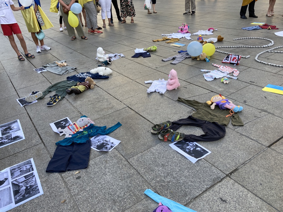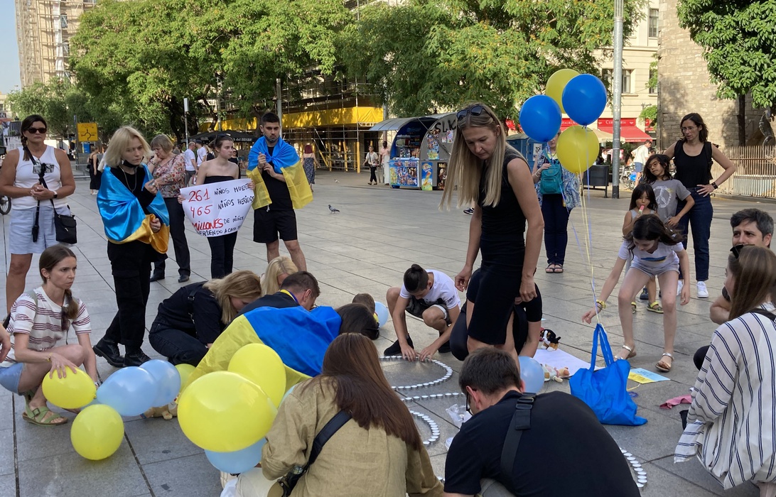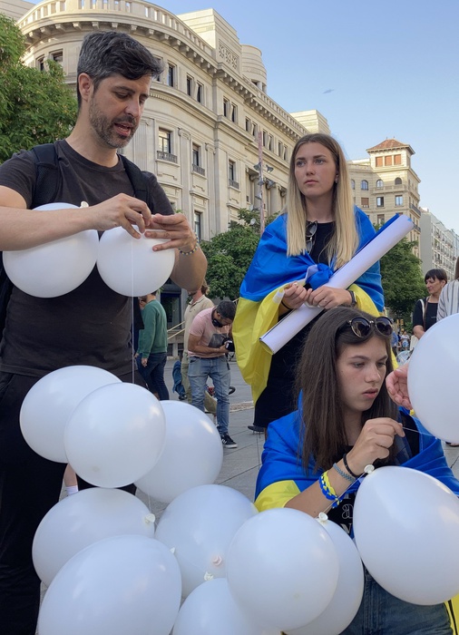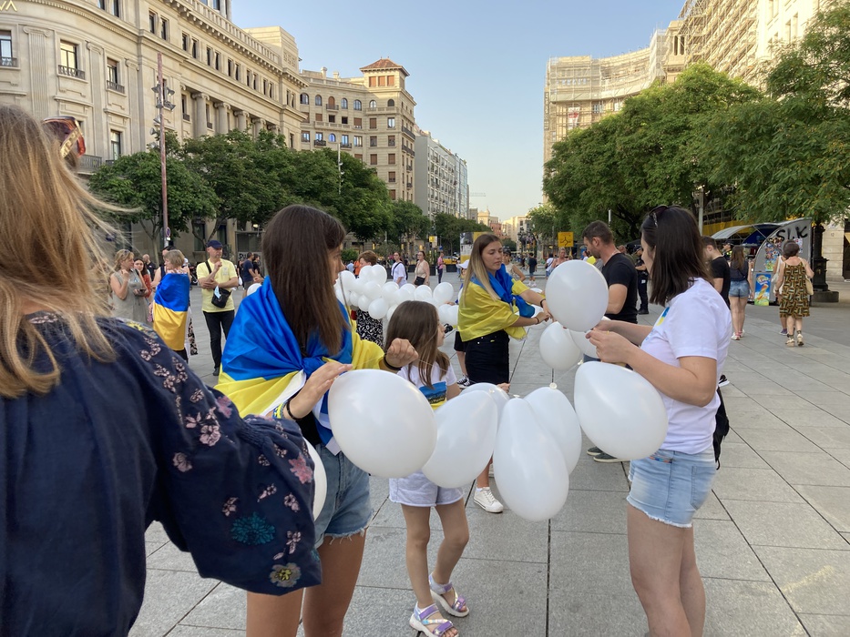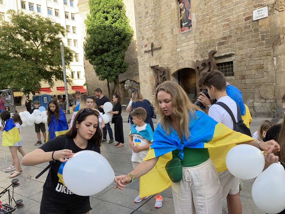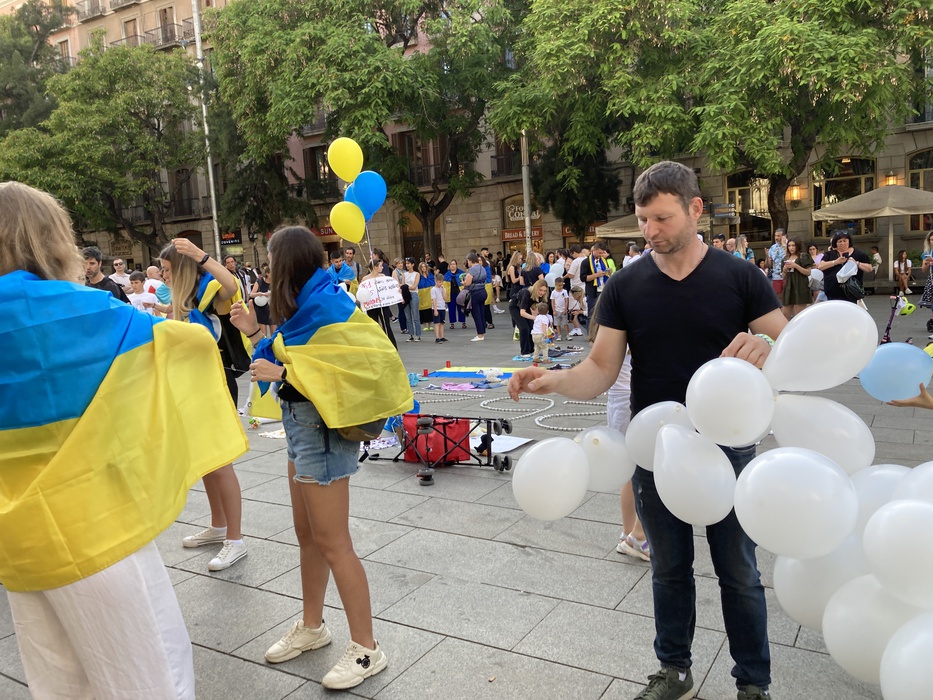A memorial meeting was held on June 4 at Plaça Nova in Barcelona. Ukrainians asked passers-by to blow up white balloons, each symbolizing a Ukrainian child known to have been killed at the hands of Russian soldiers, which were then joined together by string.