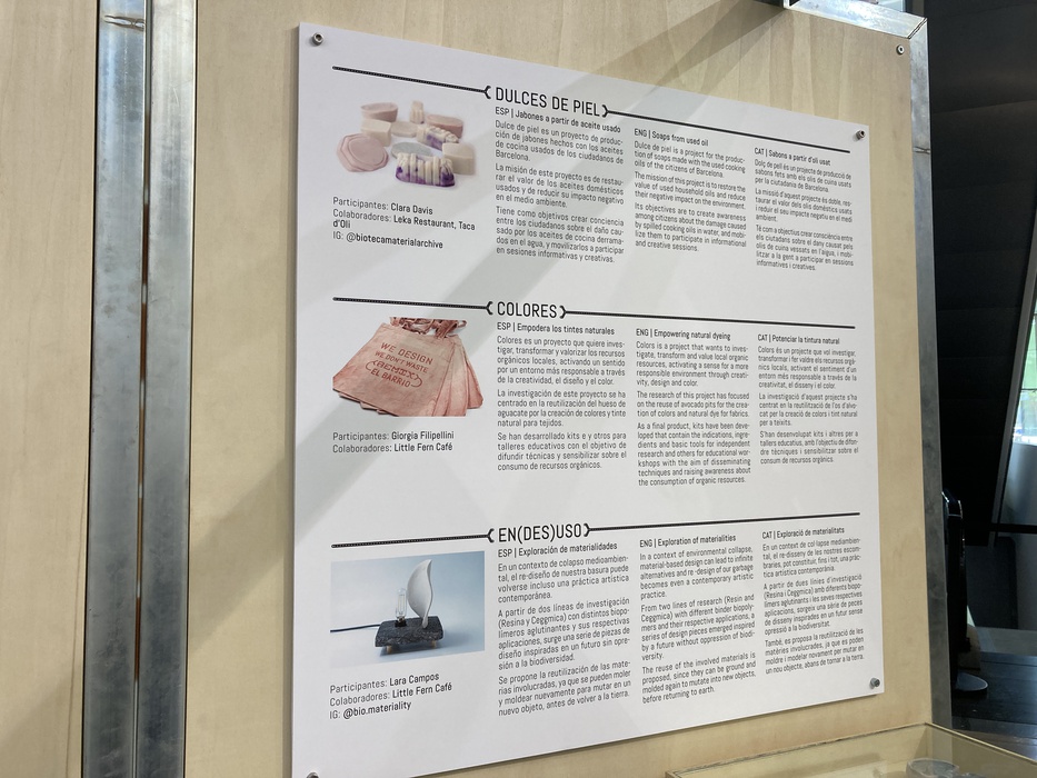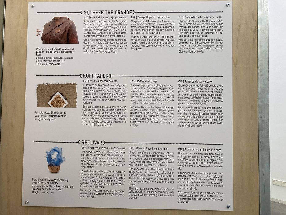 Выставка биоматериалов из пищевых отходов «Remix El Barrio» проходила в барселонском Музее дизайна с 19.03.21 по 29.04.21 при содействии MATERFAD, Centro de materiales de Barcelona.