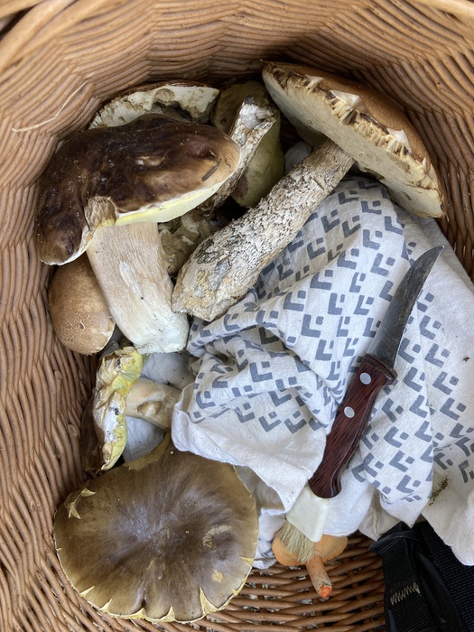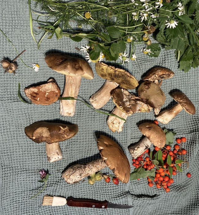 Много условносъедобных и ядовитых грибов, подосиновиков и подберезовиков очень мало (это за всё время — с 11 до 16 — 7 км — 14 этажей, 12 000 шагов):