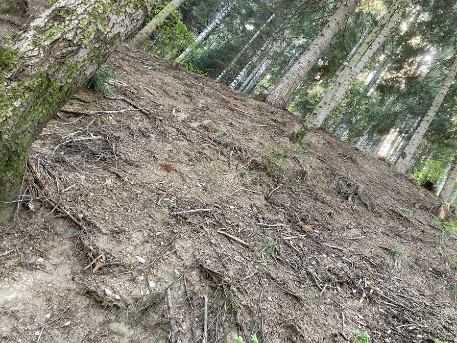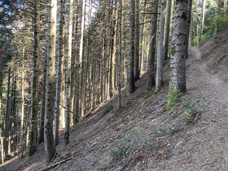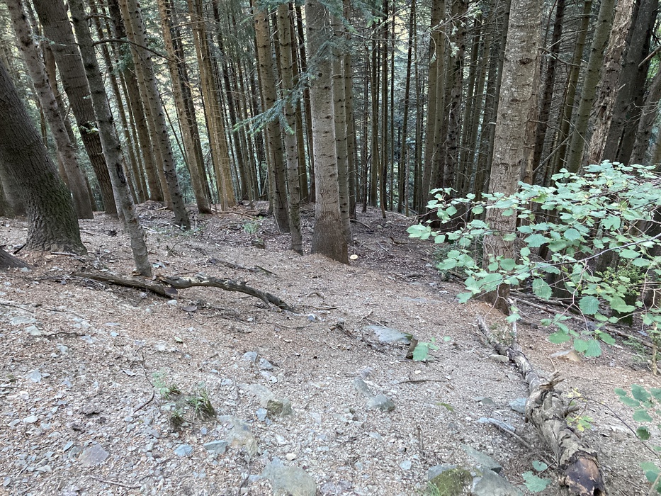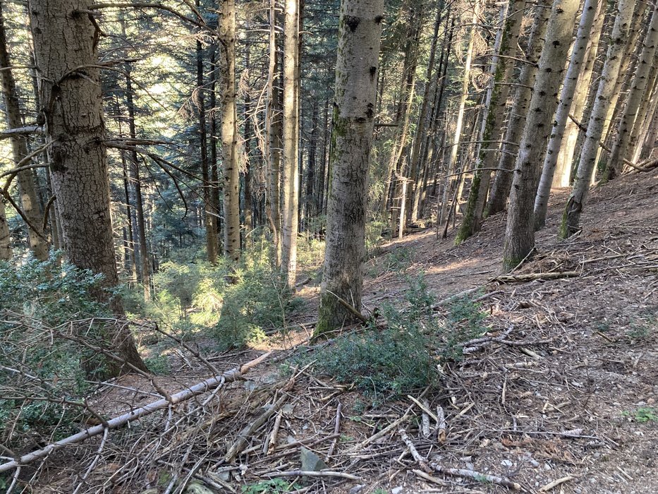 Основная дорога вдоль горы. Через пару км есть и пологие участки леса, правда на них ничего не растет.