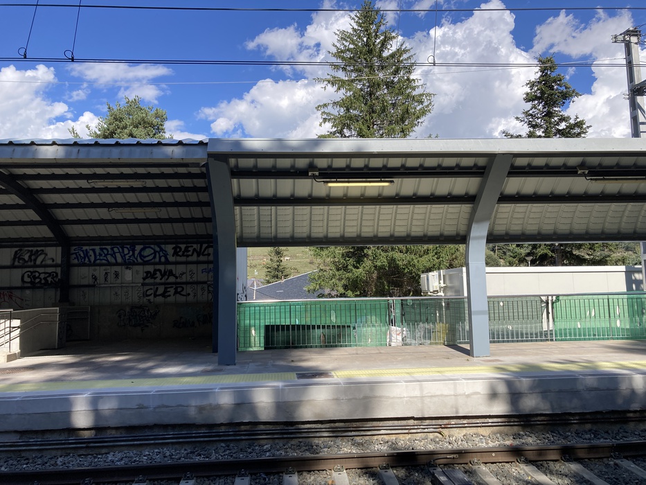 Воскресенье означает, что расписание максимально неудобное. Цивилизация закончилась прямо после посадки в поезд, на станции уже не было ни магазина, ни кассы, ни туалета. Более того, вторая платформа не была рабочей, и все проходящие мимо поезда (и туда, и обратно) отправлялись именно с той платформы где станция — чего пассажиры не знали, и на обратном пути все были вынуждены перебегать по подземному переходу с двумя лестницами — чтобы успеть на поезд который ходит раз в 4 часа.