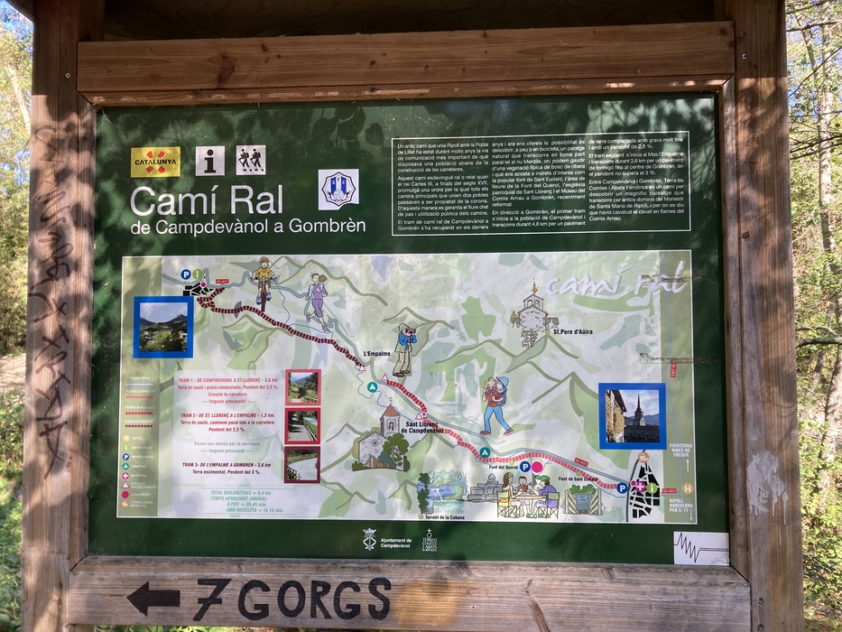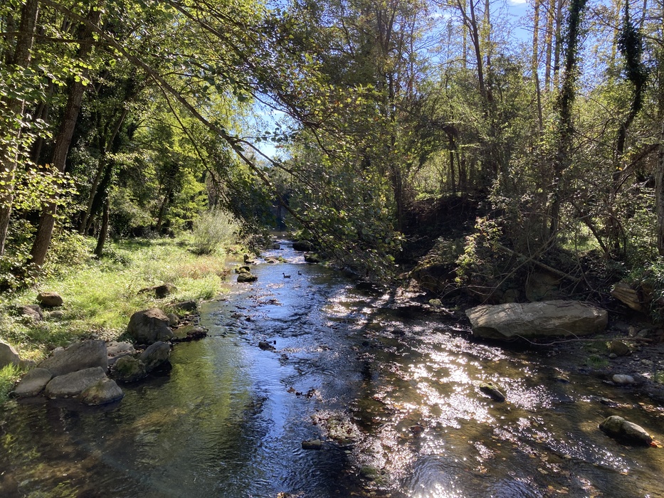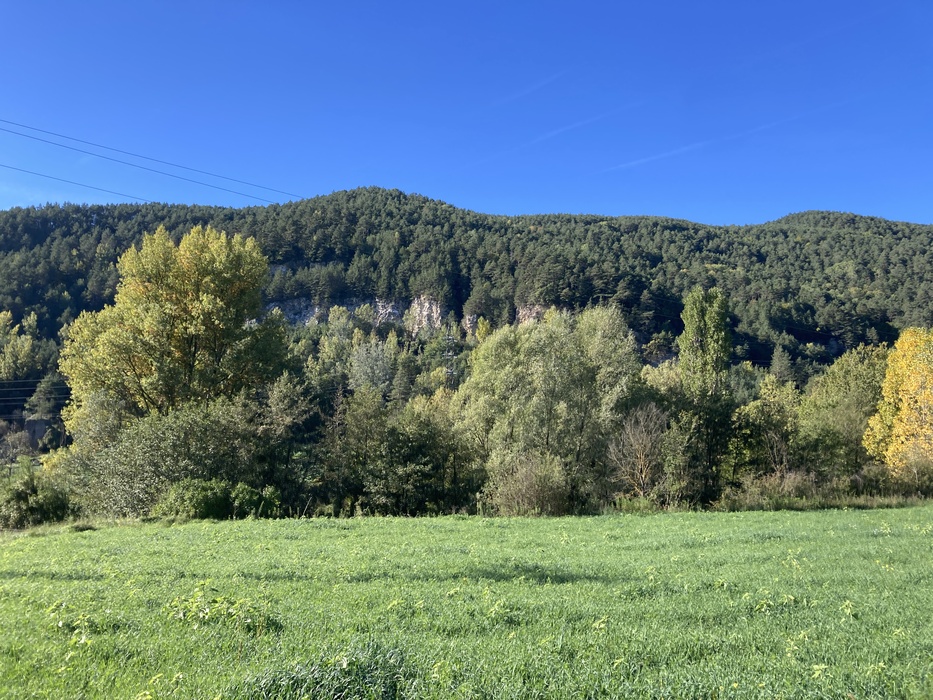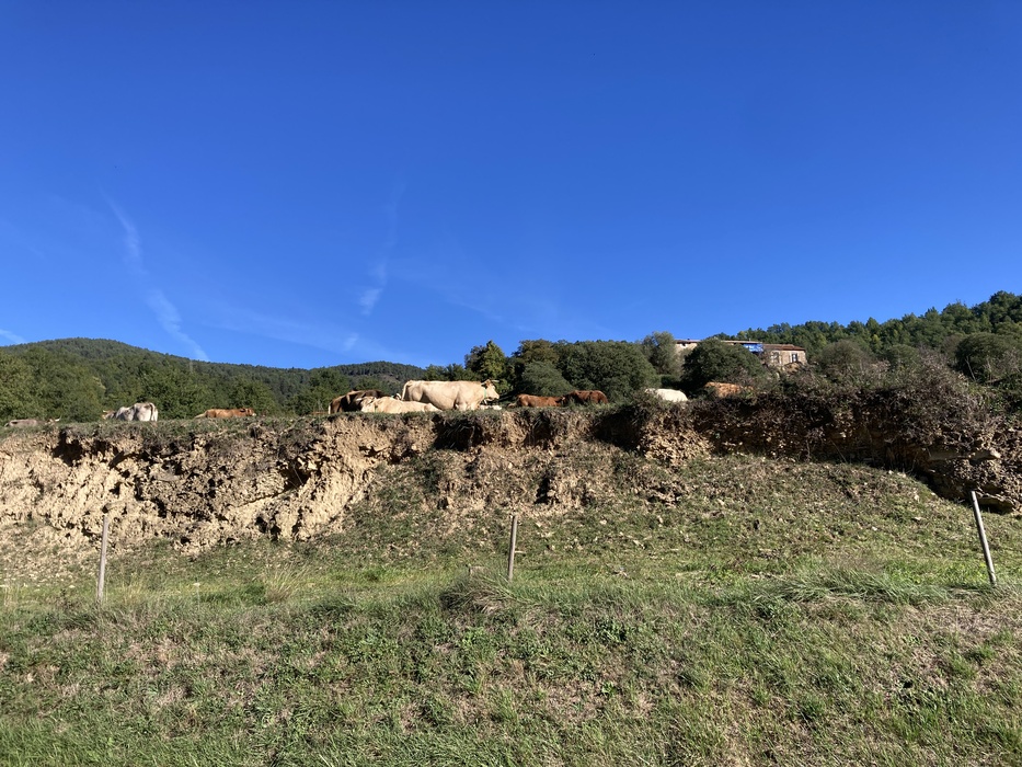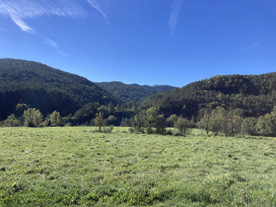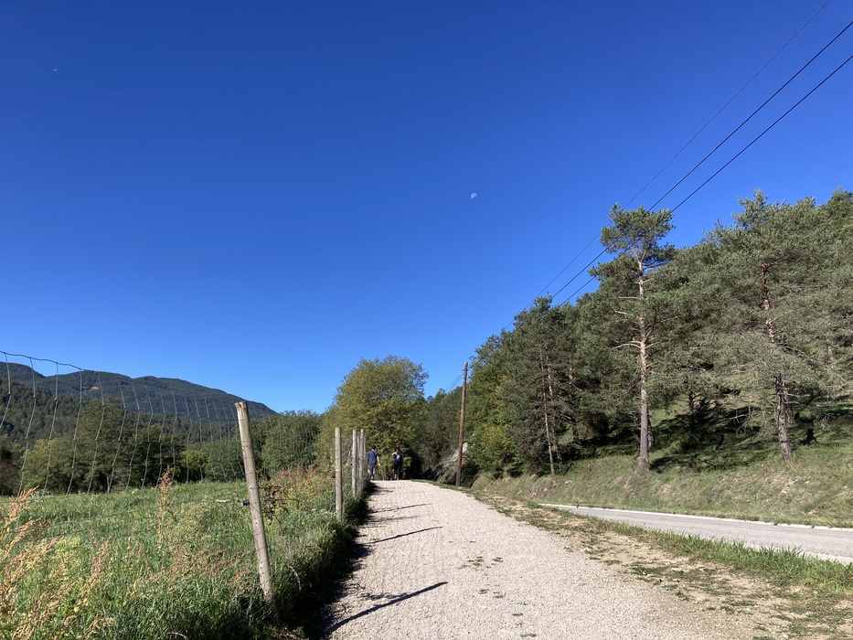 От станции надо идти 30 минут пешком до начала маршрута к 7 водопадам (Ruta dels 7 gorgs) — в этом рассказе водопадов не будет, так как я собрала корзинку на первом холме и уехала домой.