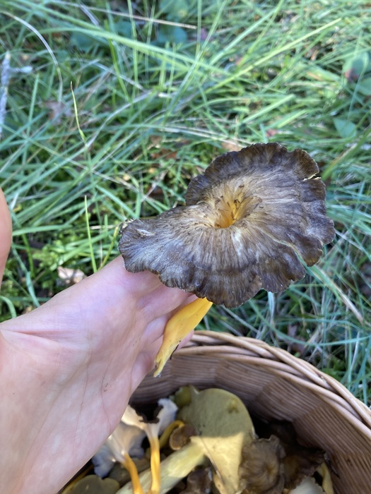 Моховики сразу скрылись под трубчатыми лисичками.