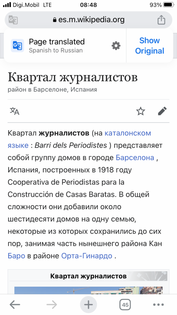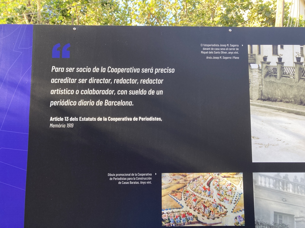 Волочась с очередным грузом по барселонским улицам, обнаружила стенд, рассказывающий, что в прошлом веке тут был создан кооператив и выстроен целый квартал особняков для журналистов. https://es.wikipedia.org/wiki/Barrio_de_los_Periodistas