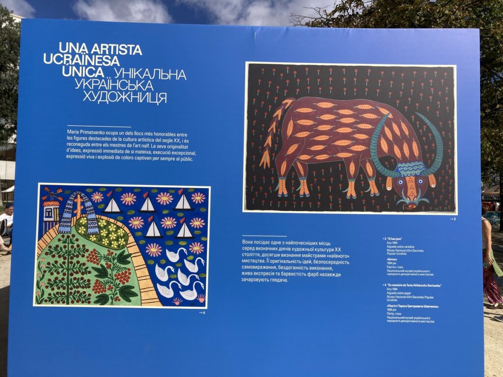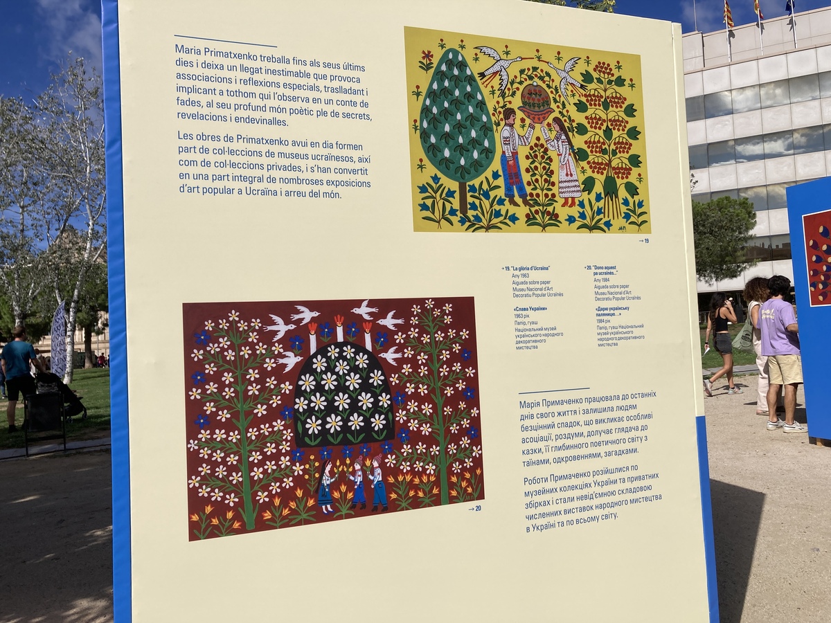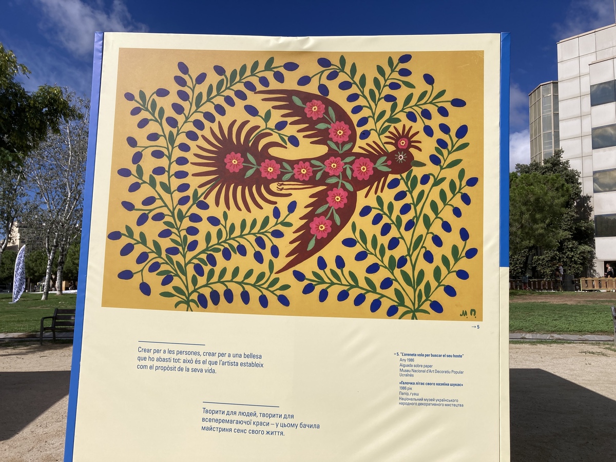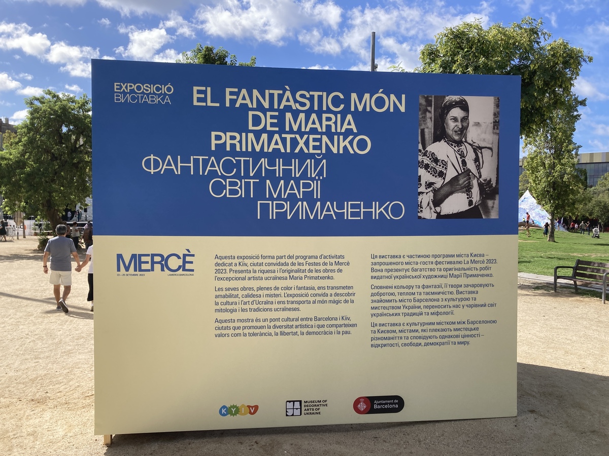 «The city of Barcelona immerses itself in Ukrainian culture and art through the exhibition dedicated to Maria Prymachenko (1908-1997) as part of Mercè 2023, one of the most universal Ukrainian painters. Her paintings, full of colour and imagination, transport us to a magical world and bring us closer to the tradition and mythology of Ukraine. The exhibition, set within the programming of Kyiv as the guest city for Mercè, serves as a cultural bridge between Barcelona and the Ukrainian capital, a meeting that celebrates artistic diversity and exchange between two peaceful, open, and supportive cities.