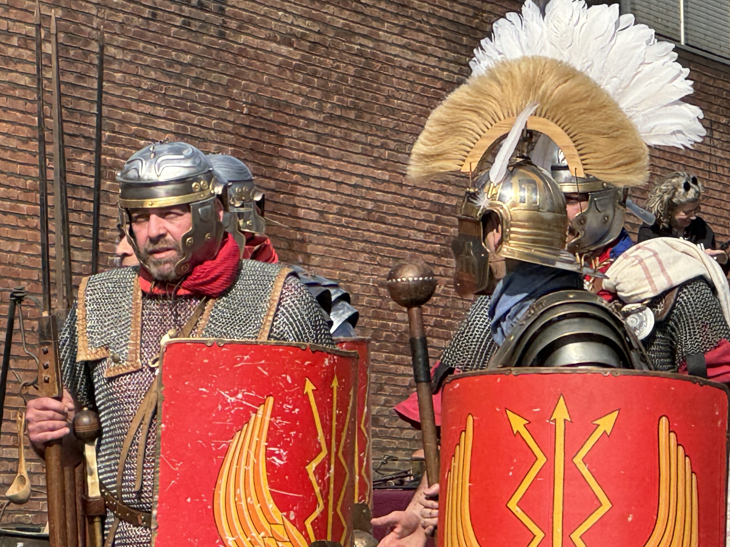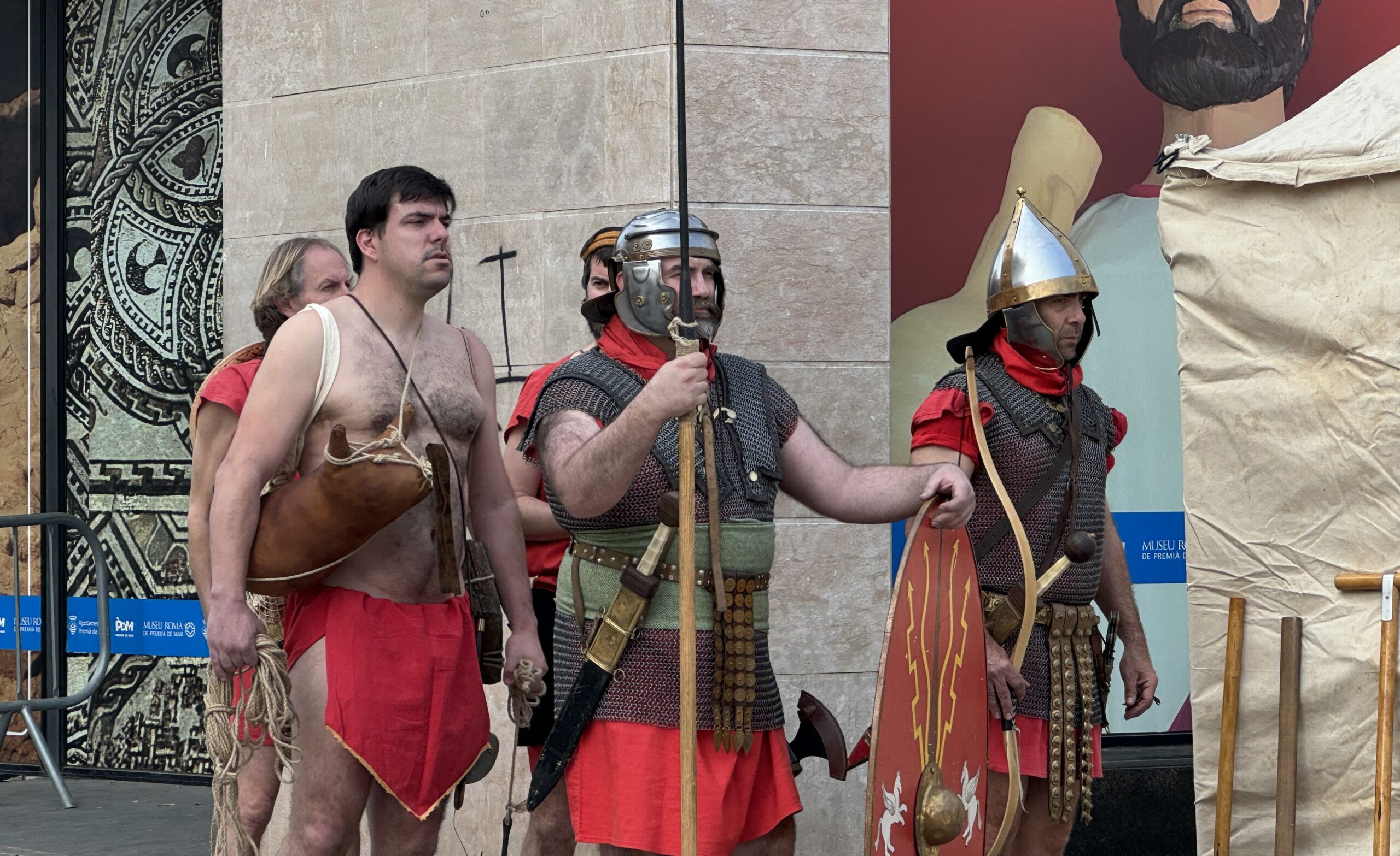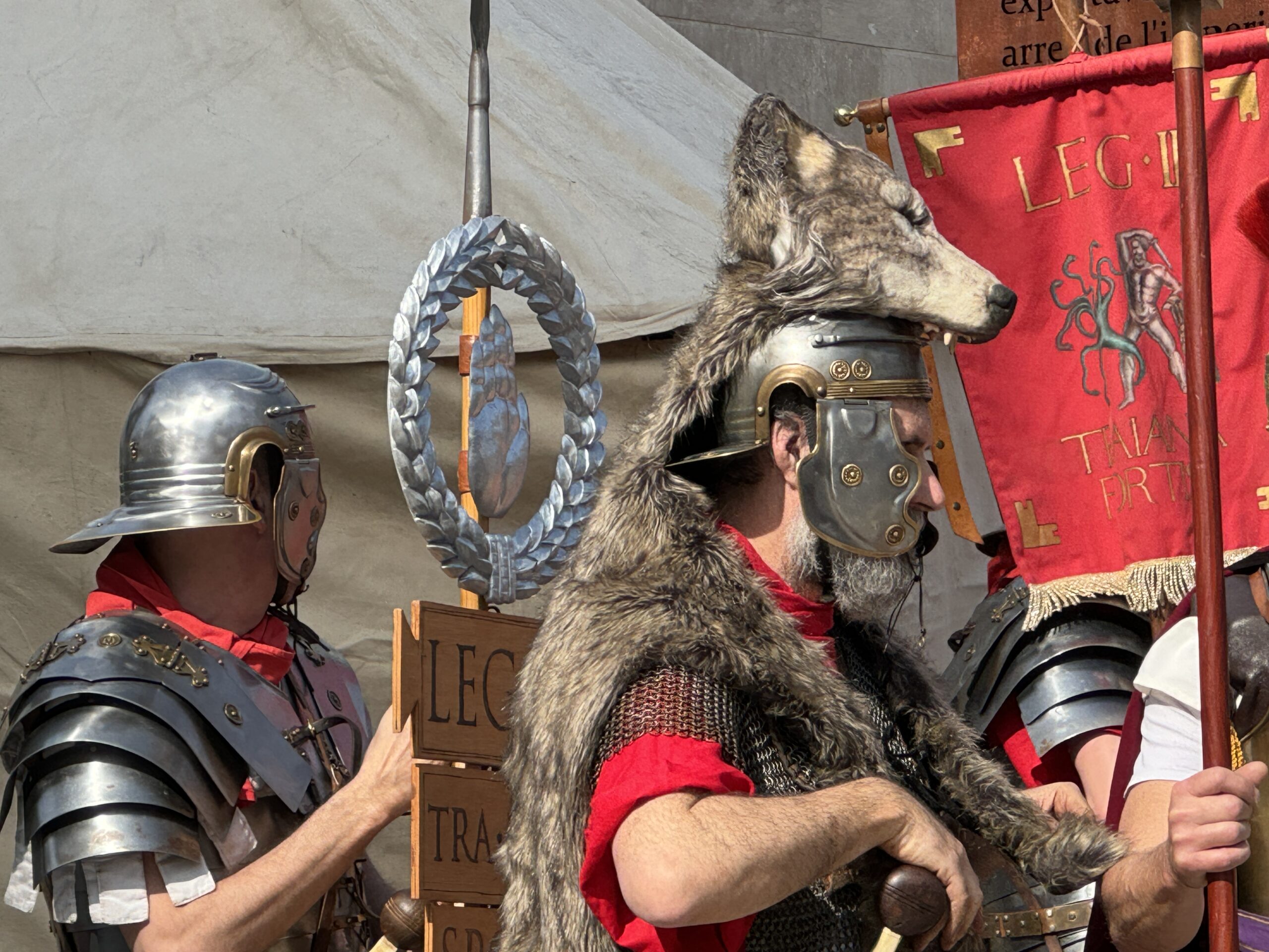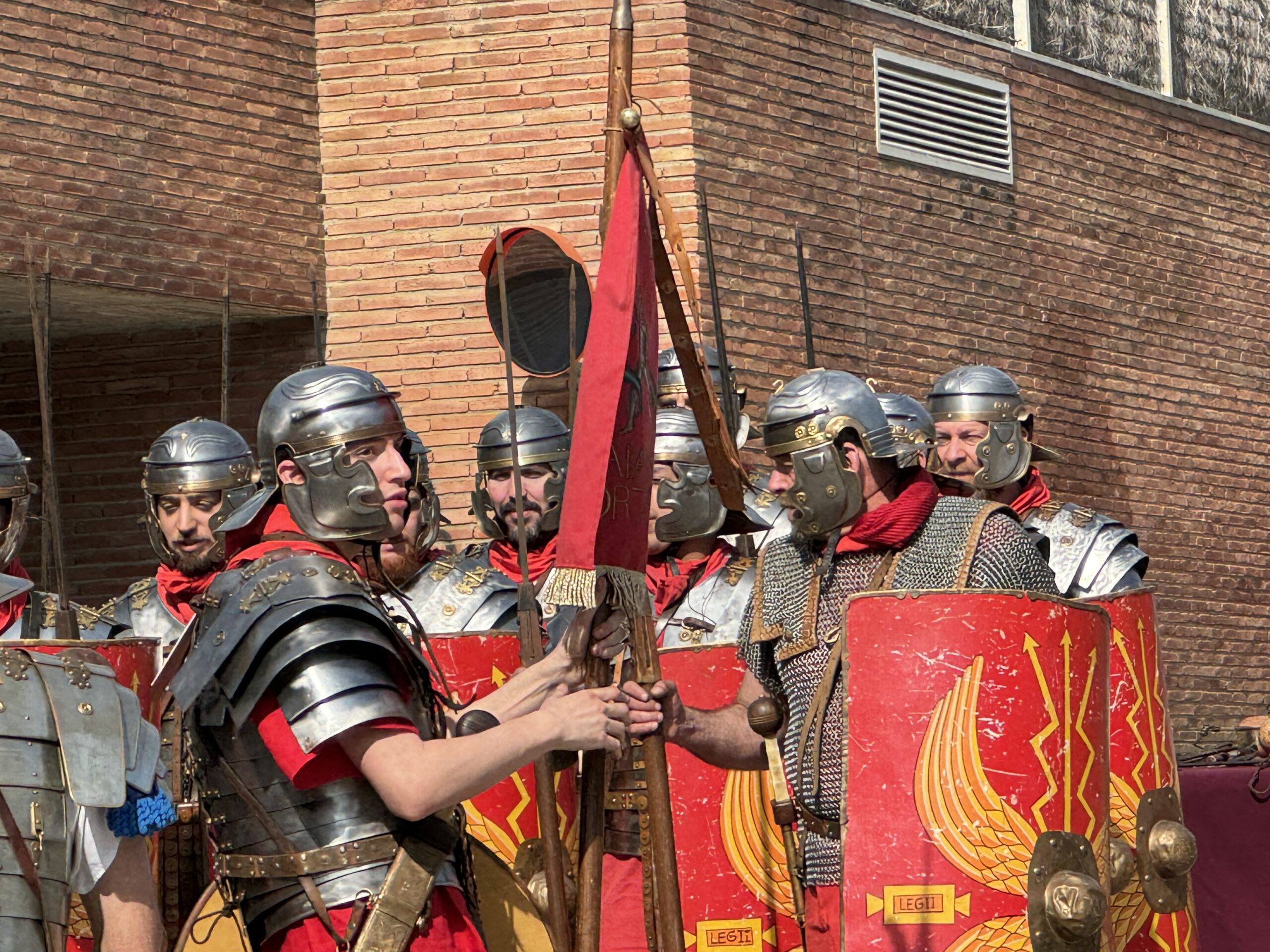 Exhibició de maniobres i tàctiques militars de legionaris romans de la Legio II Traiana Fortis-Cohors I Barcinonum, a càrrec del grup de reconstrucció històrica Barcino Oriens.