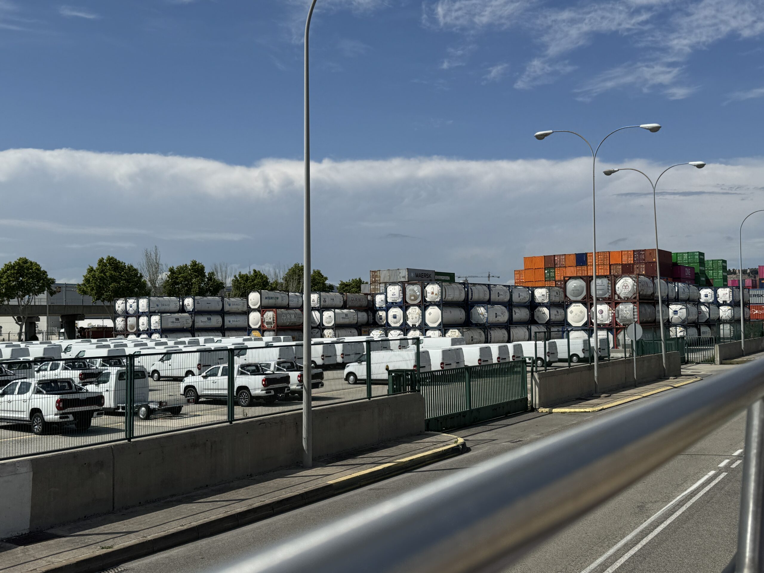 Из миллиона мероприятий, посвященных Кубку Америки (яхты), я была (1) на пении хабанер. Вся идея заключалась в названии. Хабанеры — песни кубинских моряков о том, как они будут плыть, уплыли, плыли, приплыли, страдают. А женщина существует, ждёт, не ждёт, плохая, хорошая, а если не женщина, то мама. Вы все знаете хабанеры — «О голубка моя» или Кармен: «Меня не любишь но люблю я»… Этот концерт я тоже поснимала на видео, смогу — выложу, развивает. А еще одно меро Кубка (2) — это экскурсия по порту на двухэтажном автобусе. Вернее, когда я на нее регистрировалась, не особенно было понятно, что и где будет. В совершенно необъяснимой точке, о которой не было написано в анонсе — разыщи сам как хочешь — нас посадили в автобус, выдали наушники, в которых ничего не было слышно, а также белые кепки от солнца с надписью Порт Барселоны. Кепка бы улетела, если бы я не взяла с собой норвежскую куртку, а также гору другой одежды, включая перчатки и шарф. Был сильный ветер — как обычно и бывает на море. Фото со второго этажа автобуса — необычный ракурс, выглядит как хоть сейчас на выставку. Ну и виды, которые нам показывали — обычно не попадёшь. Цистерны типа я-здесь-Абдула. Собственная железная дорога в порту. Машины кое-где стоят открытые — может, чтобы не самозагорались. Были и другие экскурсии — брожение по территории, катание на кораблике. Но этим меня заманить не удалось, так что только автобусные фото, 276 штук.
