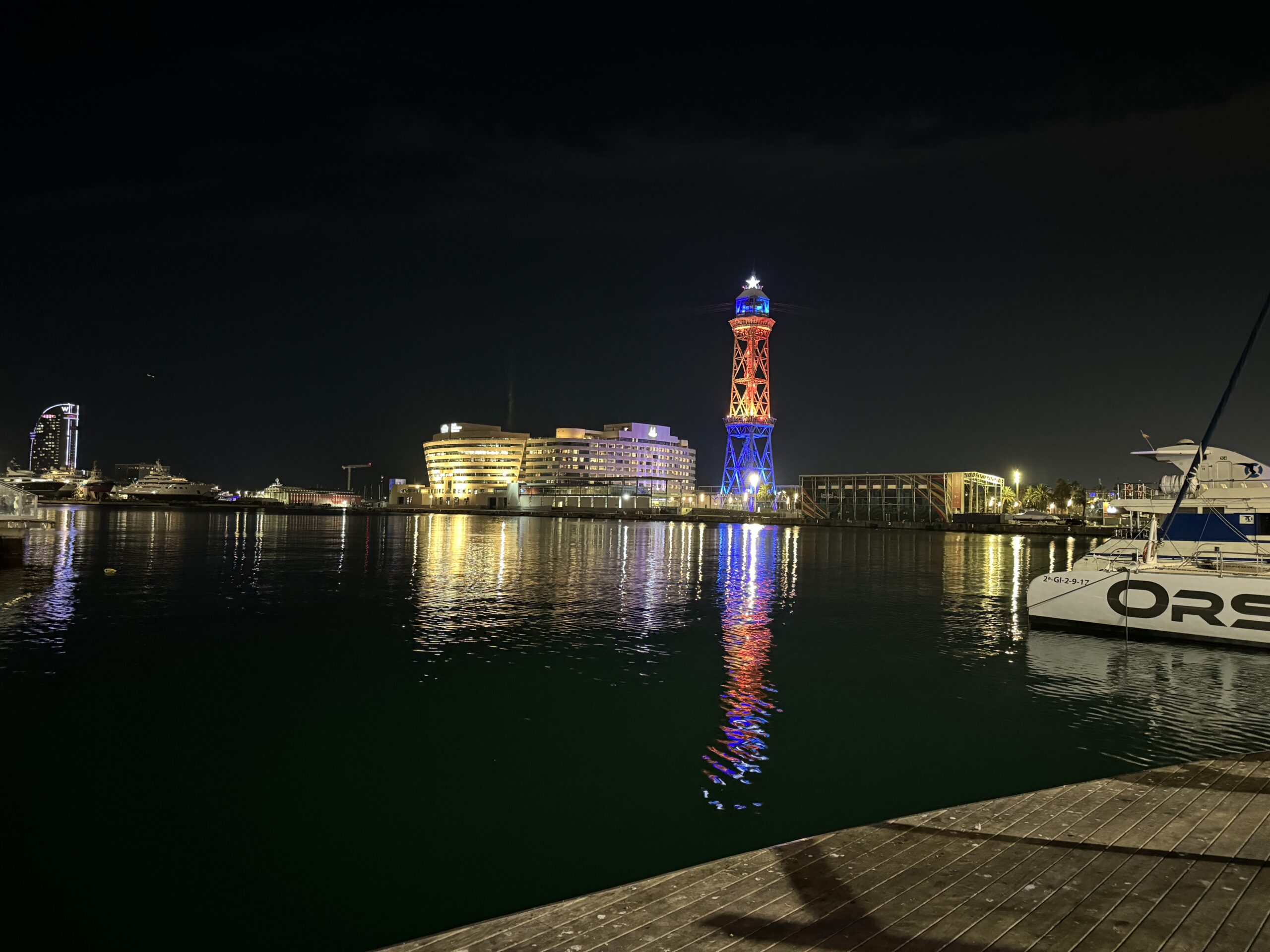 Ёлка-вышка около Всемирного торогового центра в Барселоне.