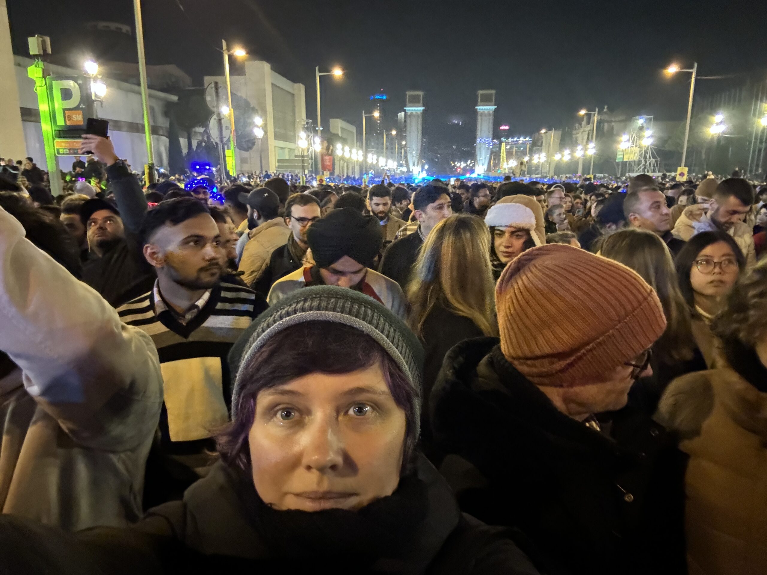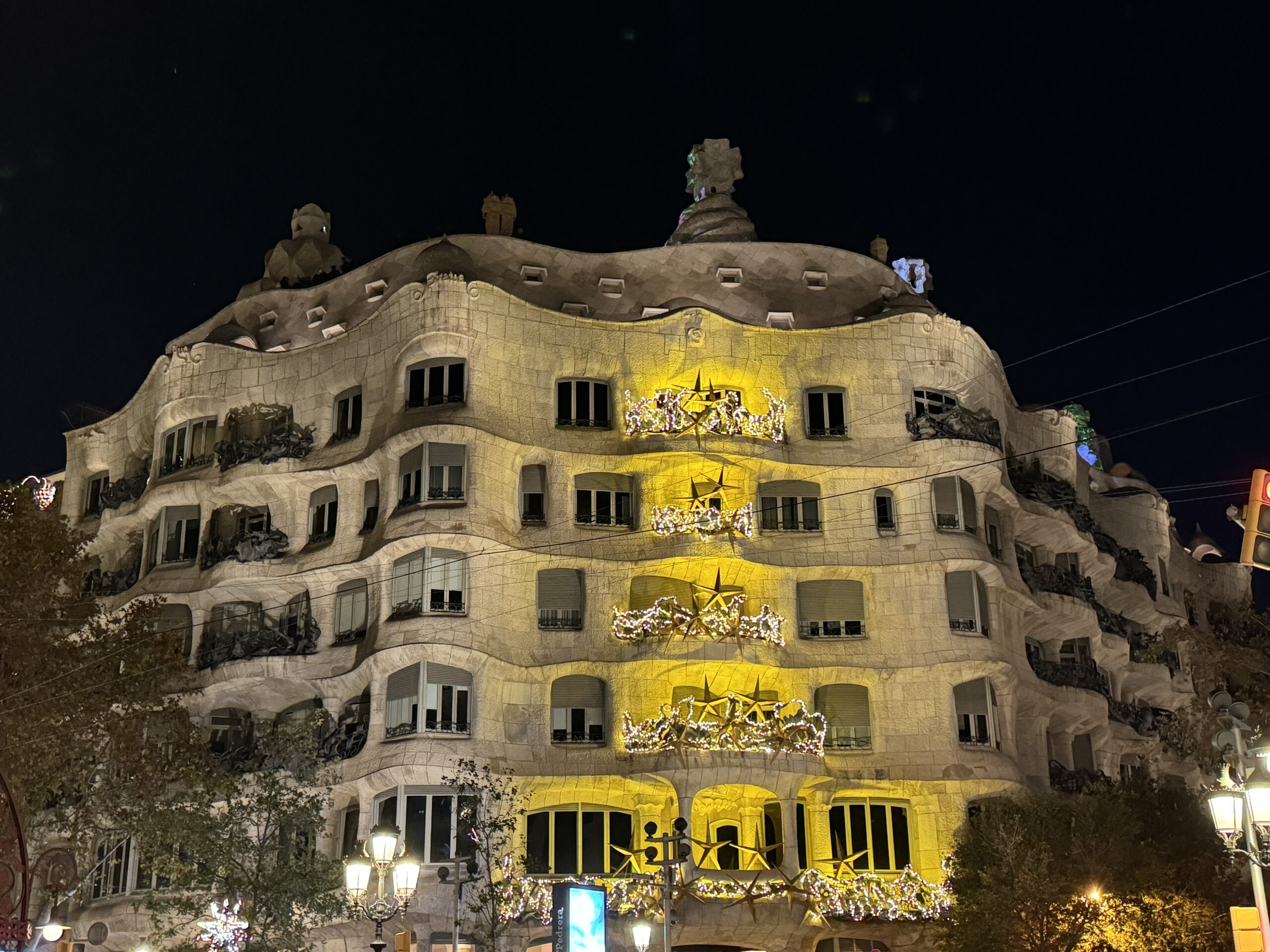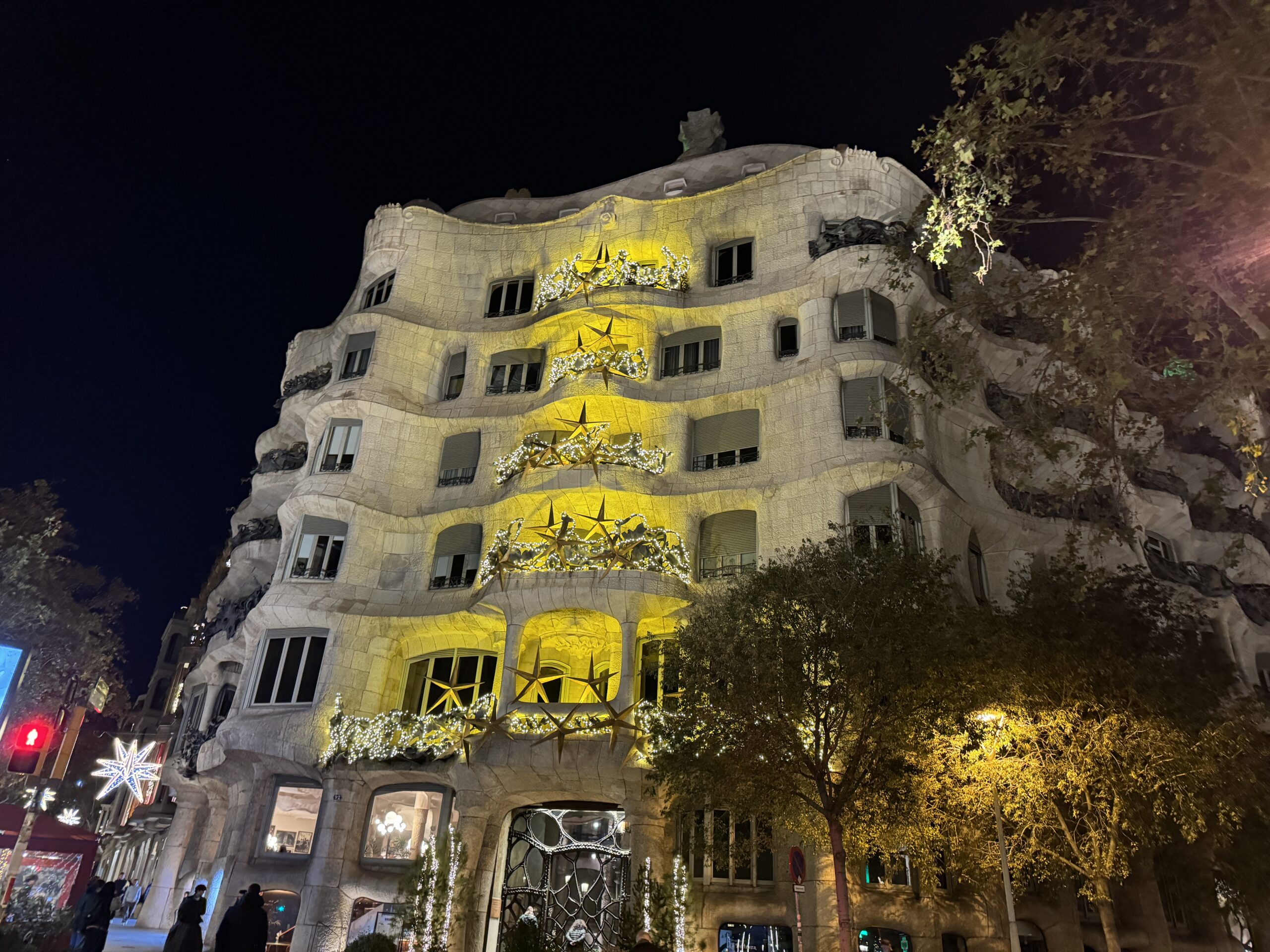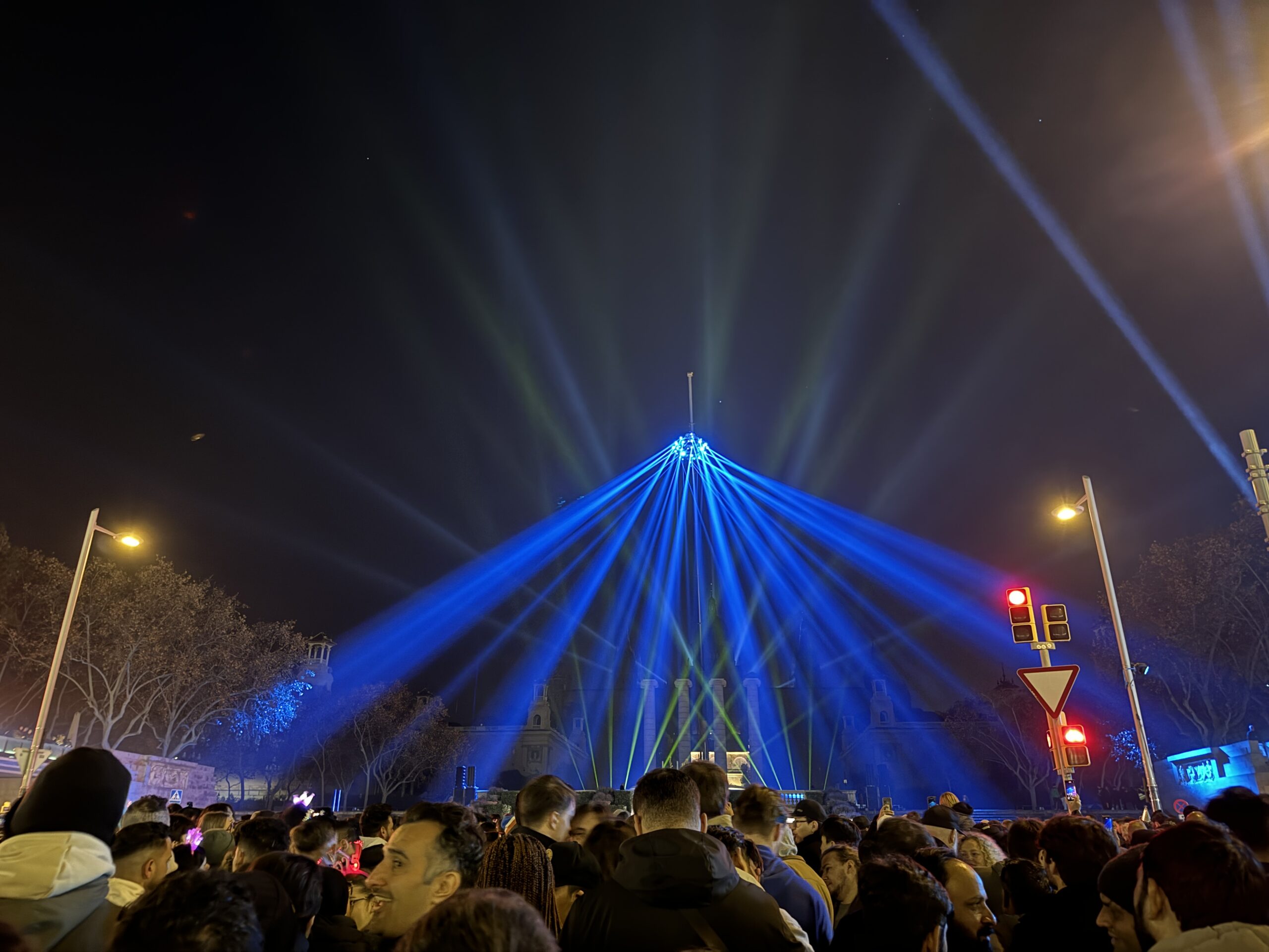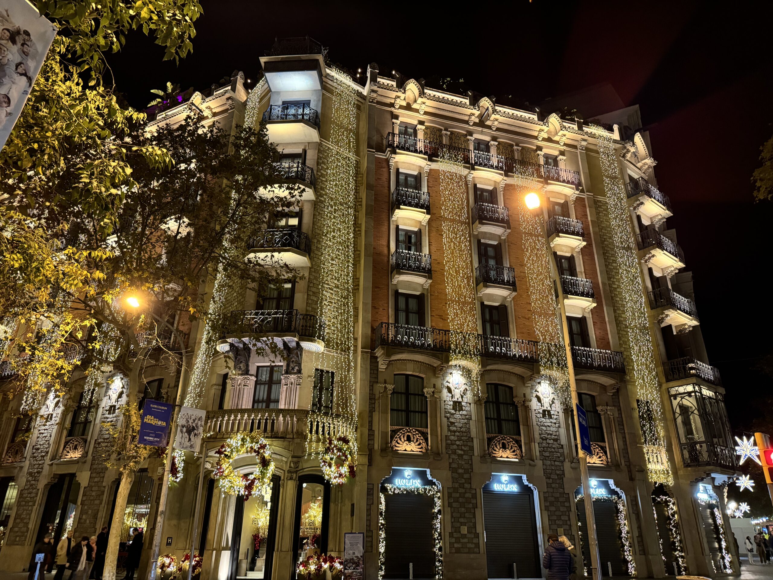 Последний, если я правильно поняла, год конкретно этих украшений на Пасеч де Грасия. В прошлом году ещё оставались бабочки, в этом их заменили звёздами в стиле новой звезды Саграды.