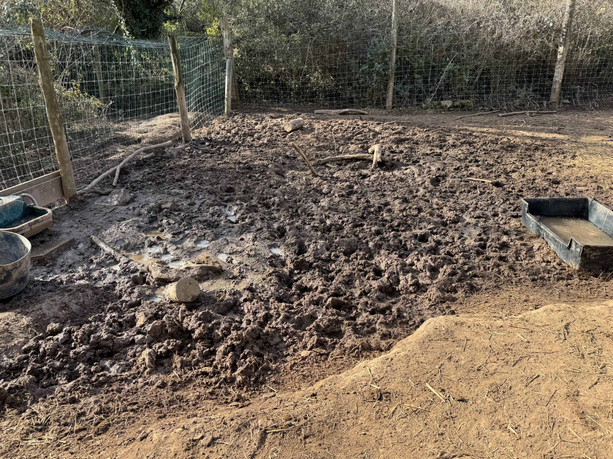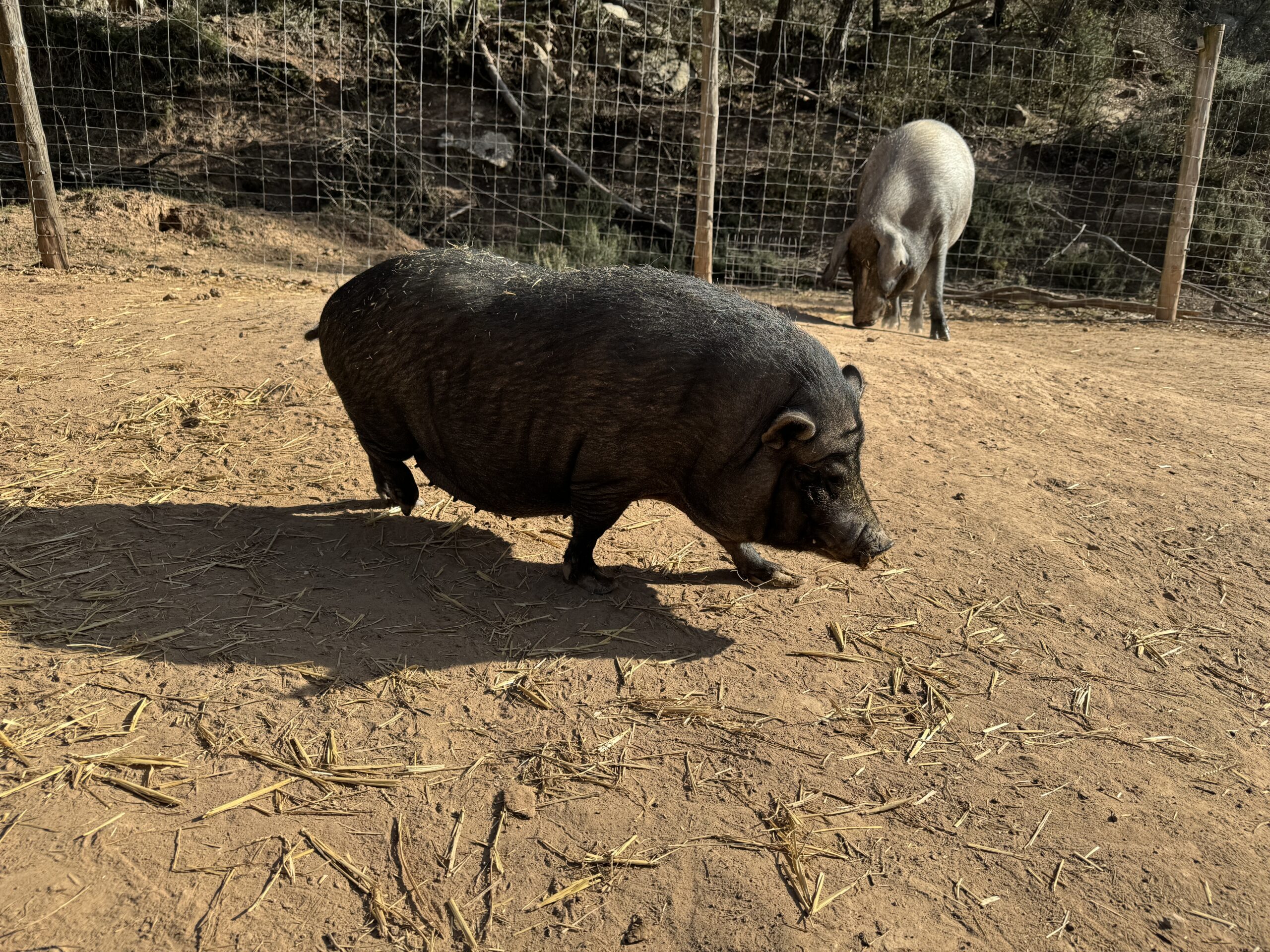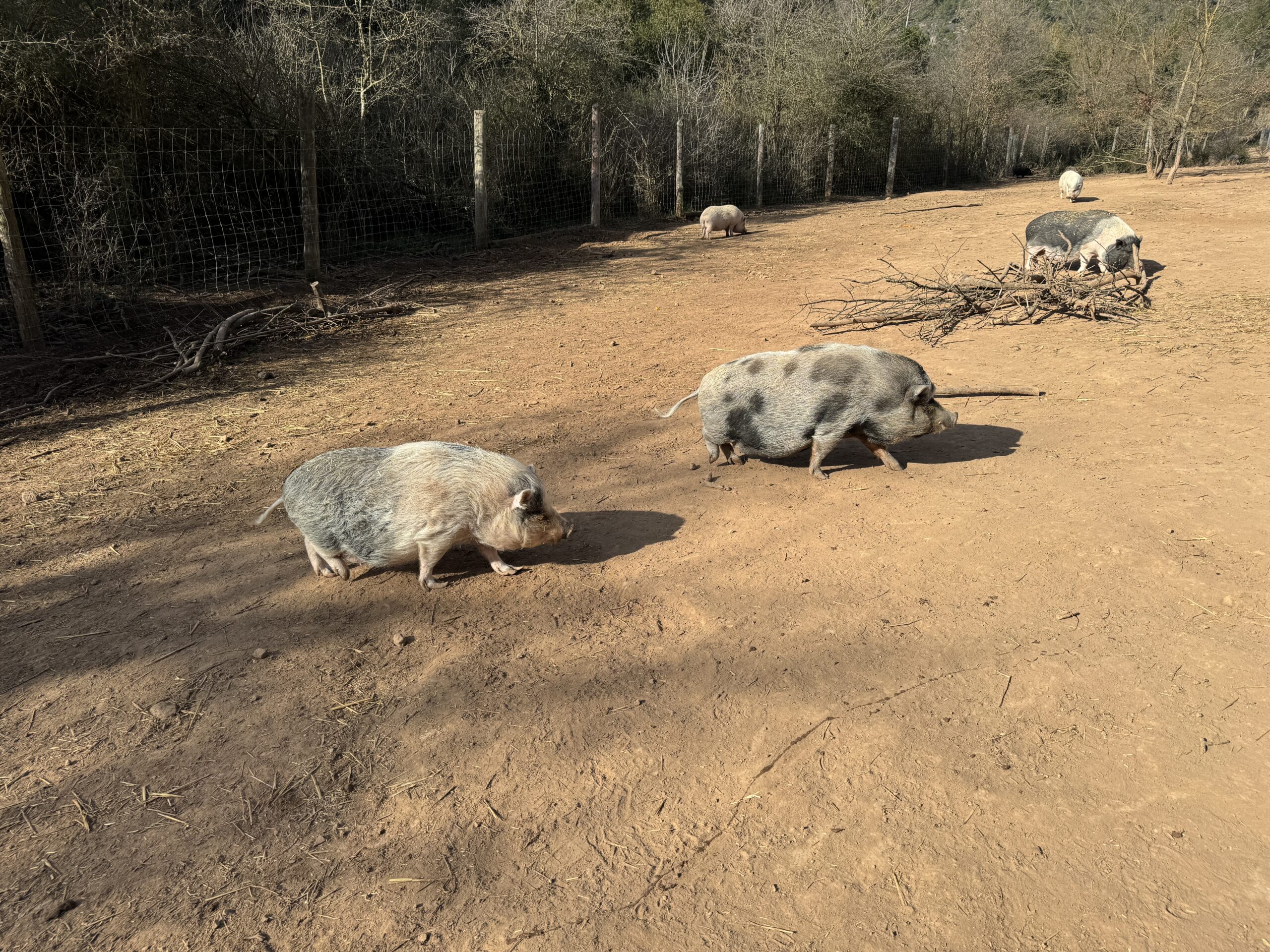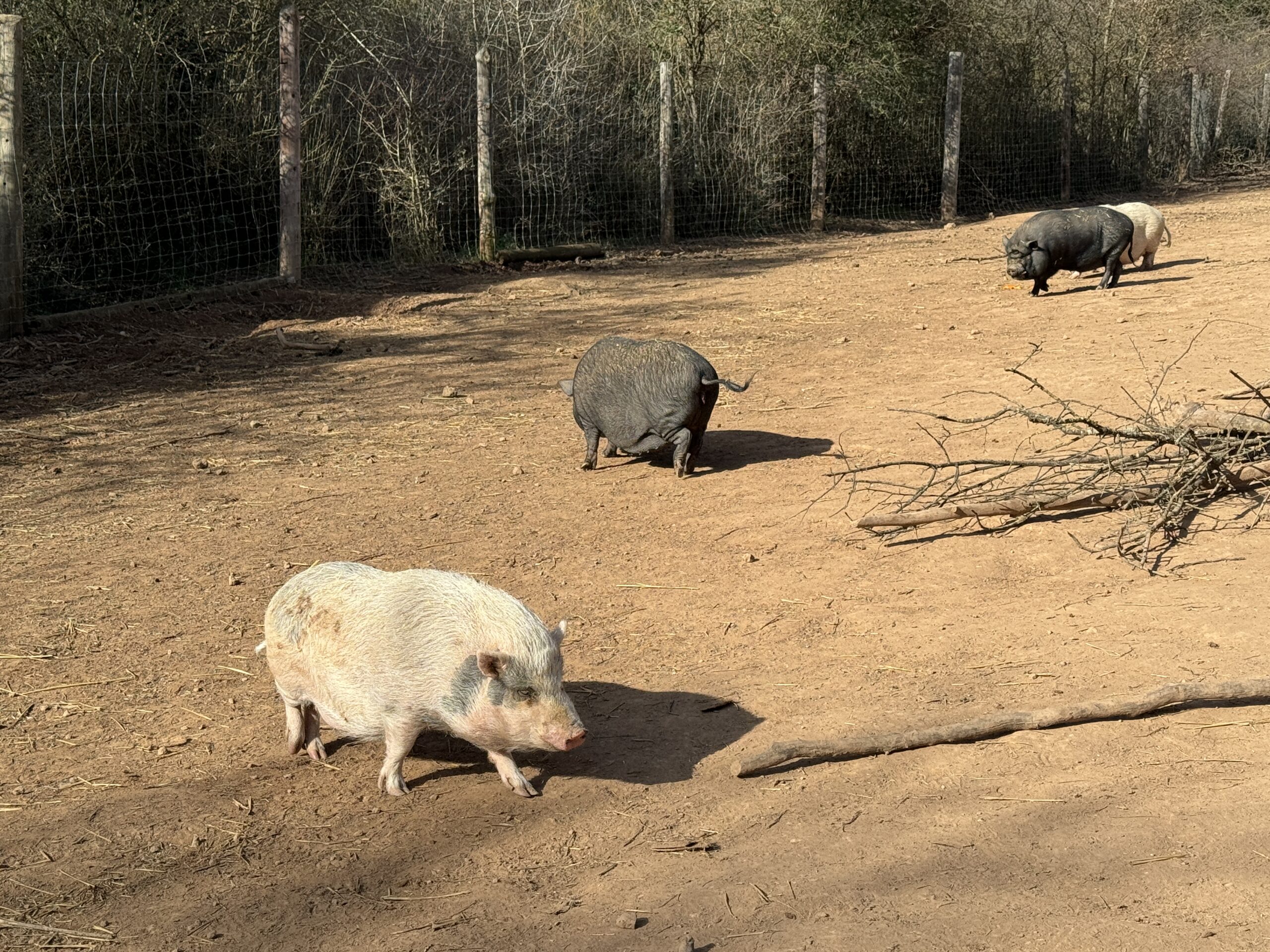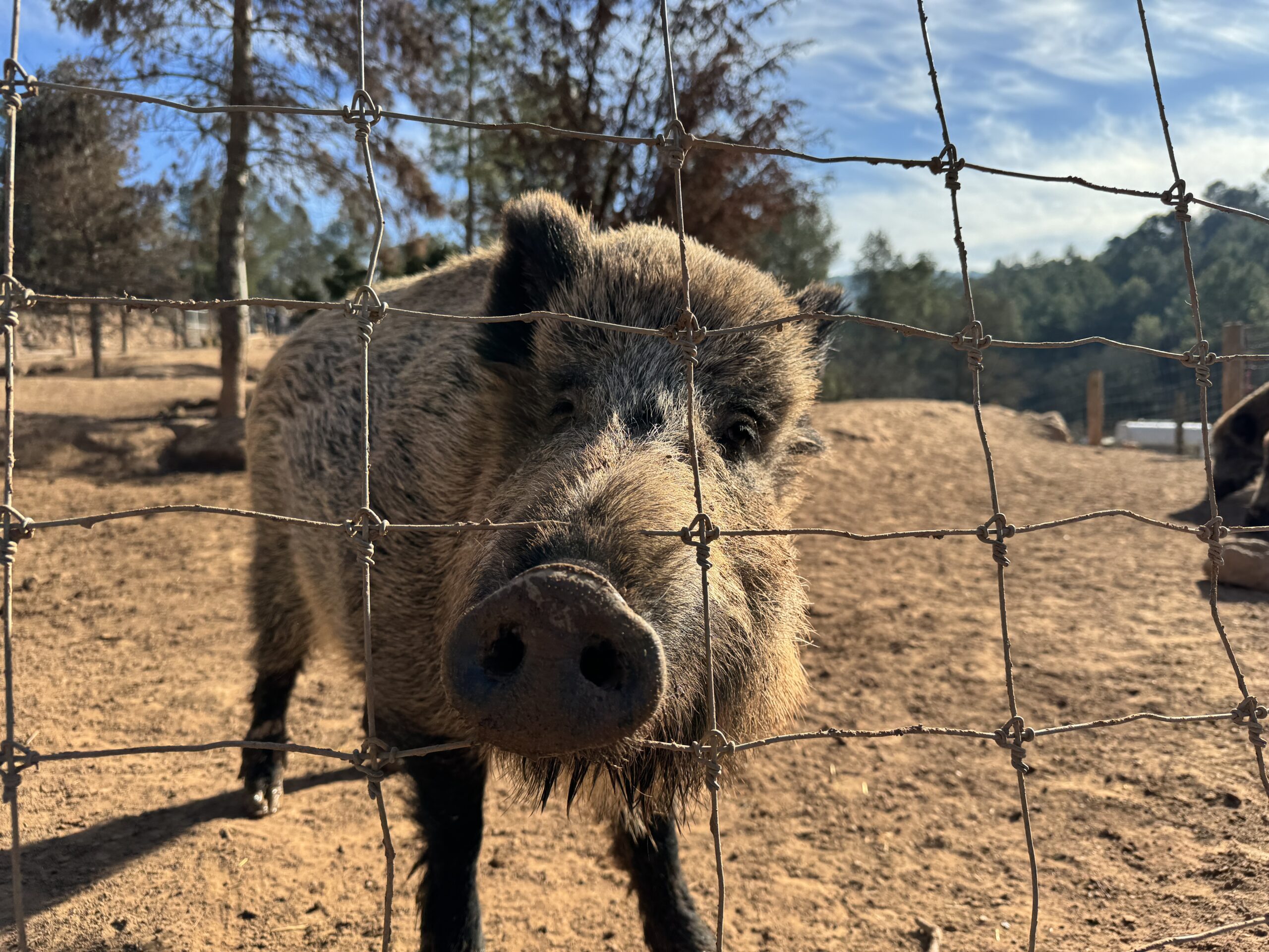 Одомашненные и дикие животные живут в разных частях заповедника. Есть зоны для адаптации вновь прибывших. Это зона диких кабанов: