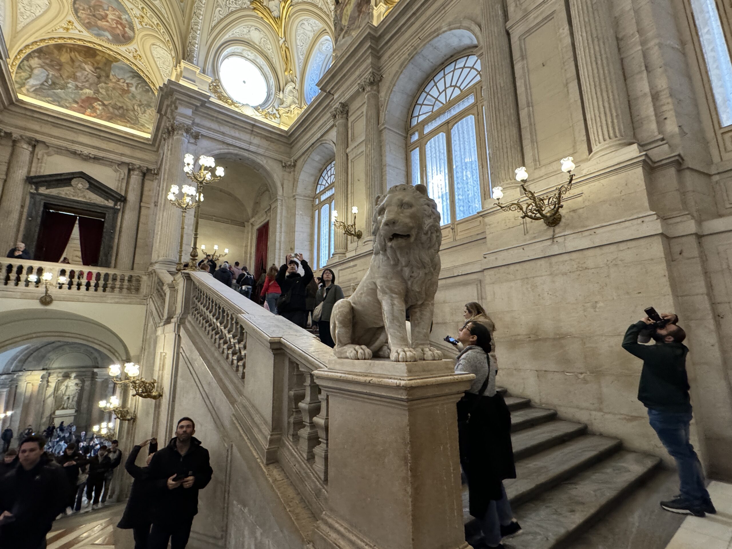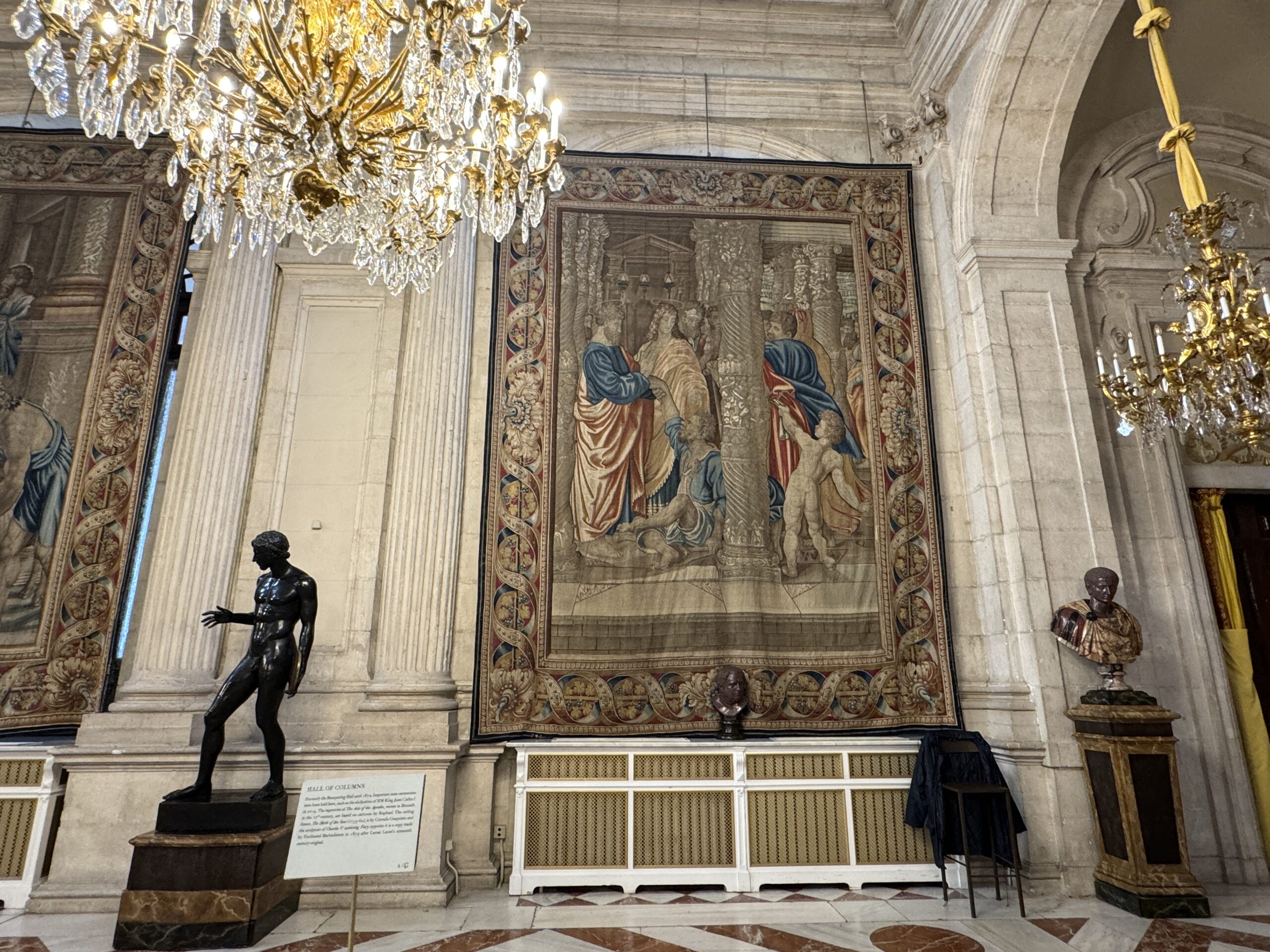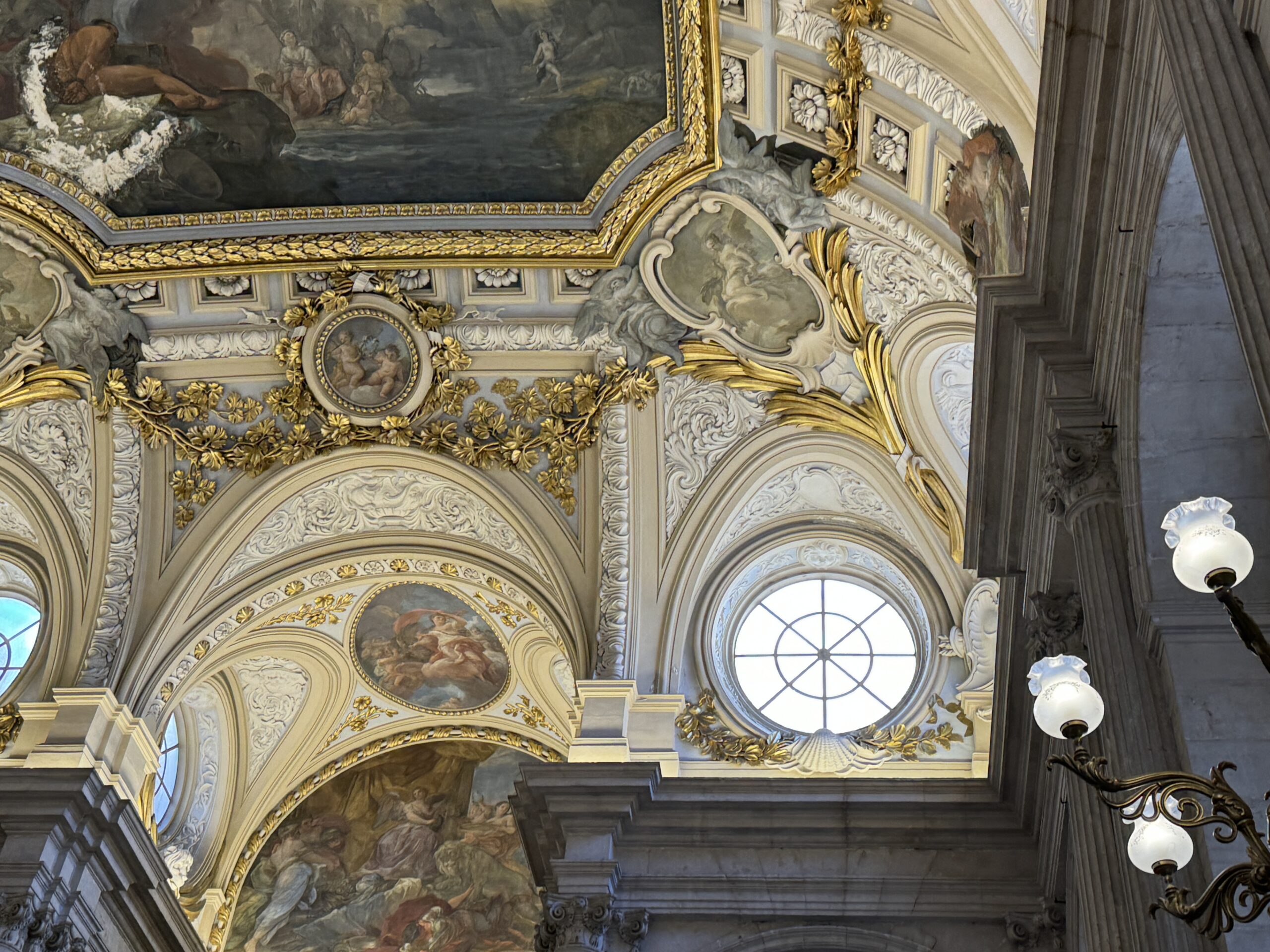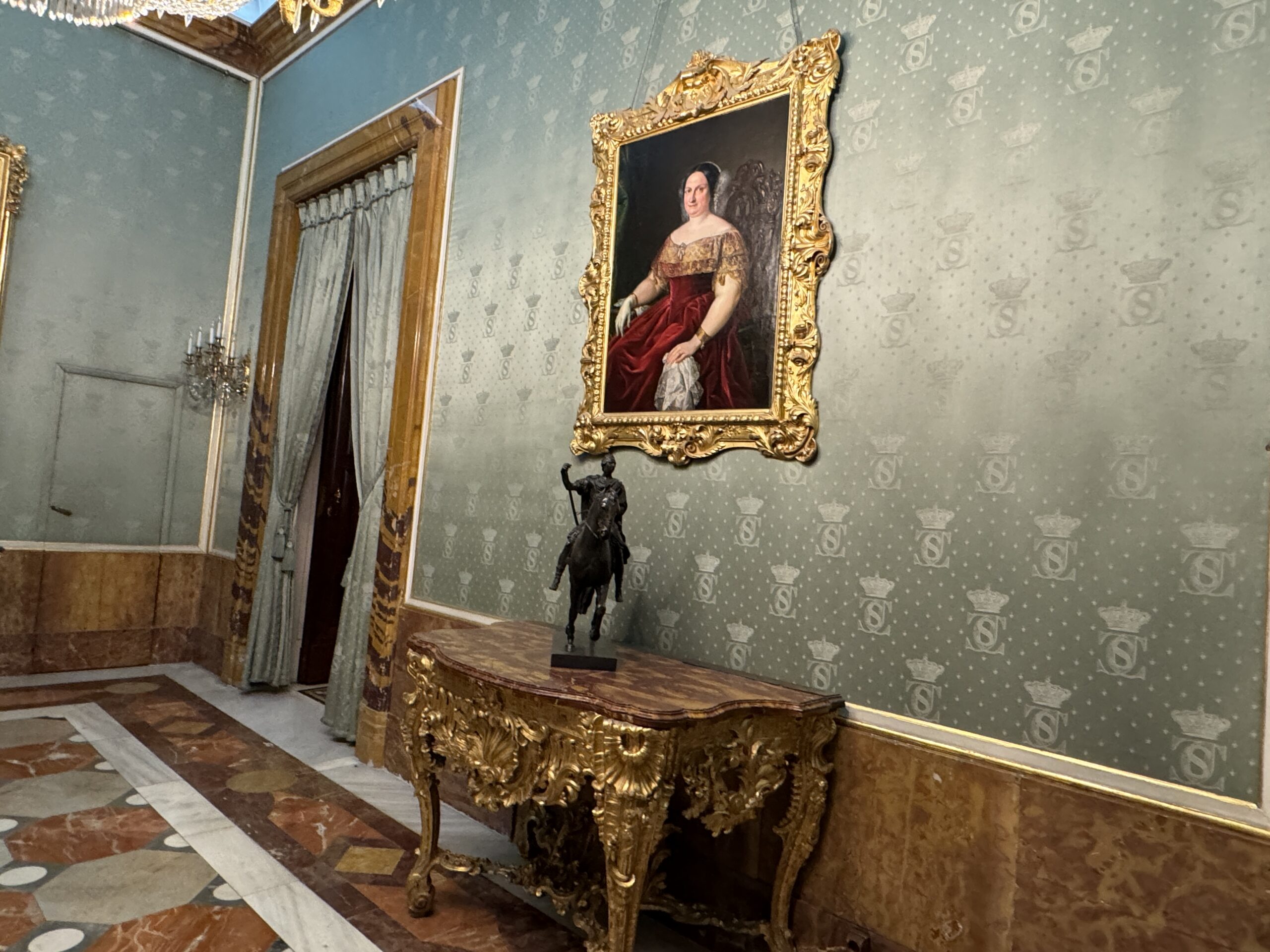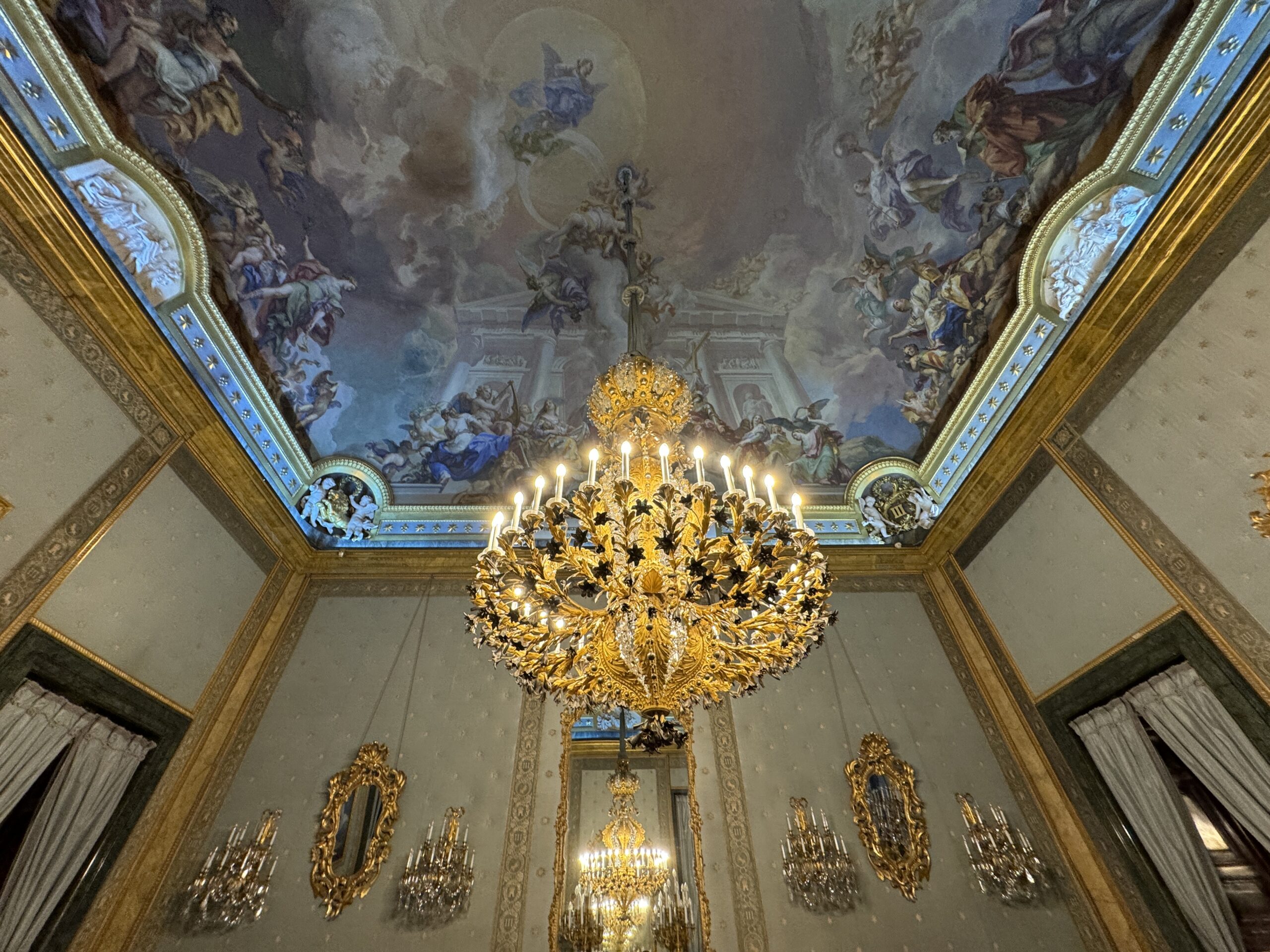 Пришлось съездить в Мадрид за документами. + Наконец изучили королевский дворец (в него бывает бесплатный вход с 16 до 18, понедельник-четверг, ну и еще для многих групп людей, всё на сайте написано). Самое любопытное, что я узнала во дворце — как сложно изготовить, сохранить и использовать сервиз для приёмов. Я погуглила фотографию стакана со странным вензелем — оказалось, сервиз остался в наследство от прошлого короля, которого недавно с позором выгнали за вопиющую нескрепность, и решили не переделывать никакие гербы, дорого. Обновили обшивку королевских стульев (двух) и на этом остановились. Королевский сервиз это более 1000 предметов, и лучше, чтобы они не бились. Всё считают. Если ложечка или тарелочка потеряется, то, пока её не найдут, мусор выбрасывать не будут. Тем более трагично, если посуда разбивается. Потому что её нечем заменить. Поэтому чем больше металла, тем лучше. То есть металлическое — это не для демонстрации роскоши, а ровно наоборот. Затем, столы это просто доски на козлах, особенно шатать их нельзя. Сверху кладут 35 скатертей, размер которых определяется возможностью стирки. Драпируют так, чтобы не было видно разрывов между скатертями. Сначала на столы залезают люди в специальной обуви, которые расставляют вазы с цветами и подсвечники, потом по веревке выравнивают немногочисленные столовые приборы. Например, нож для рыбы был прикуплен королем к наследному сервизу лишь для того, чтобы иметь возможность подать рыбу на свадьбе. Раньше не подавали. Сервиз может стоить как два дворца. Когда начинается приём, прислуживать нанимают кучу людей, которых всё равно не хватает, и гвардейцы тоже должны что-то разносить. Как большой сервиз хранить, чистить, стирать, убирать — просто невозможно представить. Сам дворец едва выживает — трещины на потолке, истлевающие гобелены, пластиковые цветы, максимальная экономия на всём, некоторый доход от туристов. Создание какого-то интерьера, получается, это целый государственный проект, потому что суммы на ремонт подобных помещений космические. И результат хорошим не бывает, всё устаревает в процессе установки. Пыль, старение материалов, потемнение красок, влага и так далее. В одном из залов дворца хранятся драгоценные музыкальные инструменты. Концерты происходят недалеко от витрин, чтобы всё окончательно не пропало. В комментах помещаю линки на фото дворца и на королевские галереи.