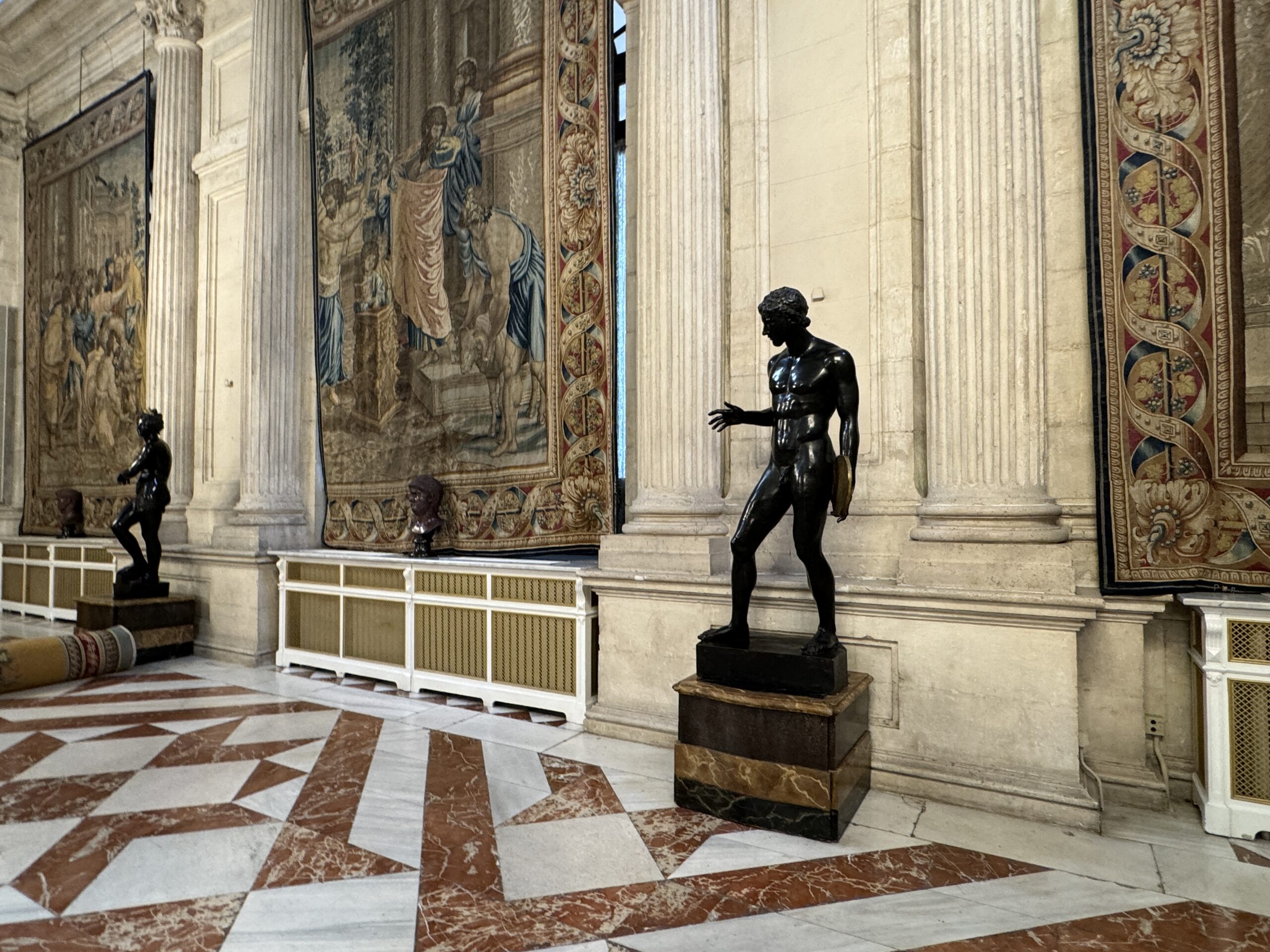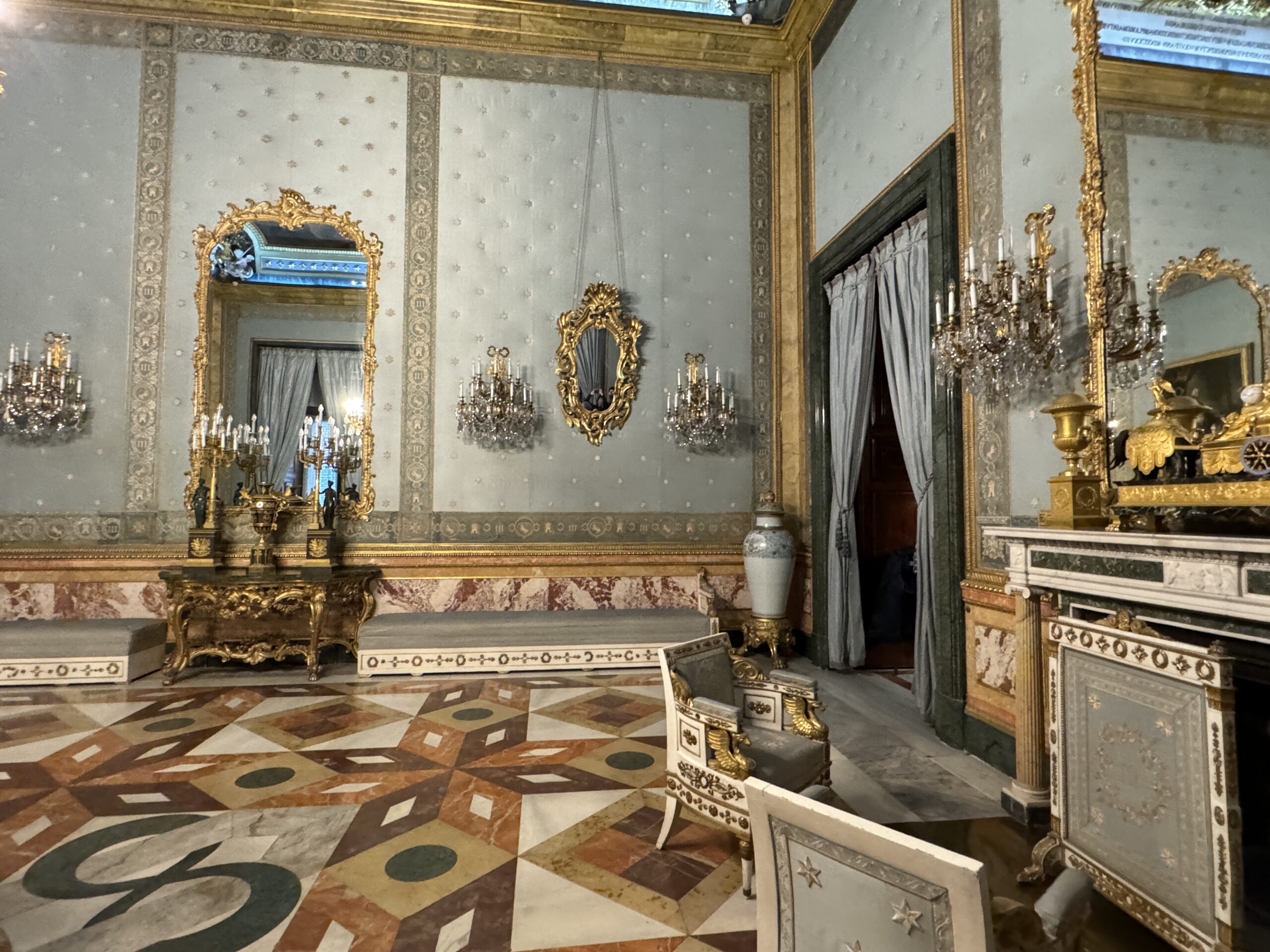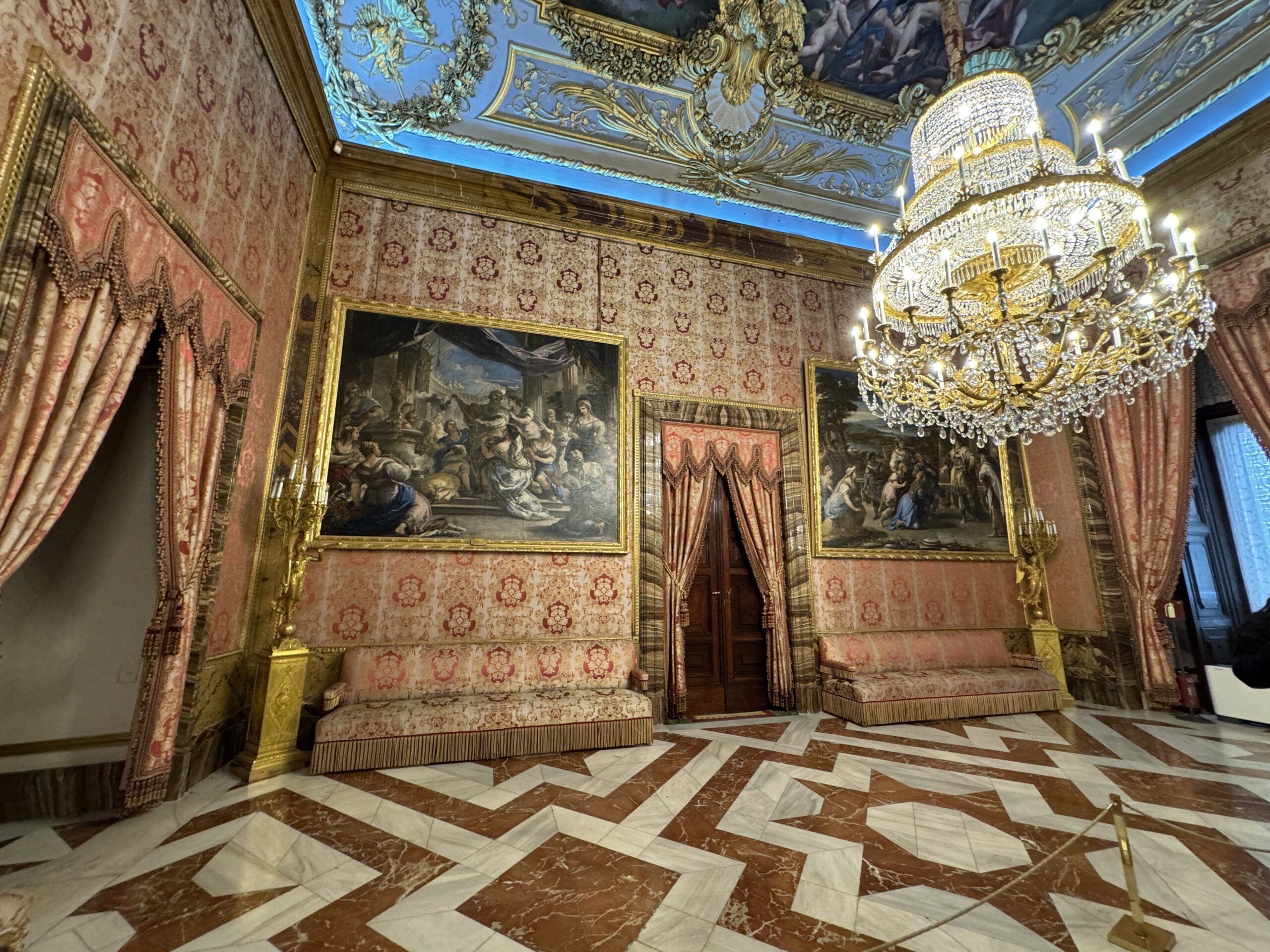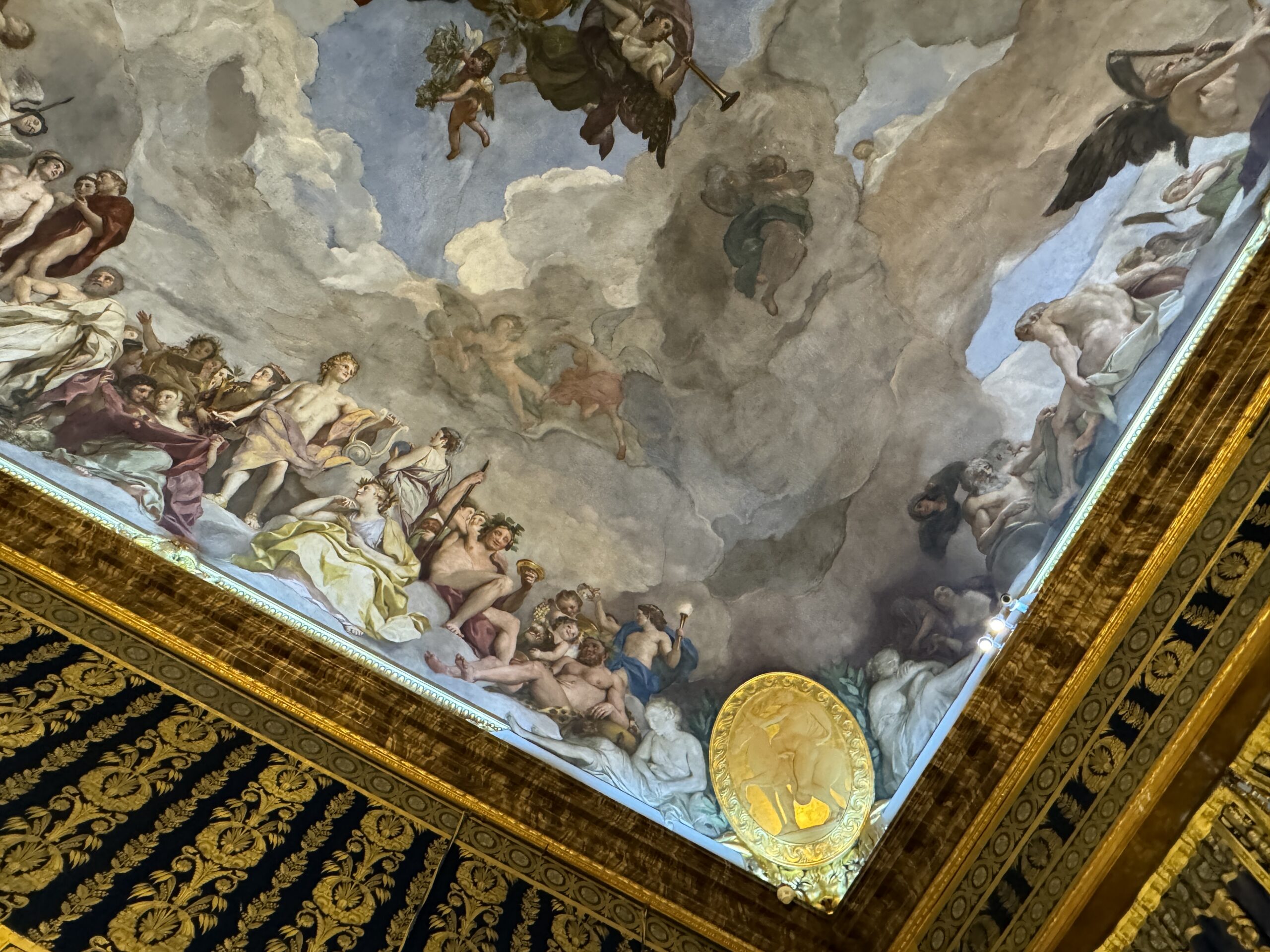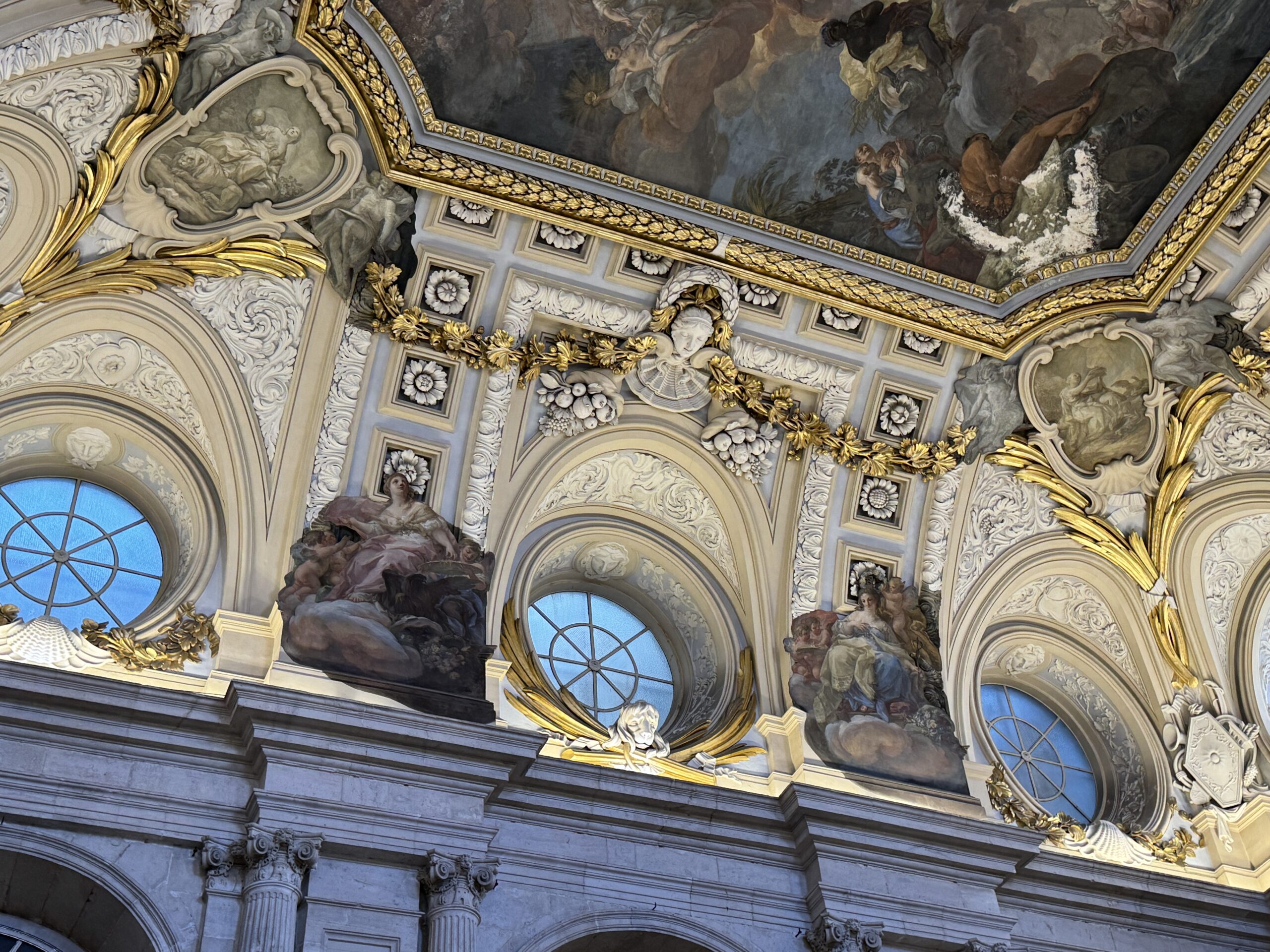 Пришлось съездить в Мадрид за документами. + Наконец изучили королевский дворец (в него бывает бесплатный вход с 16 до 18, понедельник-четверг, ну и еще для многих групп людей, всё на сайте написано). Самое любопытное, что я узнала во дворце — как сложно изготовить, сохранить и использовать сервиз для приёмов. Я погуглила фотографию стакана со странным вензелем — оказалось, сервиз остался в наследство от прошлого короля, которого недавно с позором выгнали за вопиющую нескрепность, и решили не переделывать никакие гербы, дорого. Обновили обшивку королевских стульев (двух) и на этом остановились. Королевский сервиз это более 1000 предметов, и лучше, чтобы они не бились. Всё считают. Если ложечка или тарелочка потеряется, то, пока её не найдут, мусор выбрасывать не будут. Тем более трагично, если посуда разбивается. Потому что её нечем заменить. Поэтому чем больше металла, тем лучше. То есть металлическое — это не для демонстрации роскоши, а ровно наоборот. Затем, столы это просто доски на козлах, особенно шатать их нельзя. Сверху кладут 35 скатертей, размер которых определяется возможностью стирки. Драпируют так, чтобы не было видно разрывов между скатертями. Сначала на столы залезают люди в специальной обуви, которые расставляют вазы с цветами и подсвечники, потом по веревке выравнивают немногочисленные столовые приборы. Например, нож для рыбы был прикуплен королем к наследному сервизу лишь для того, чтобы иметь возможность подать рыбу на свадьбе. Раньше не подавали. Сервиз может стоить как два дворца. Когда начинается приём, прислуживать нанимают кучу людей, которых всё равно не хватает, и гвардейцы тоже должны что-то разносить. Как большой сервиз хранить, чистить, стирать, убирать — просто невозможно представить. Сам дворец едва выживает — трещины на потолке, истлевающие гобелены, пластиковые цветы, максимальная экономия на всём, некоторый доход от туристов. Создание какого-то интерьера, получается, это целый государственный проект, потому что суммы на ремонт подобных помещений космические. И результат хорошим не бывает, всё устаревает в процессе установки. Пыль, старение материалов, потемнение красок, влага и так далее. В одном из залов дворца хранятся драгоценные музыкальные инструменты. Концерты происходят недалеко от витрин, чтобы всё окончательно не пропало. В комментах помещаю линки на фото дворца и на королевские галереи.