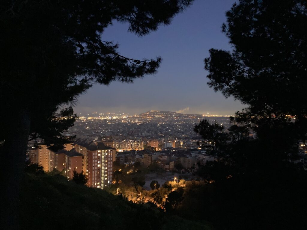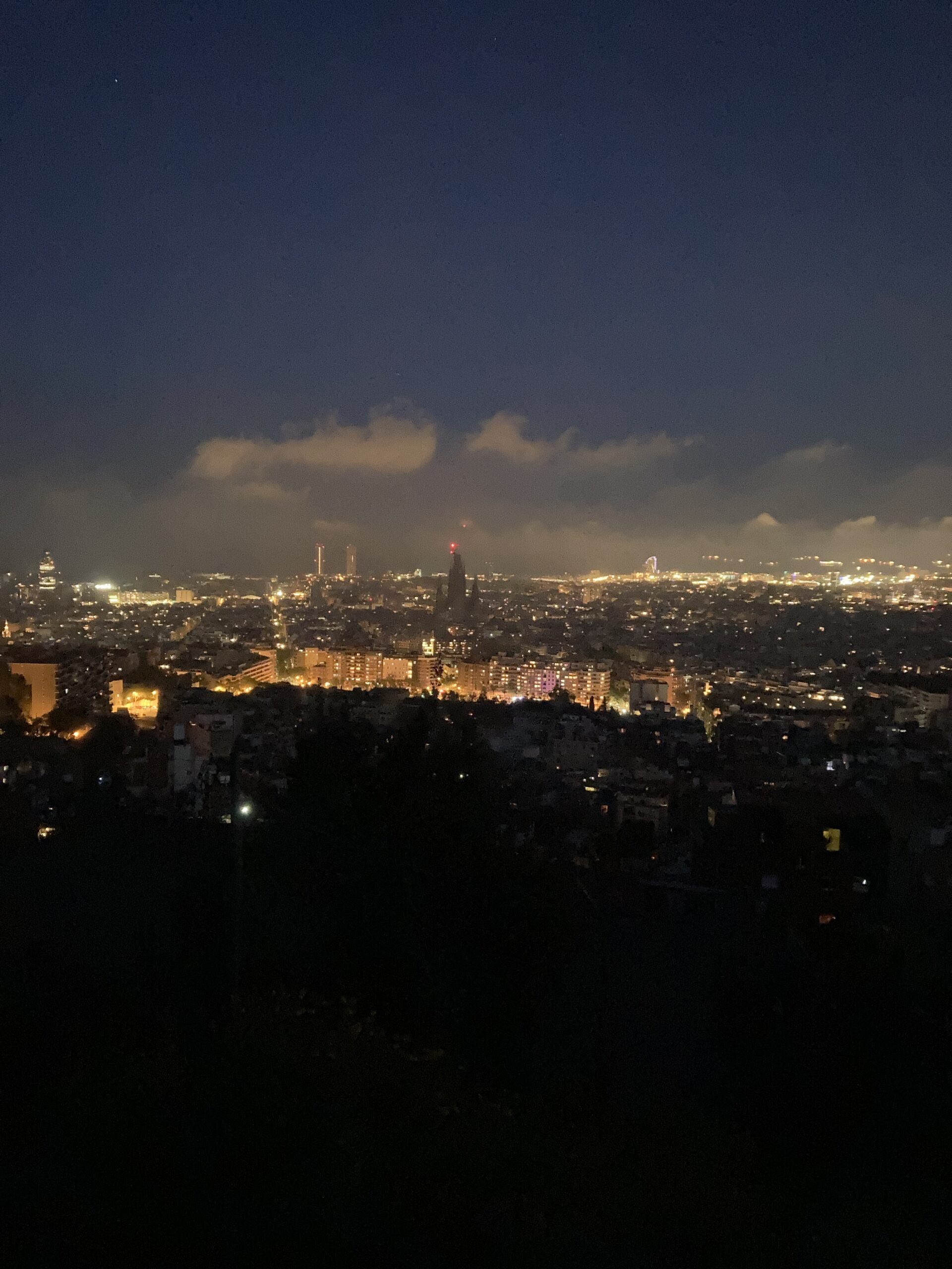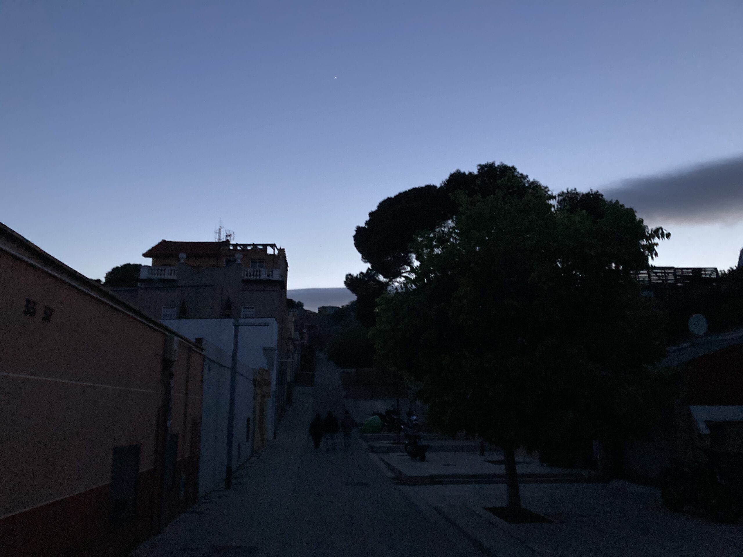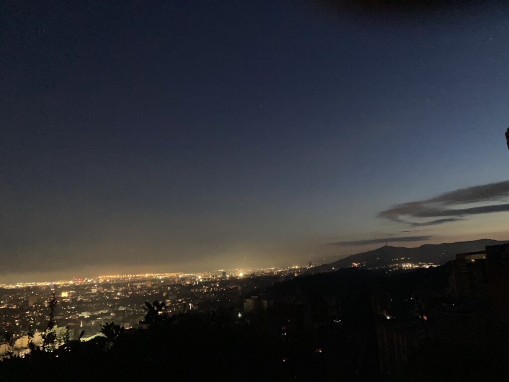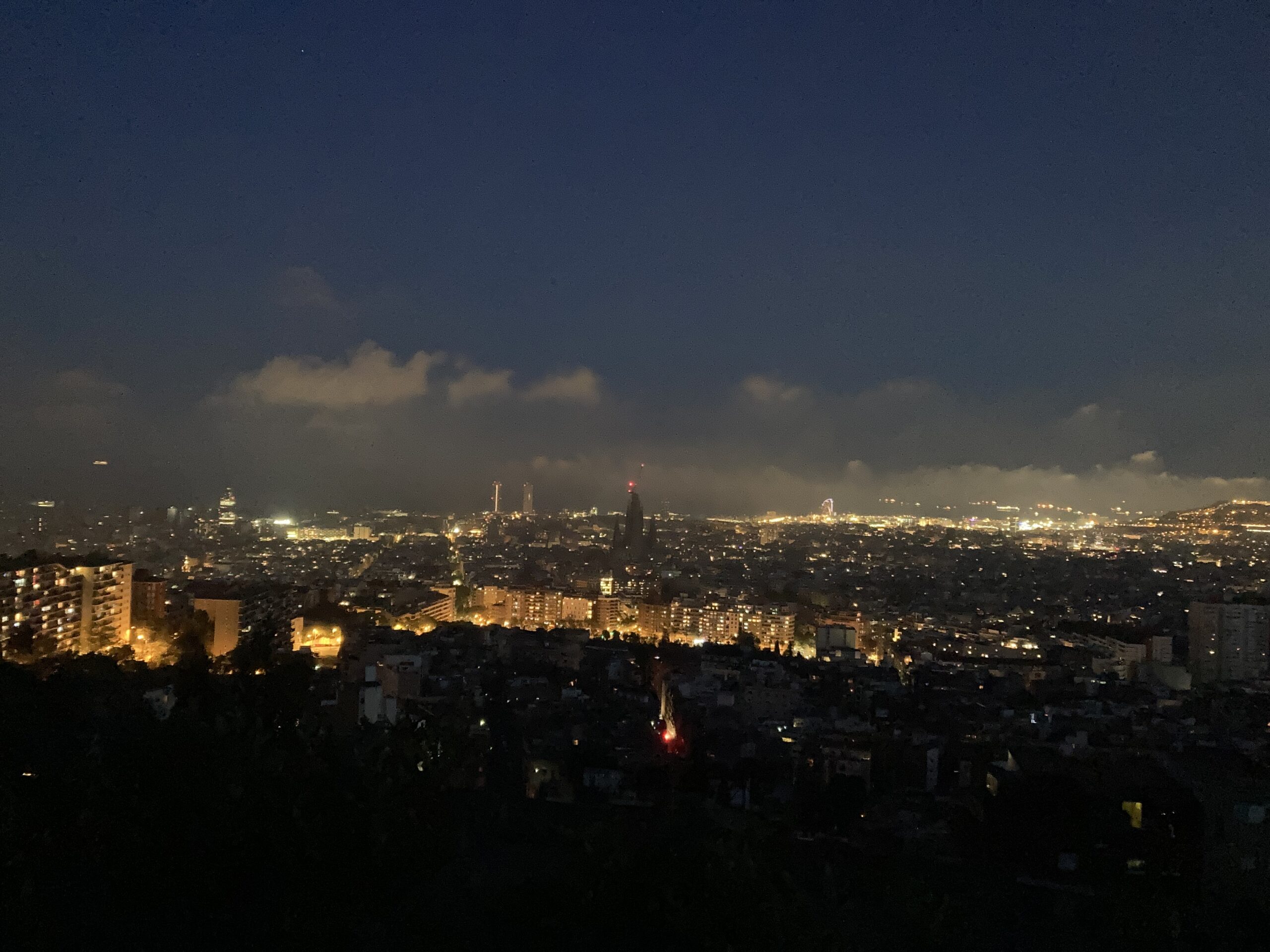Вчерашние фото с барселонского бункера, сделанные с 21:15 до 21:30. Фонари уже работали, началось подключение домов. Кварталы на горе подключали еще через 3-4 часа. Дома, на которых установлены солнечные батареи, всё равно оставались без электричества. Во дворах неосвещенных районов жгли костры.