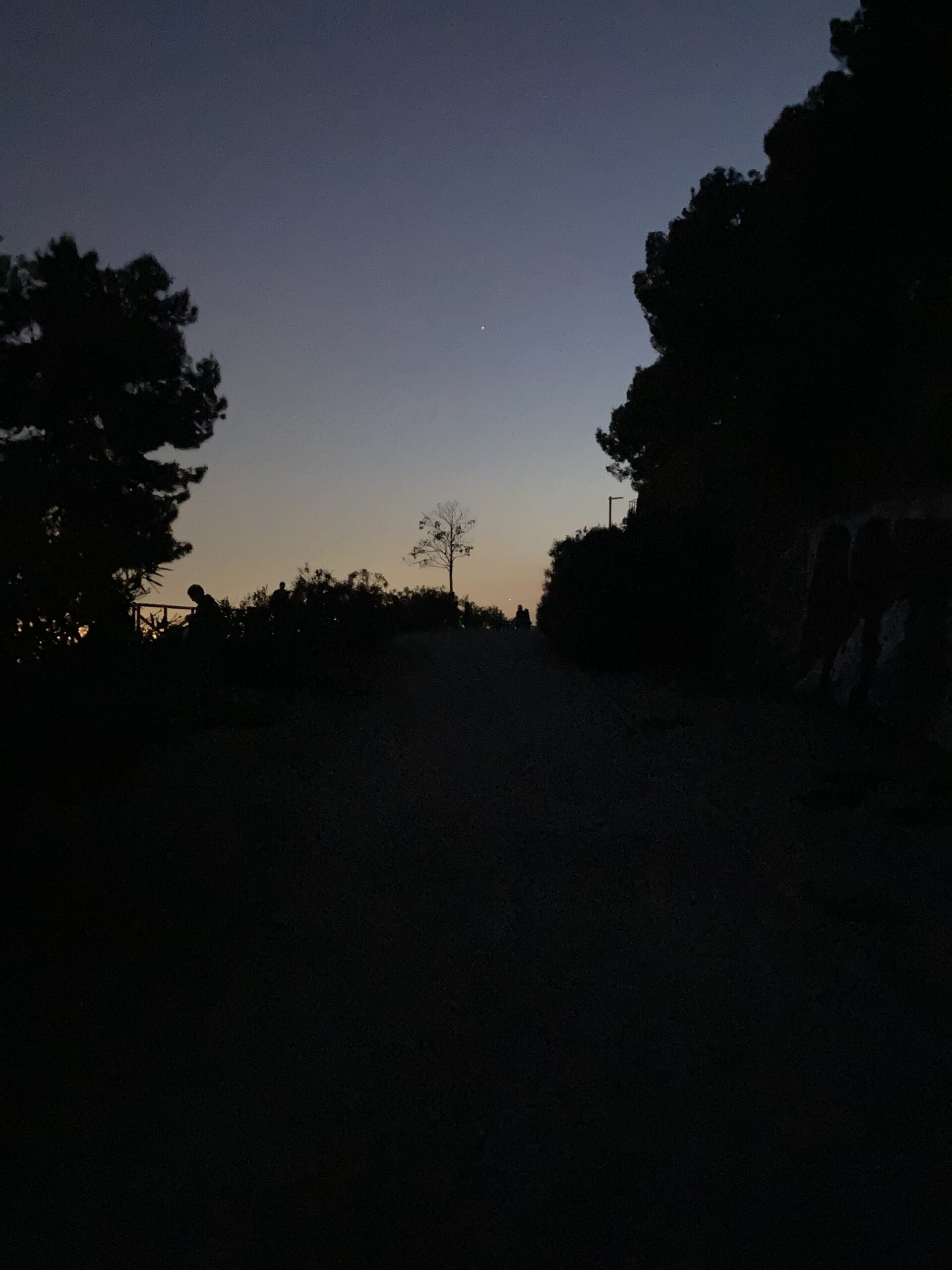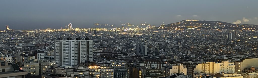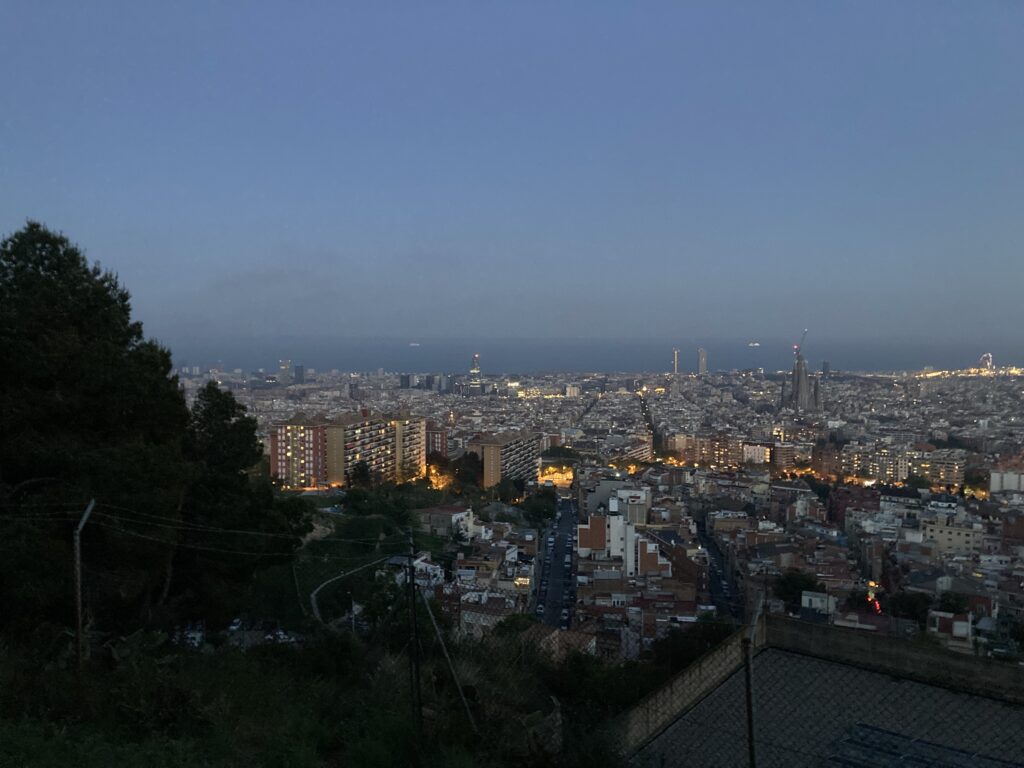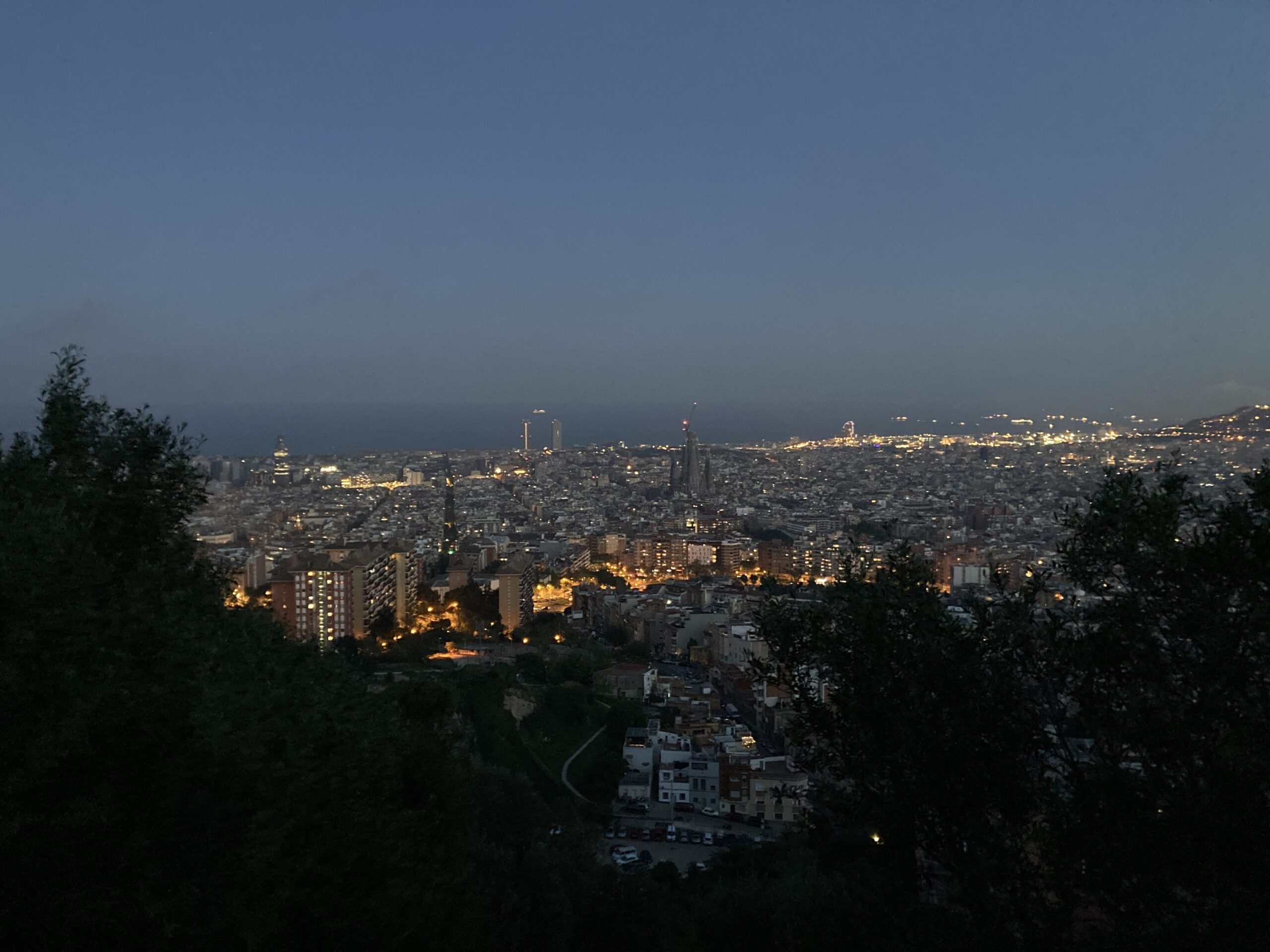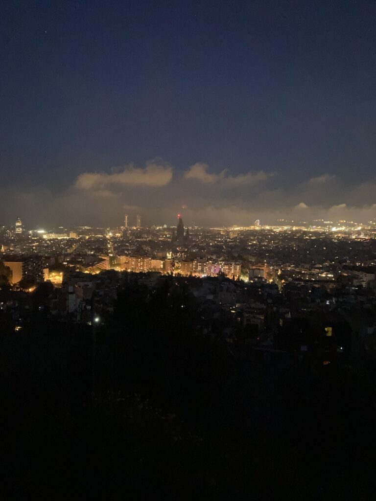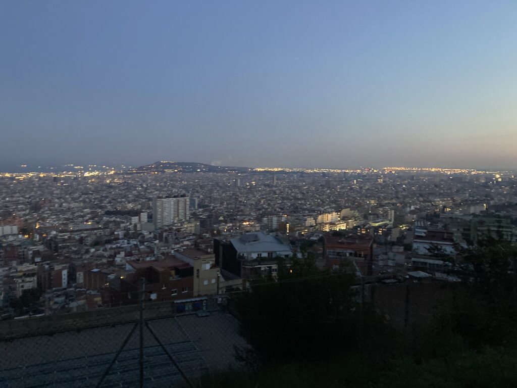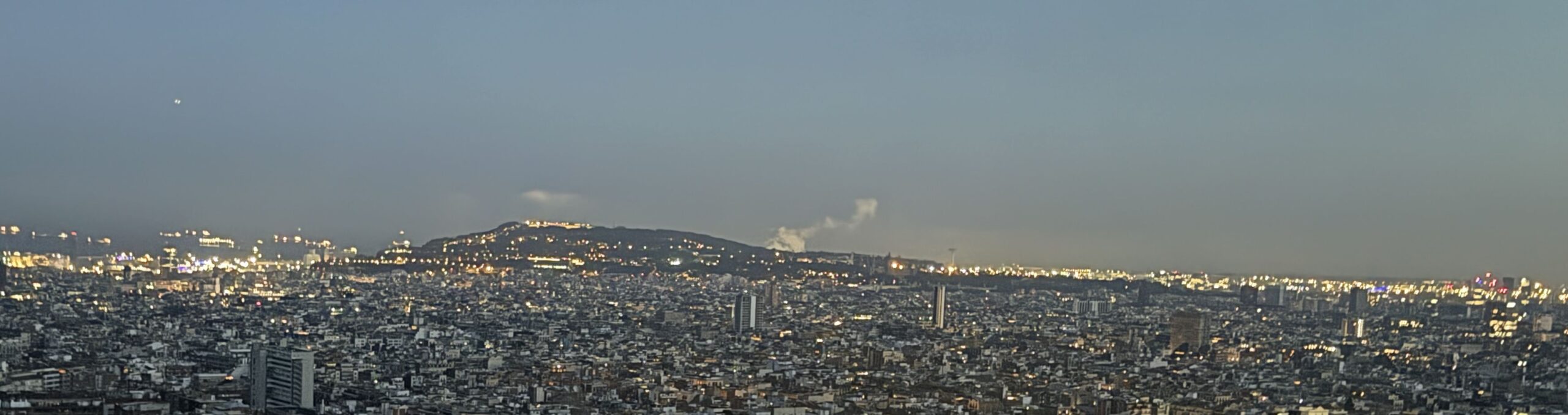 Вчерашние фото с барселонского бункера, сделанные с 21:15 до 21:30. Фонари уже работали, началось подключение домов. Кварталы на горе подключали еще через 3-4 часа. Дома, на которых установлены солнечные батареи, всё равно оставались без электричества. Во дворах неосвещенных районов жгли костры.