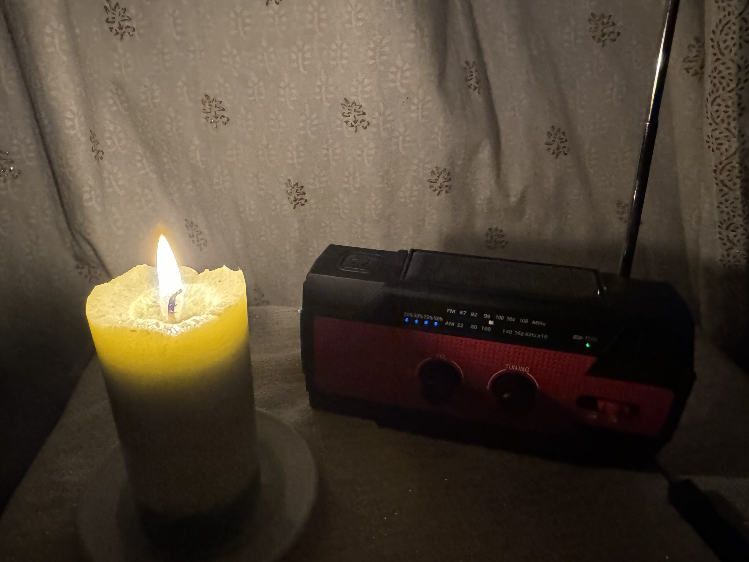 Кстати о радио. Пойдите и купите его прямо сейчас, где бы вы не жили. Когда остальная электроника мгновенно превращается в камень, радио на солнечной батарее — ваш единственный источник информации. У меня оно появилось только потому, что месяц во всех медиа власти говорили о необходимости набора на 72 часа выживания*. Эти «десять капель перед стрельбой» убивают всякое доверие к рассказам о причинах сейчас.