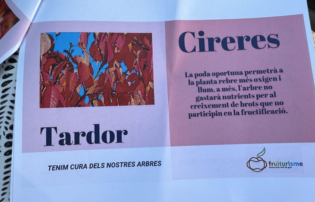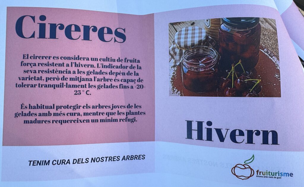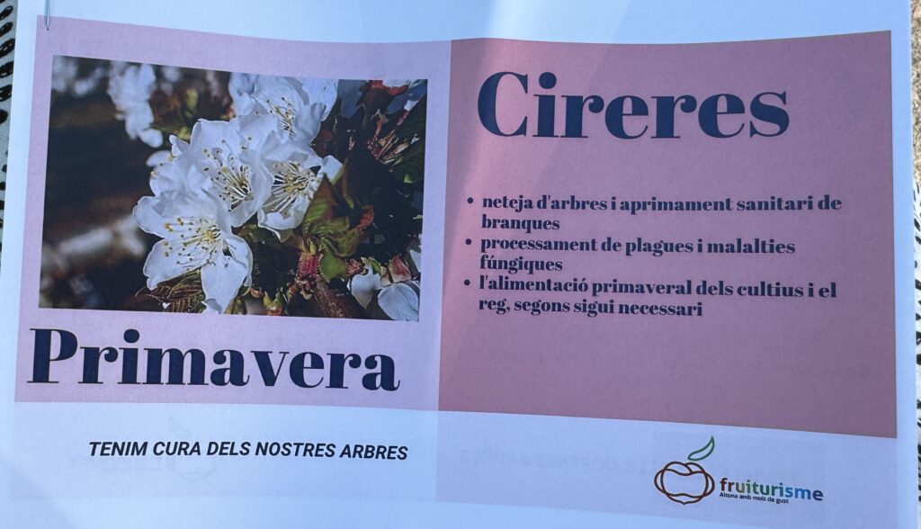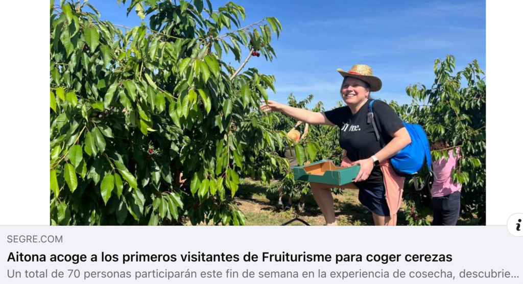 «Unos 70 turistas pagan 50 euros por recoger de los árboles 5 kilos de cerezas en Aitona«: «Первые 35 человек прибыли вчера. В сопровождении фермера они смогли собрать до пяти килограммов черешни на человека за 50 евро. В эту цену входил вермут на двоих: Vermut Polvorí de Raimat с местными продуктами, такими как сыр, секальона и шоколад, среди прочего. Ожидается, что еще 35 человек повторят опыт сбора черешни прямо с дерева с помощью фермера сегодня. Всего за выходные ожидается сбор 100 килограммов. Эта инициатива, продвигаемая городским советом Айтона, направлена на продвижение местного потребления без посредников и на то, чтобы познакомить посетителей с сельскохозяйственной культурой муниципалитета. Заместитель мэра Жорди Видал объяснил удовлетворение от «предложения этих впечатлений посетителям, которые затем обеспечивают продолжение мероприятий в период цветения и добавляют возможность собирать персики в садах в июне». Fruiturismo (Фруктовый туризм) был запущен более десяти лет назад, сосредоточившись на сезоне цветения фруктовых деревьев и предлагая маршруты по розовым полям. Aitona en Fruita (Айтона во фруктах) началась в 2019 году со сбора персиков, нектаринов и плоских персиков, а в прошлом году также была представлена черешня — фрукт, высоко ценимый как за свое качество, так и за свою связь с традициями региона. В этом году кампания началась 15 дней назад со сбора абрикосов. Fruiturismo (фруктовый туризм) продолжится такими мероприятиями, как сбор инжира и грецкого ореха, запланированный на сентябрь и октябрь. Более 20 000 человек смогли насладиться цветущими полями в марте, с мероприятиями, которые сочетали красоту ландшафта с продвижением гастрономического, сельскохозяйственного и туристического секторов муниципалитета. В этом году фестиваль Fruiturisme добавил Aitona, розовую мечту, первый ночной опыт и первую агропродовольственную ярмарку.»
