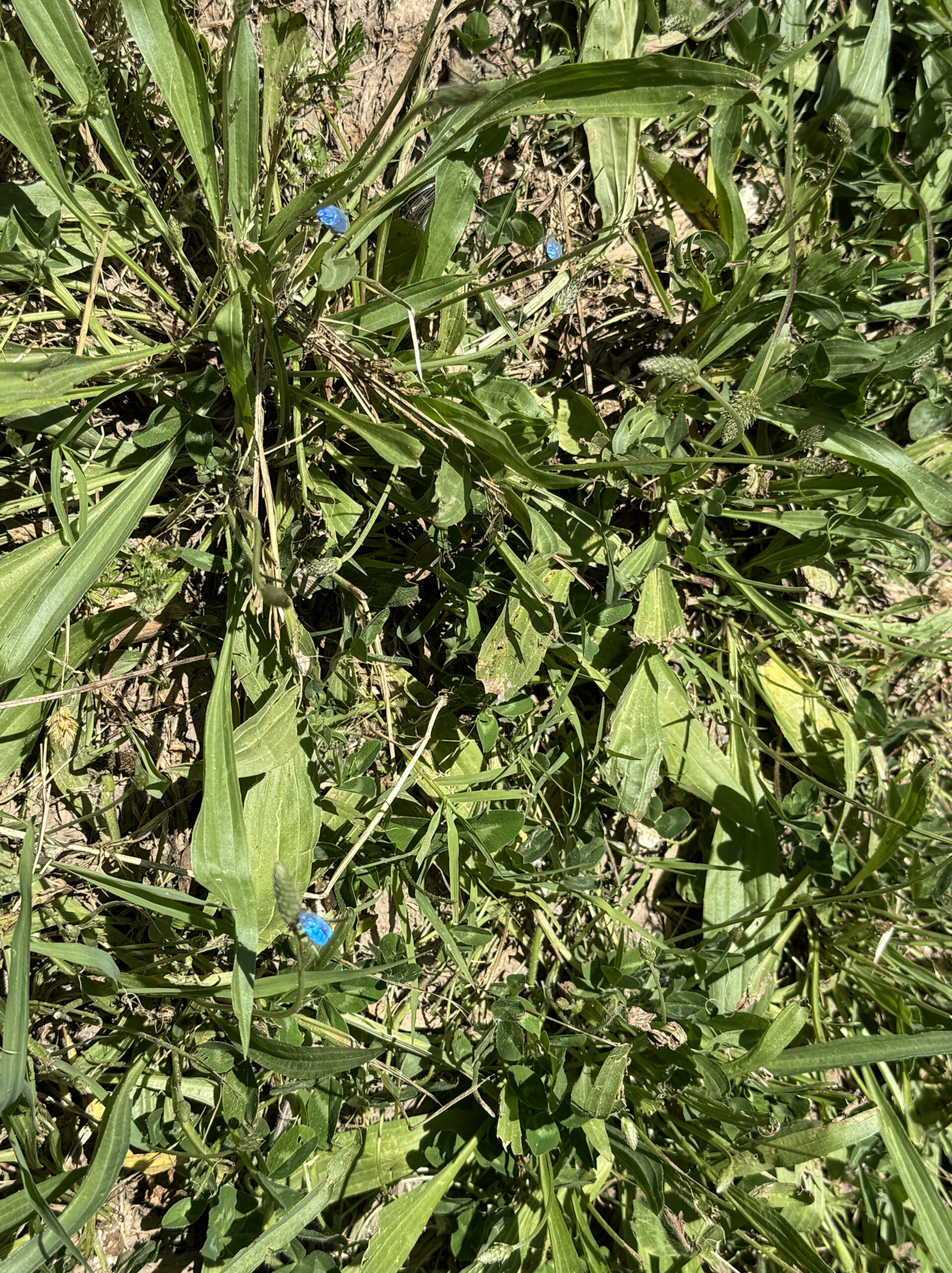На площадке для пикника около реки мы нашли 20 синих редких жуков, определенные Алексеем Тиматковым как Hoplia coerulea. Синие только самцы, самок сложно увидеть в траве. Сфотографировать или снять чёткое видео у нас категорически не получалось ни на один из телефонов, поэтому картинка только такая: