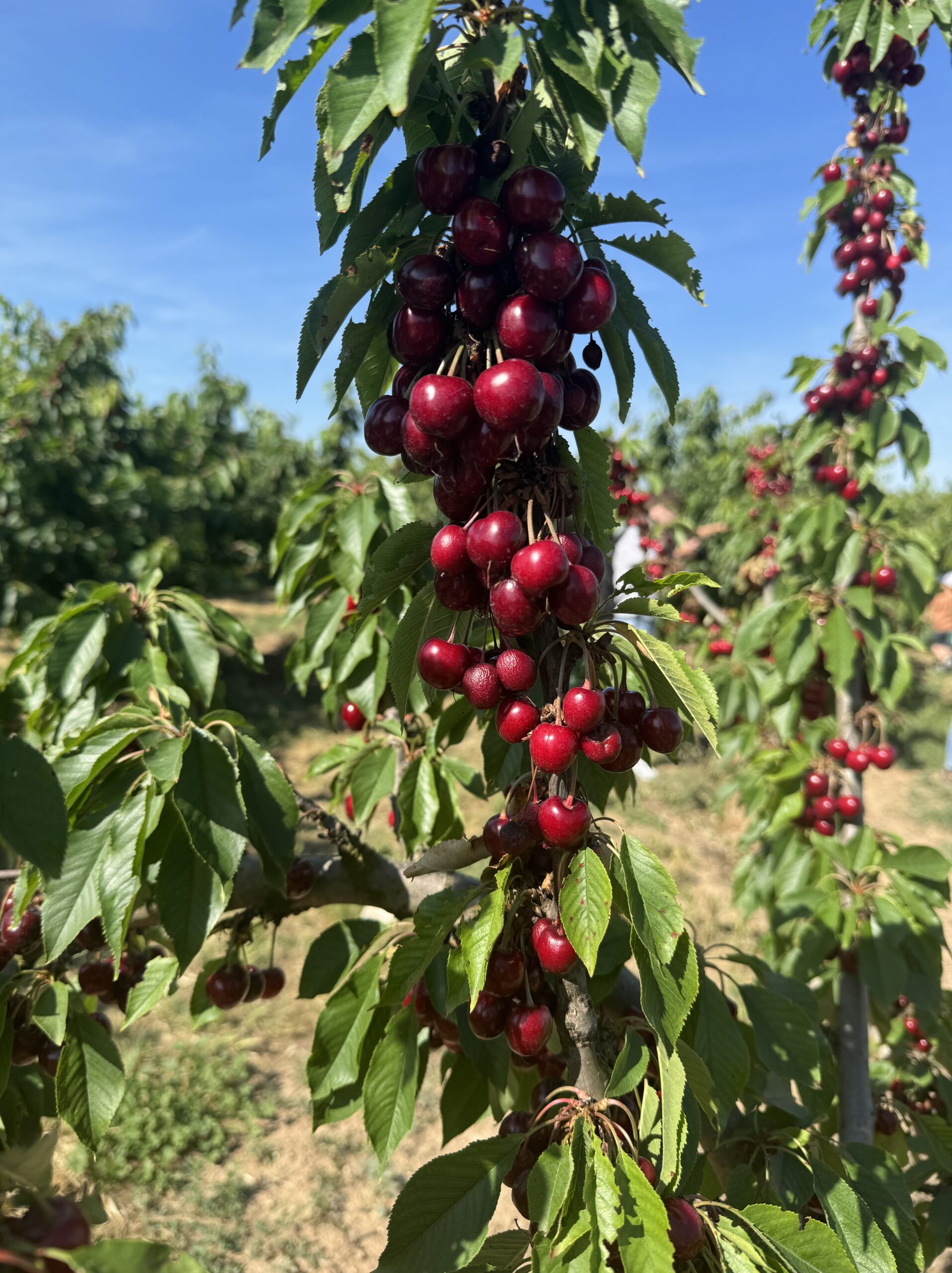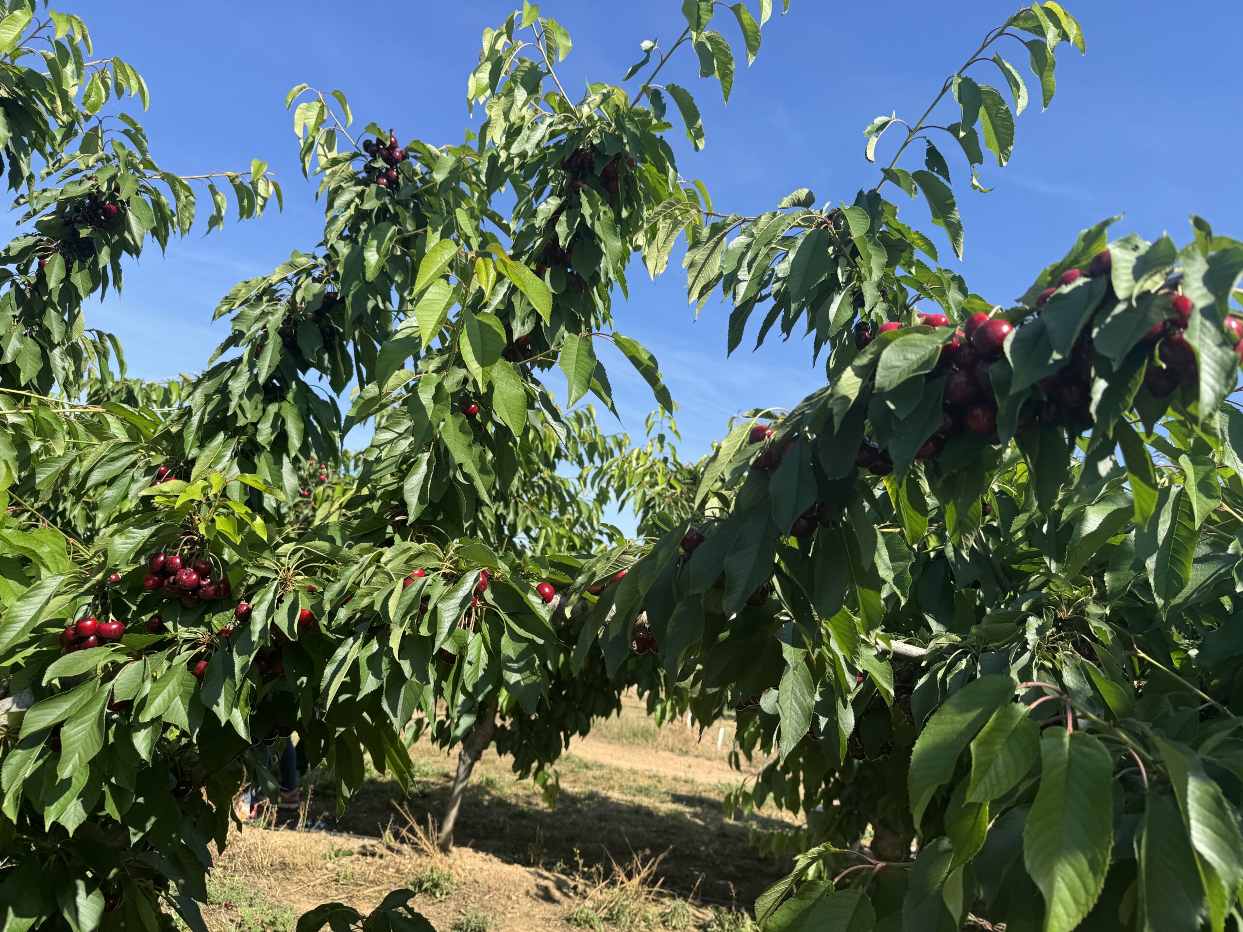 На каждом из 4 гектаров черешневых садов высажено 800 деревьев. Они поливаются автоматически. Во время сбора черешни нанимают 20 иностранных рабочих (сейчас взяли из Марокко и Алжира — после 2022 года перестали приезжать украинцы). В сезое рабочие собирают по 50 тонн фруктов за день. Помимо черешни у Франсеска есть сады парагвайо (плоский персик с миниатюрной косточной), платерина (нектарин с миниатюрной косточкой), фиг и оливок. Весь урожай Франсеска это около 1200 тонн.