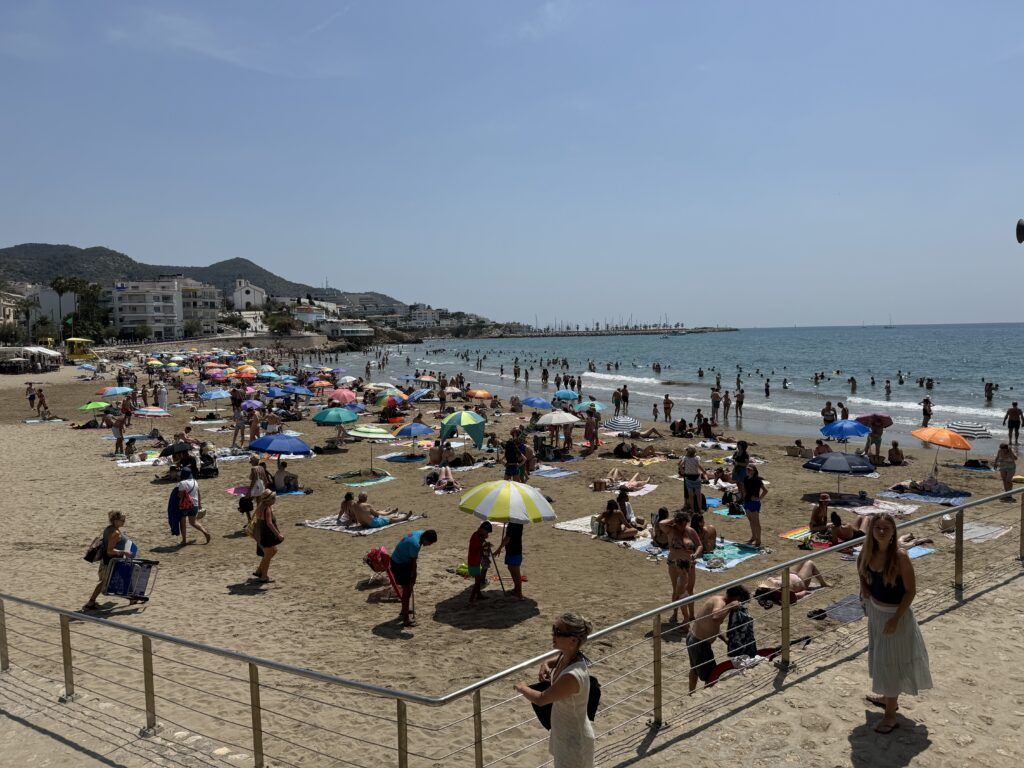 12:25 на пляже в Ситжесе 22 июня 2025 года.