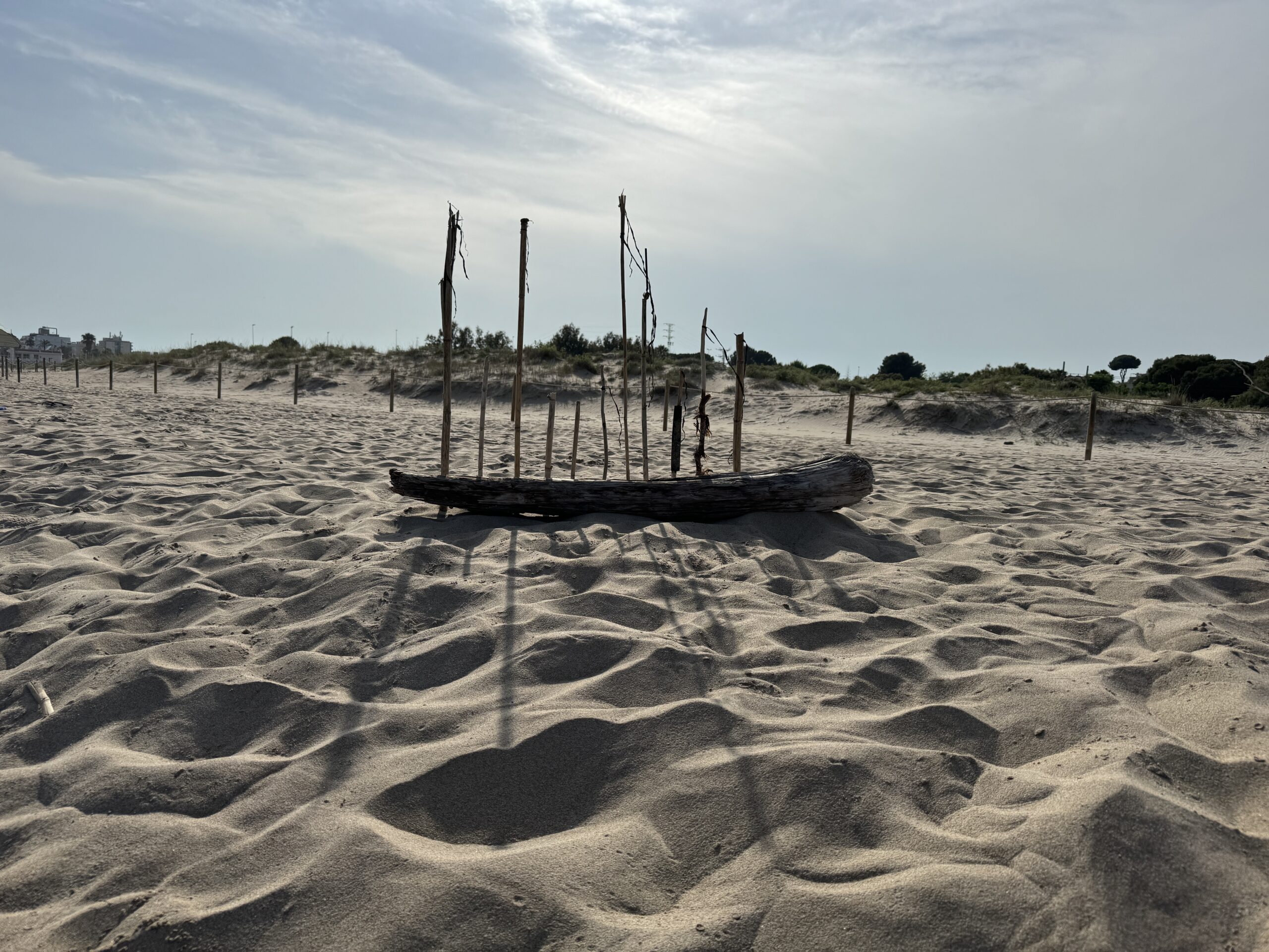 Корабль, плывущий по песочному морю, был обнаружен нами на пляже в Торредембара.