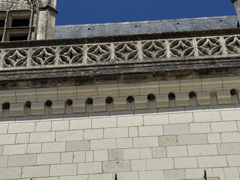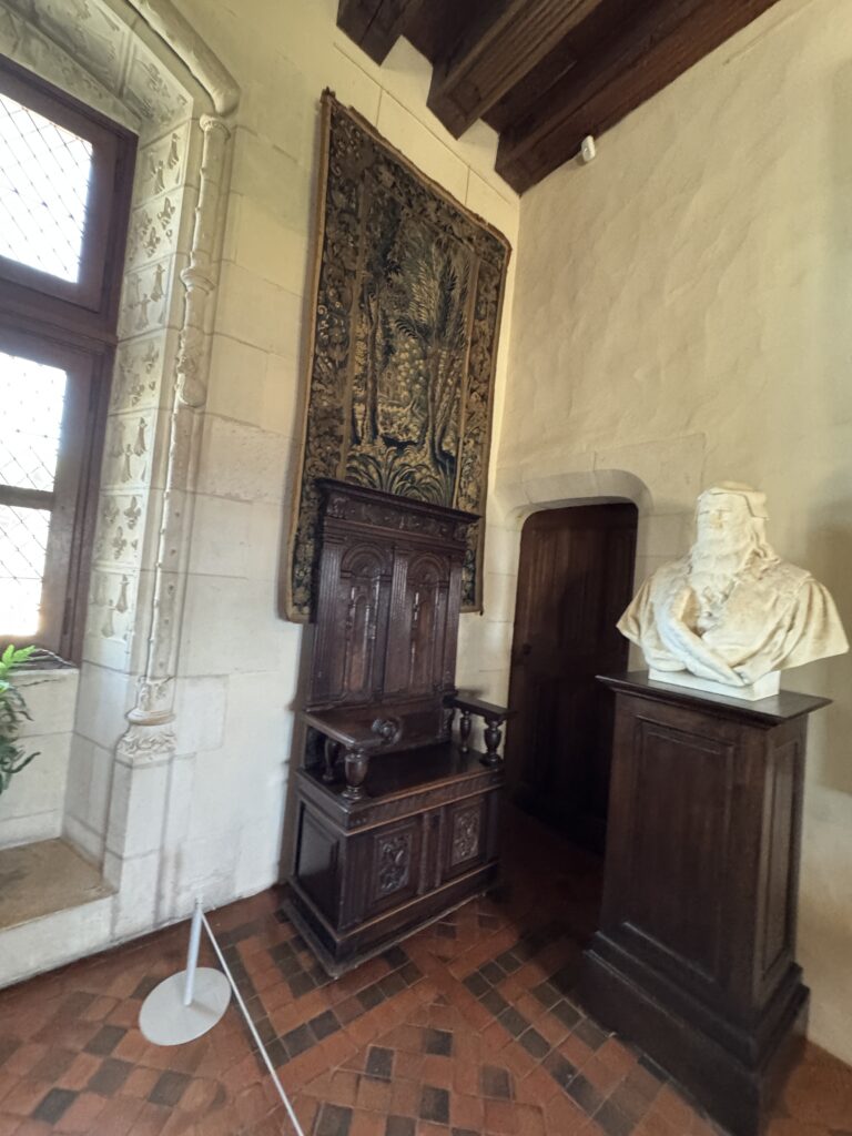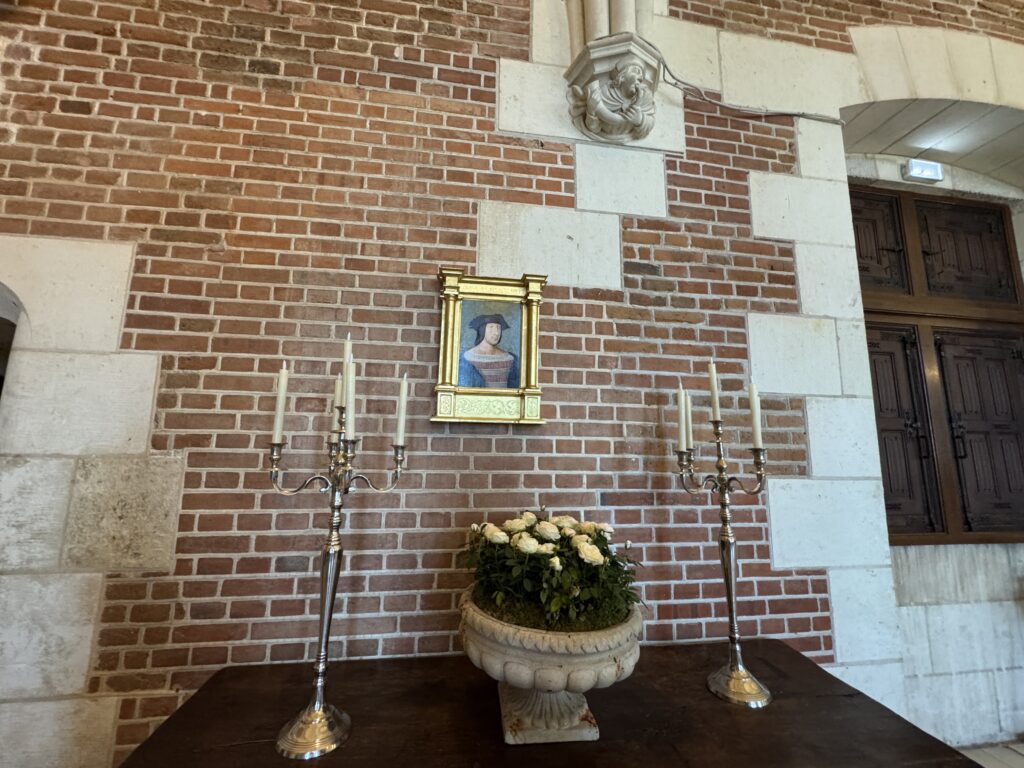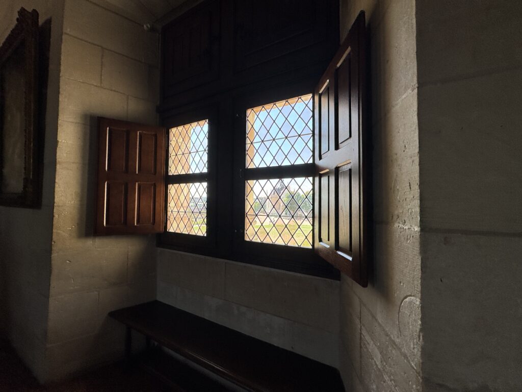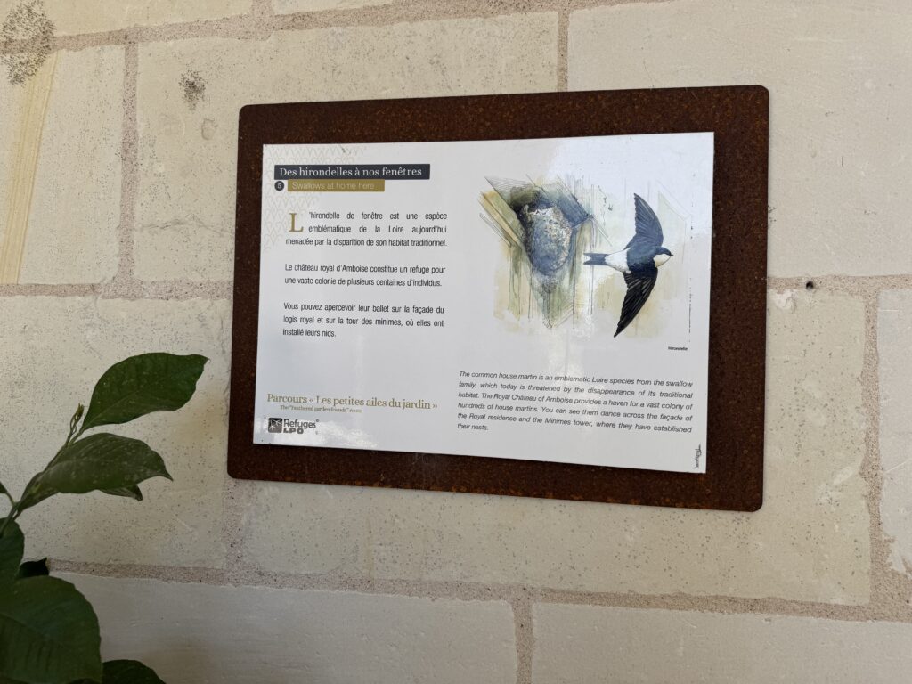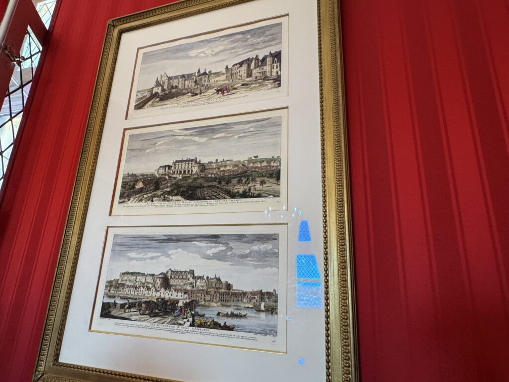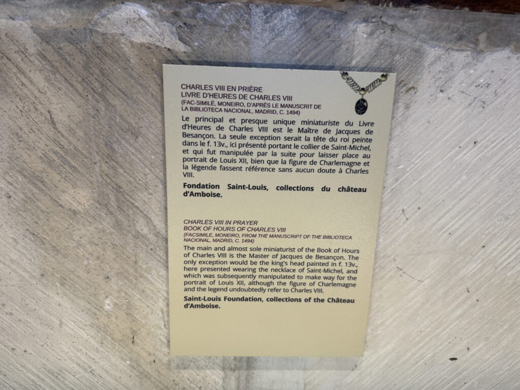 «Оконный проем, украшенный посохами паломников, кошельками, полными монет, и сумой напоминает о том, что Амбуаз был остановкой на пути паломников, направлявшихся поклониться Святому Мартину Турскому по пути в Сантьяго-де-Компостела»