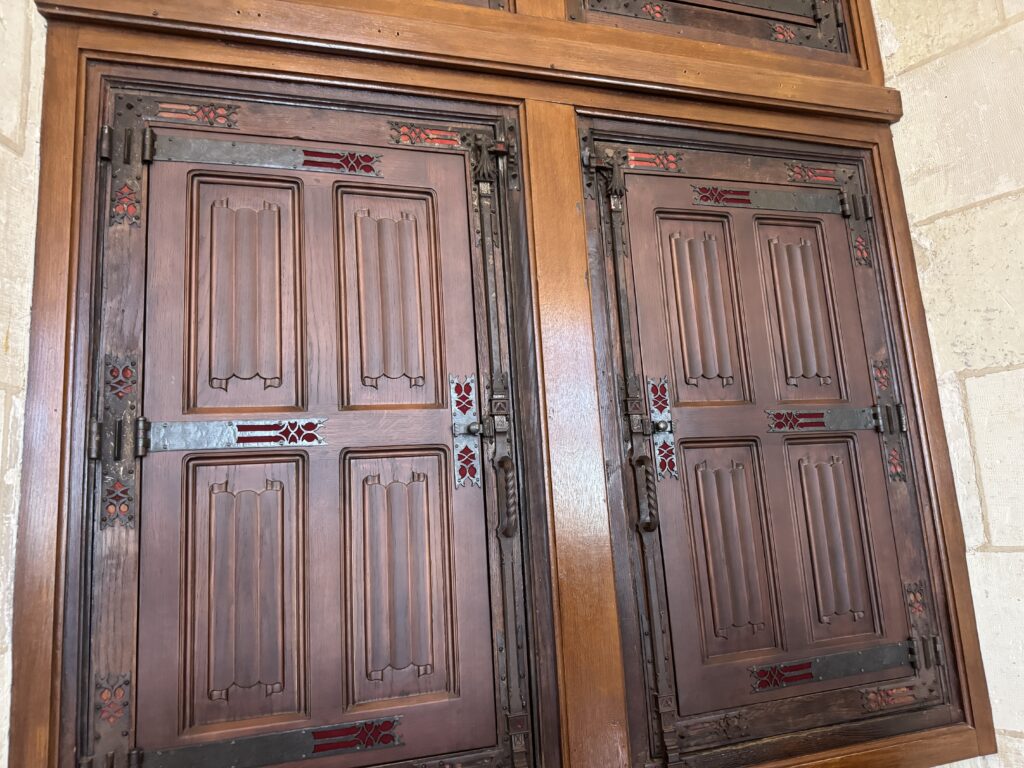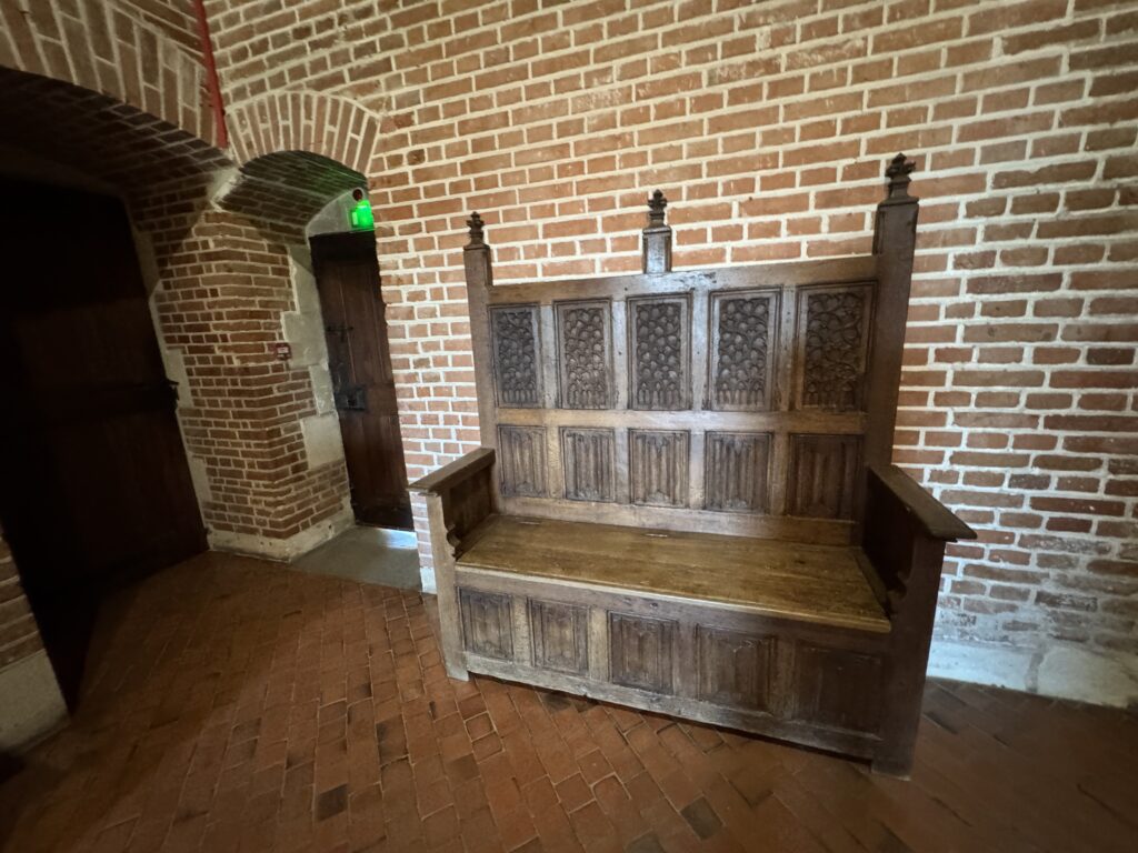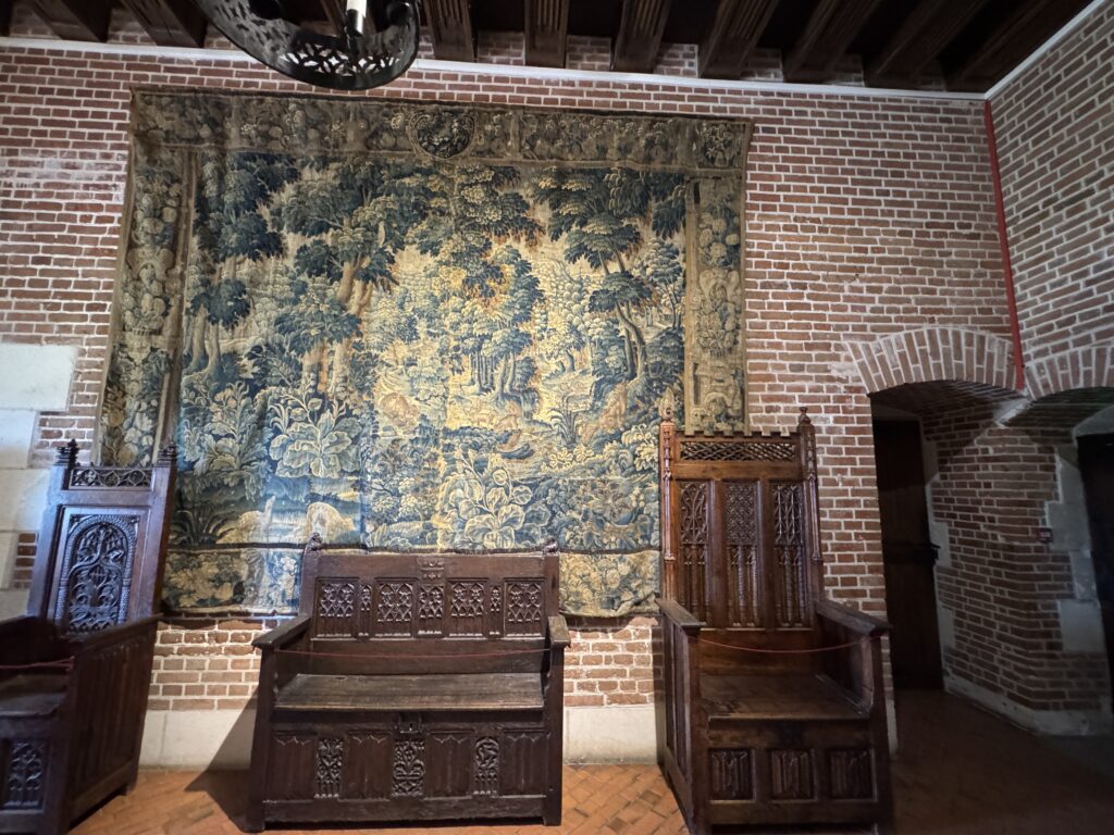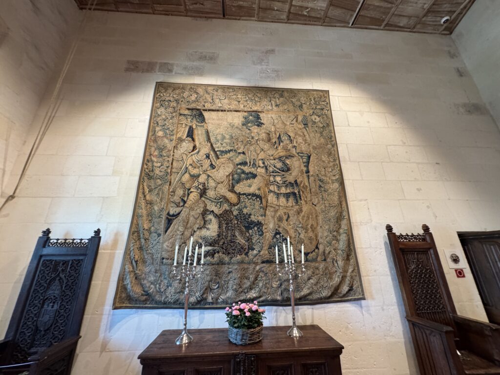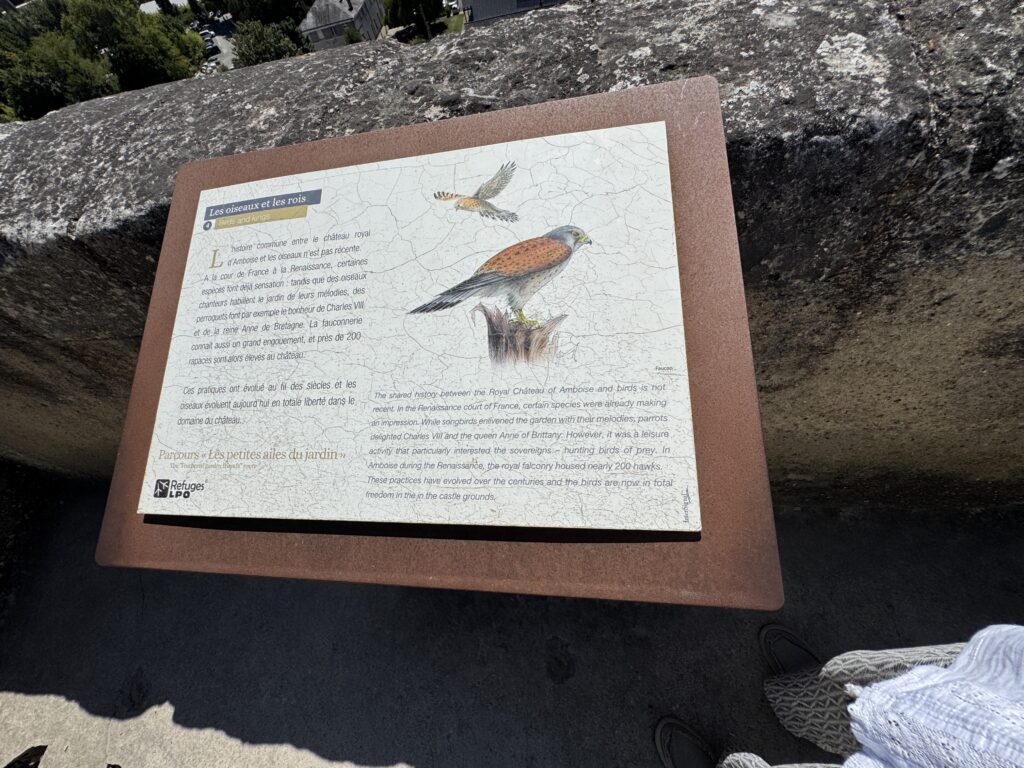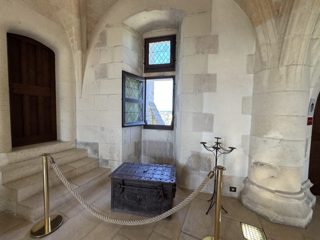 «Оконный проем, украшенный посохами паломников, кошельками, полными монет, и сумой напоминает о том, что Амбуаз был остановкой на пути паломников, направлявшихся поклониться Святому Мартину Турскому по пути в Сантьяго-де-Компостела»