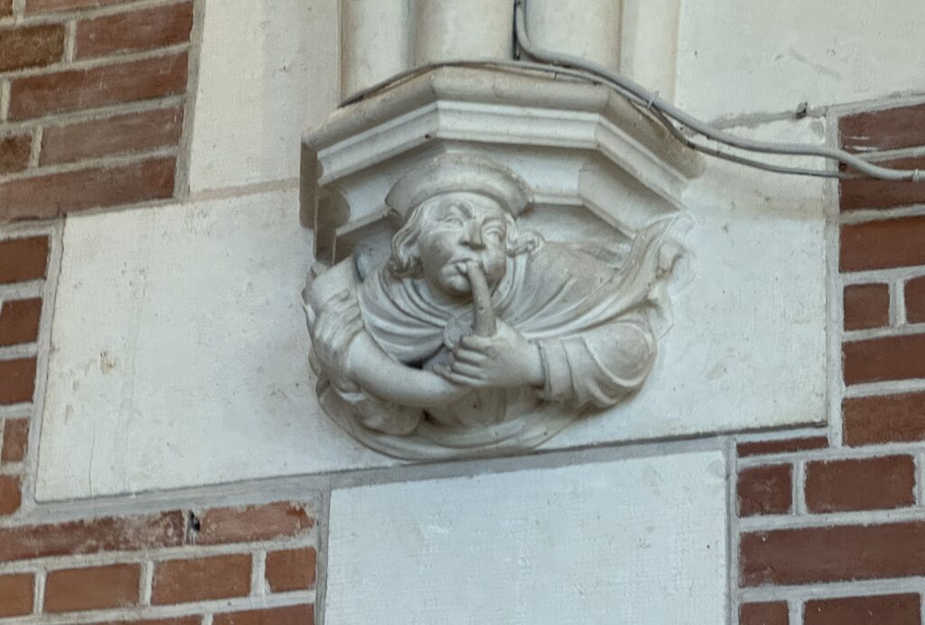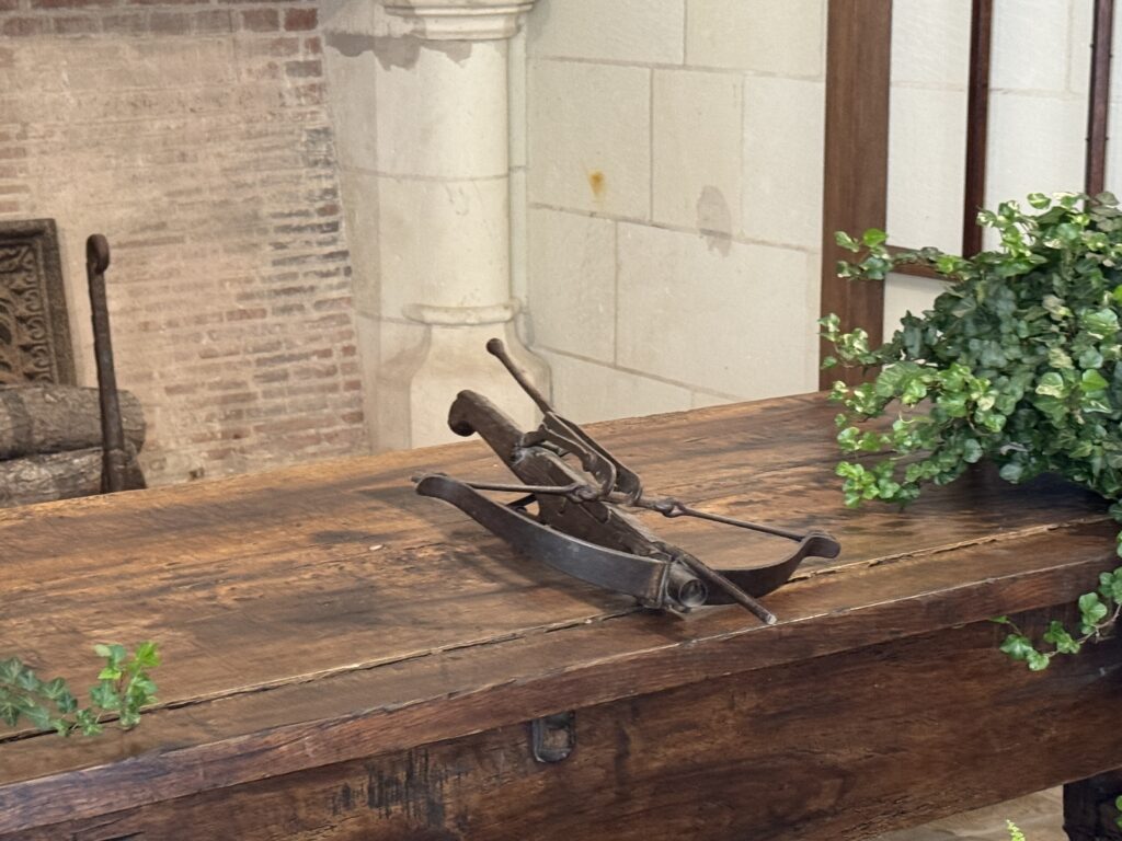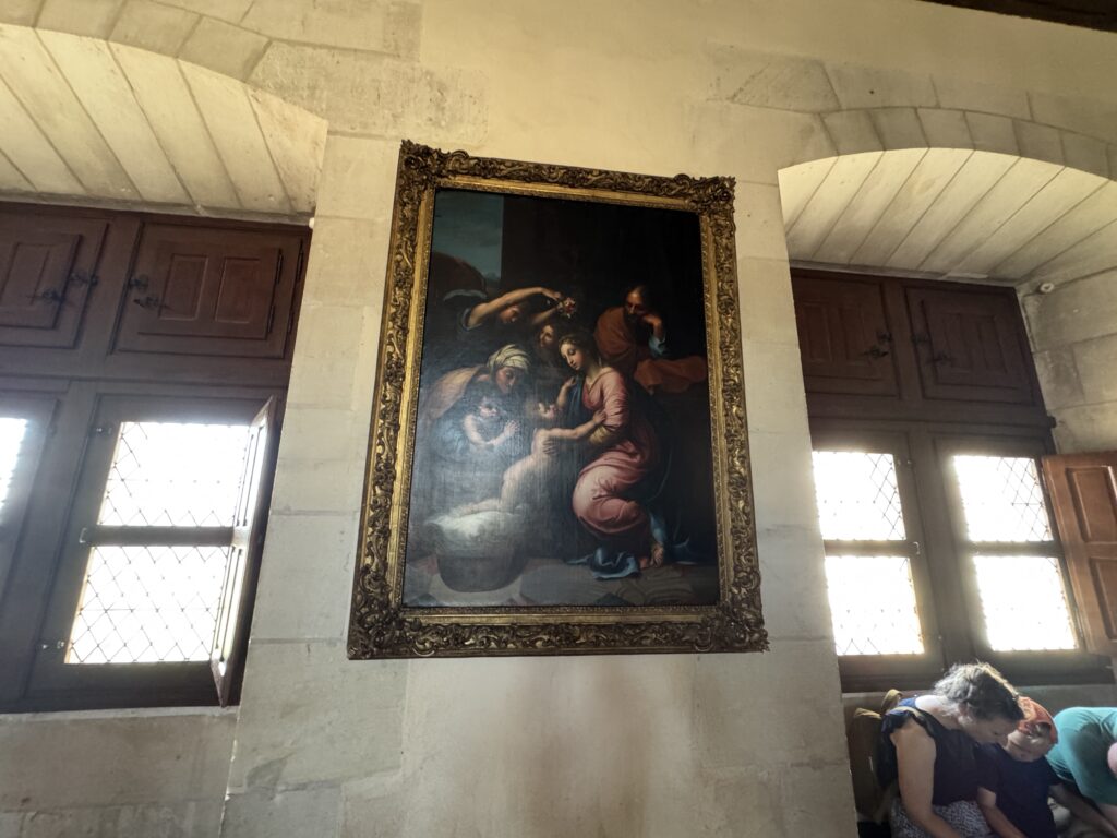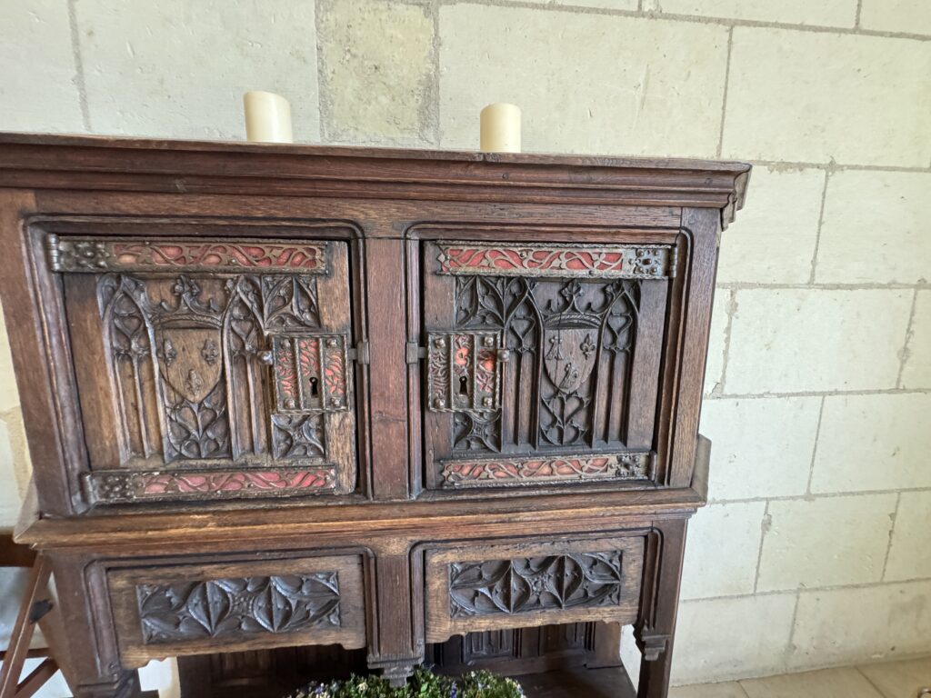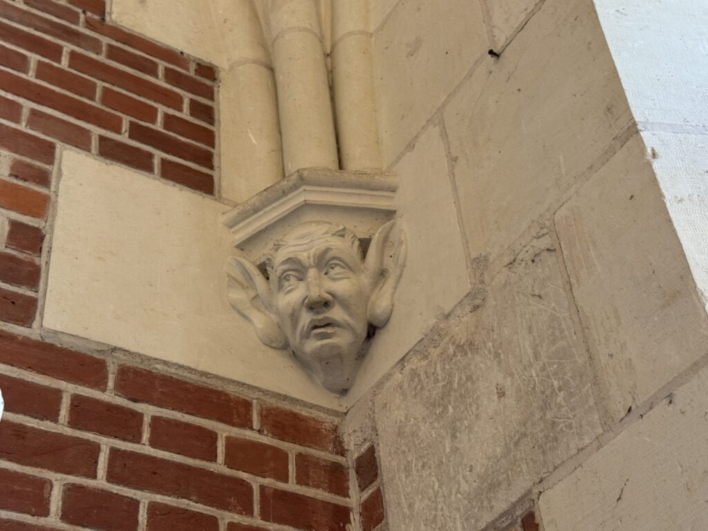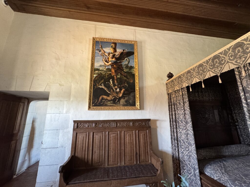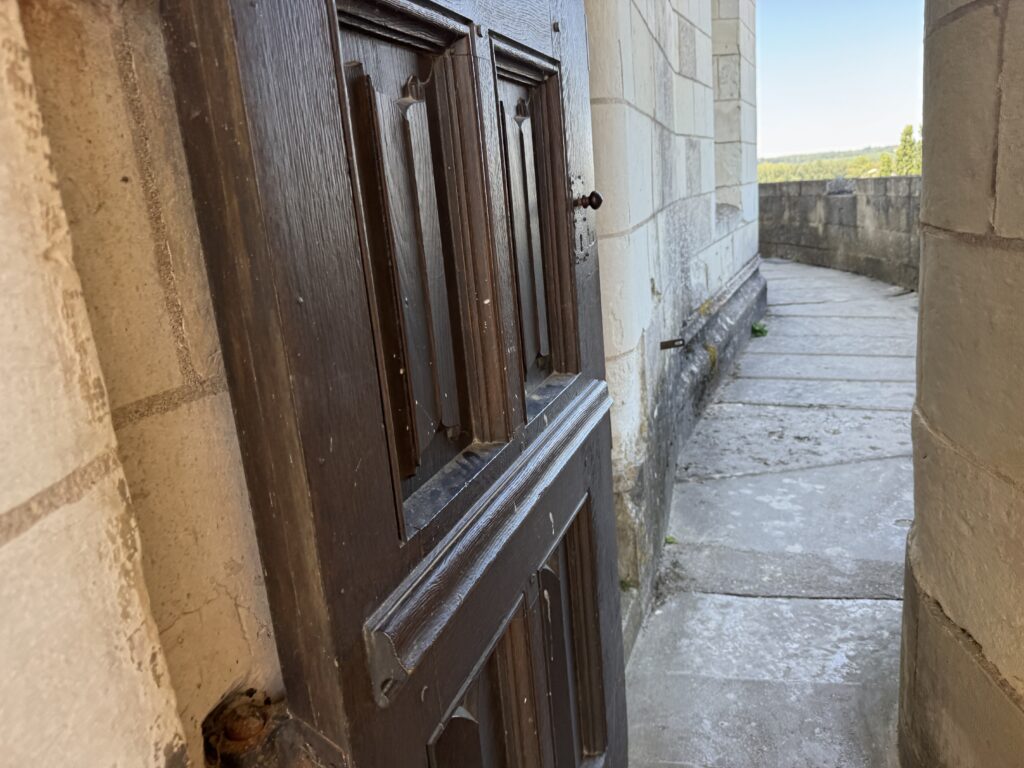 «Оконный проем, украшенный посохами паломников, кошельками, полными монет, и сумой напоминает о том, что Амбуаз был остановкой на пути паломников, направлявшихся поклониться Святому Мартину Турскому по пути в Сантьяго-де-Компостела»